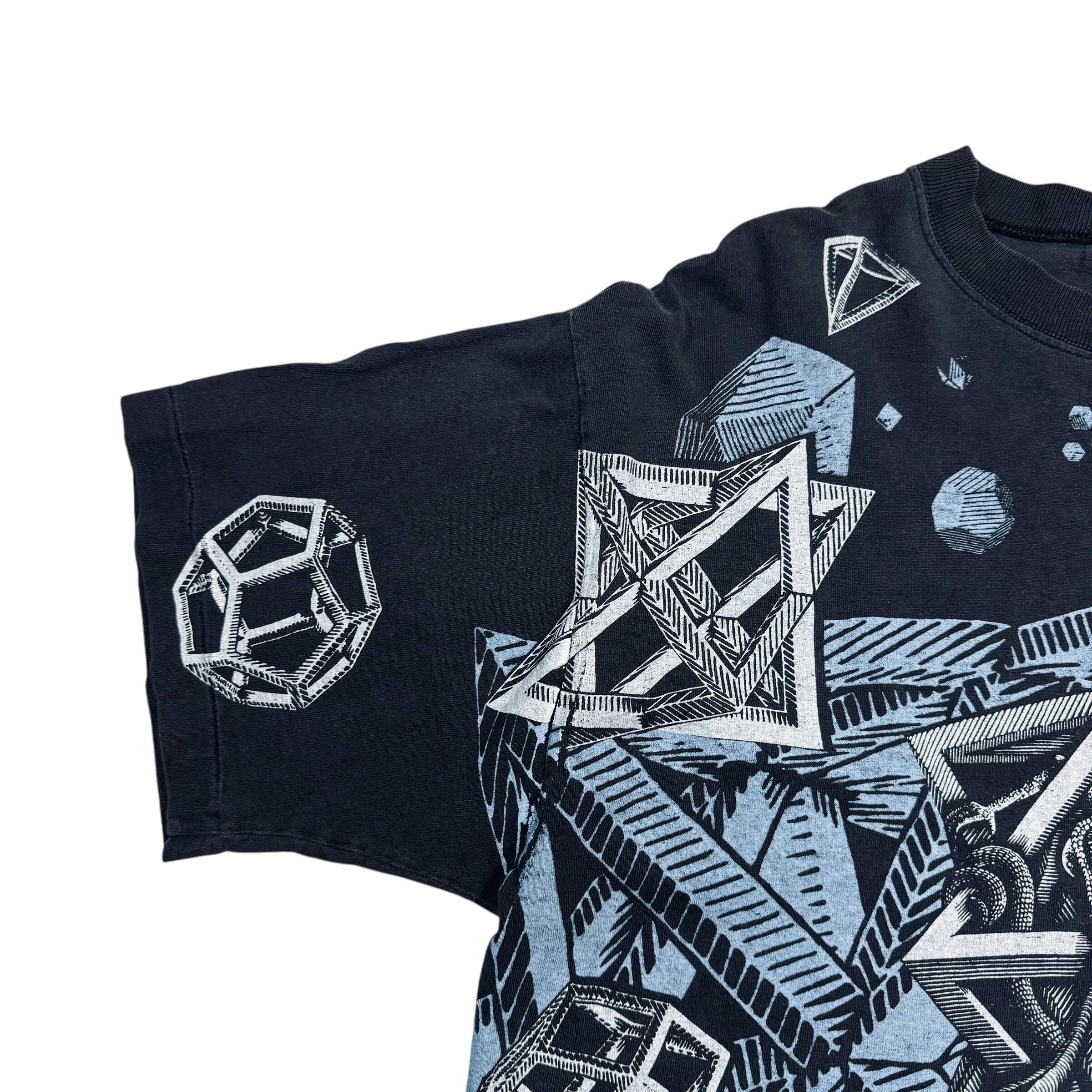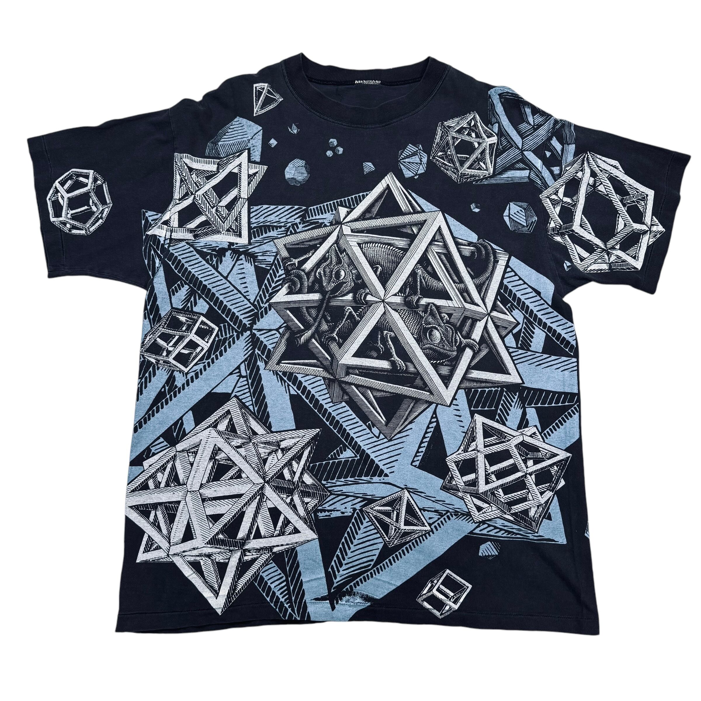 90s エッシャー スターズ カメレオン だまし絵 アートT 半袖Tシャツ