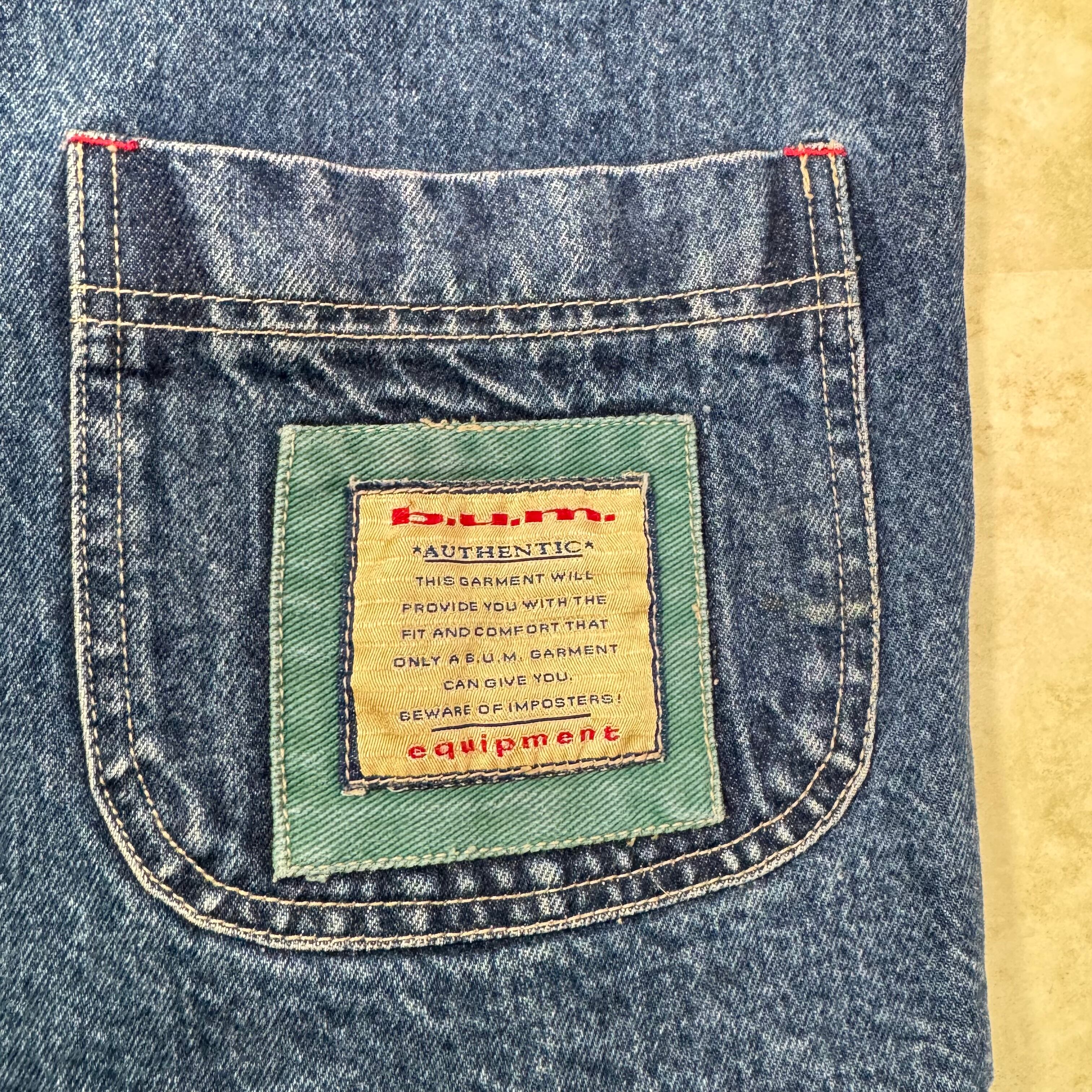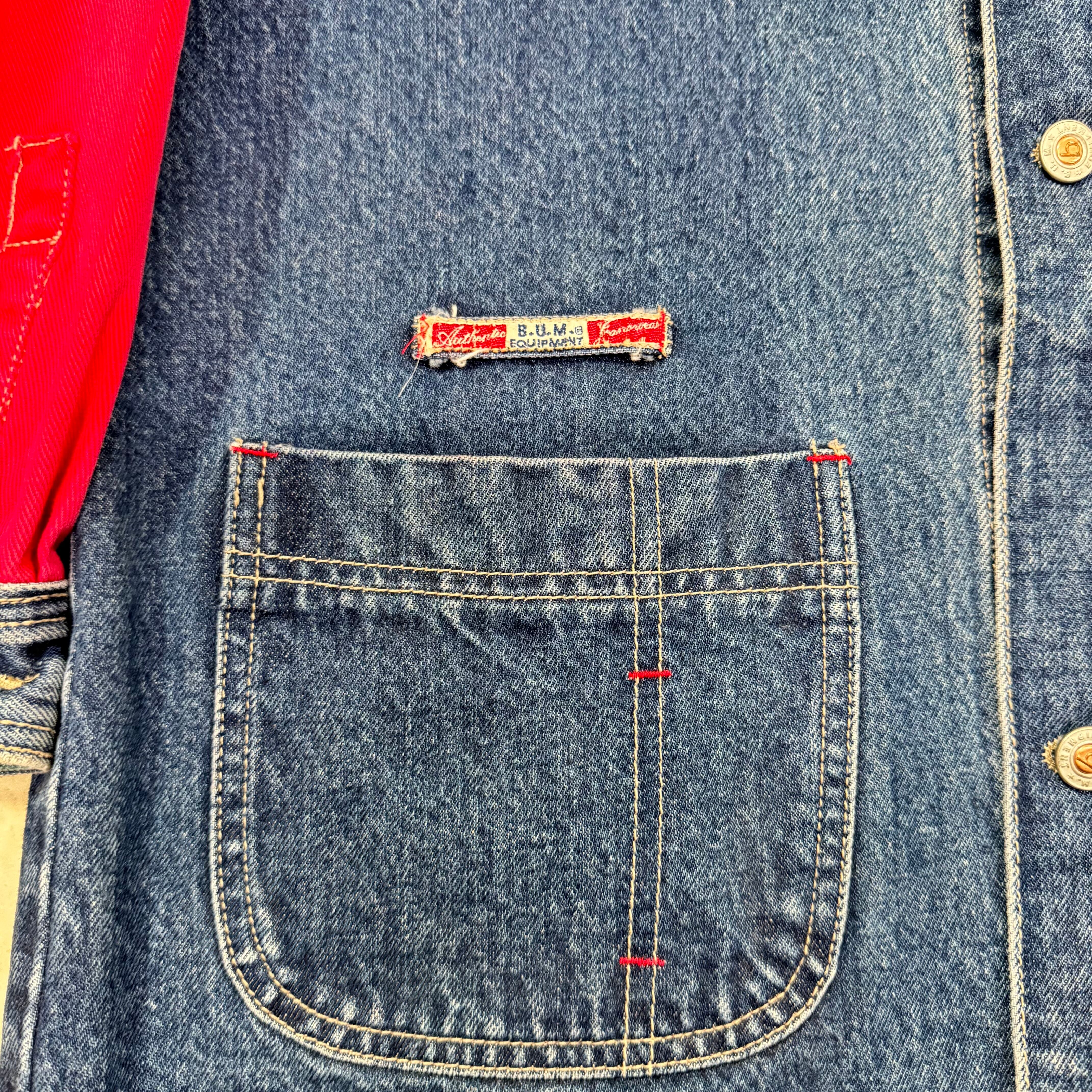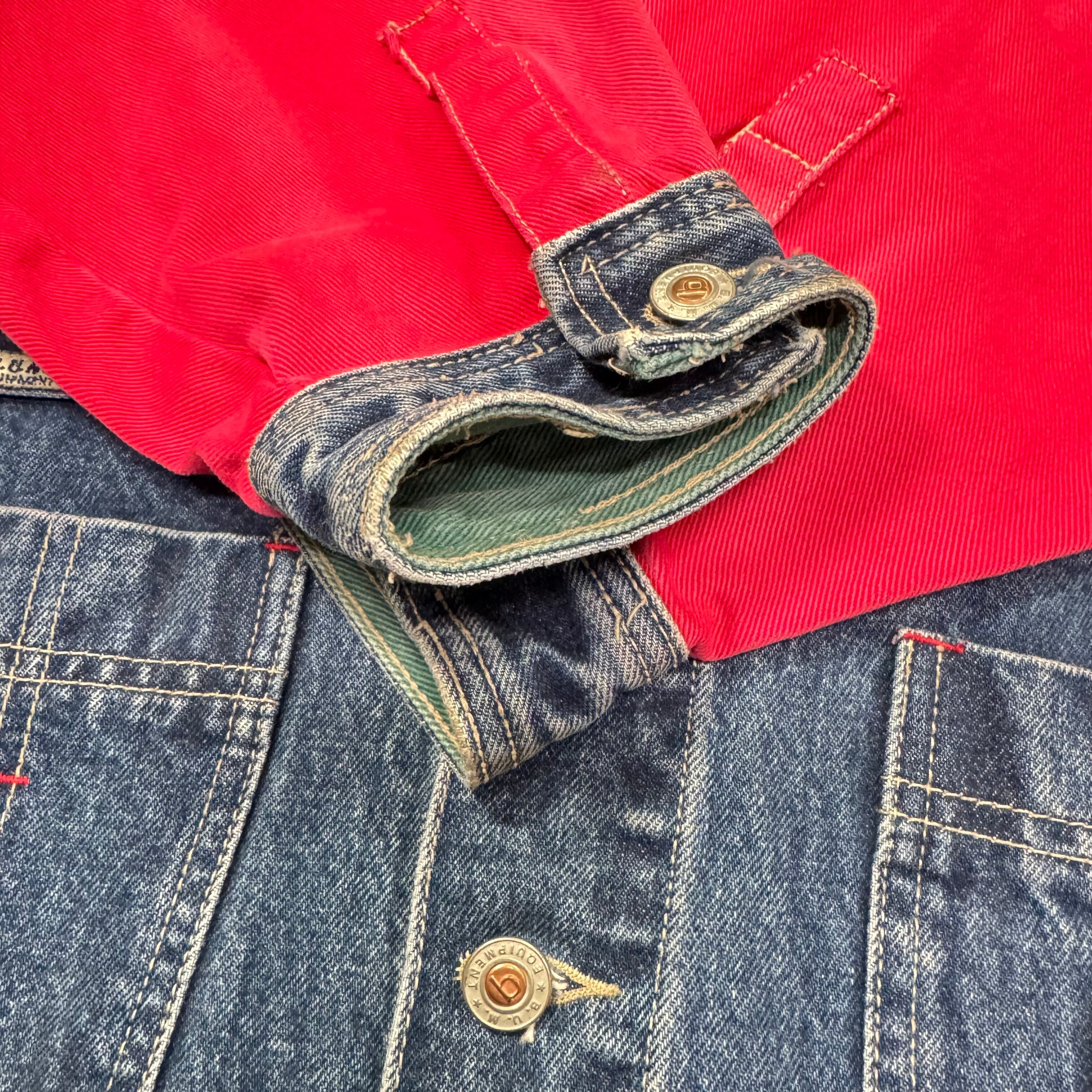 90s BUM equipment デニムジャケット 袖切替 L 刺繍 オーバーサイズ