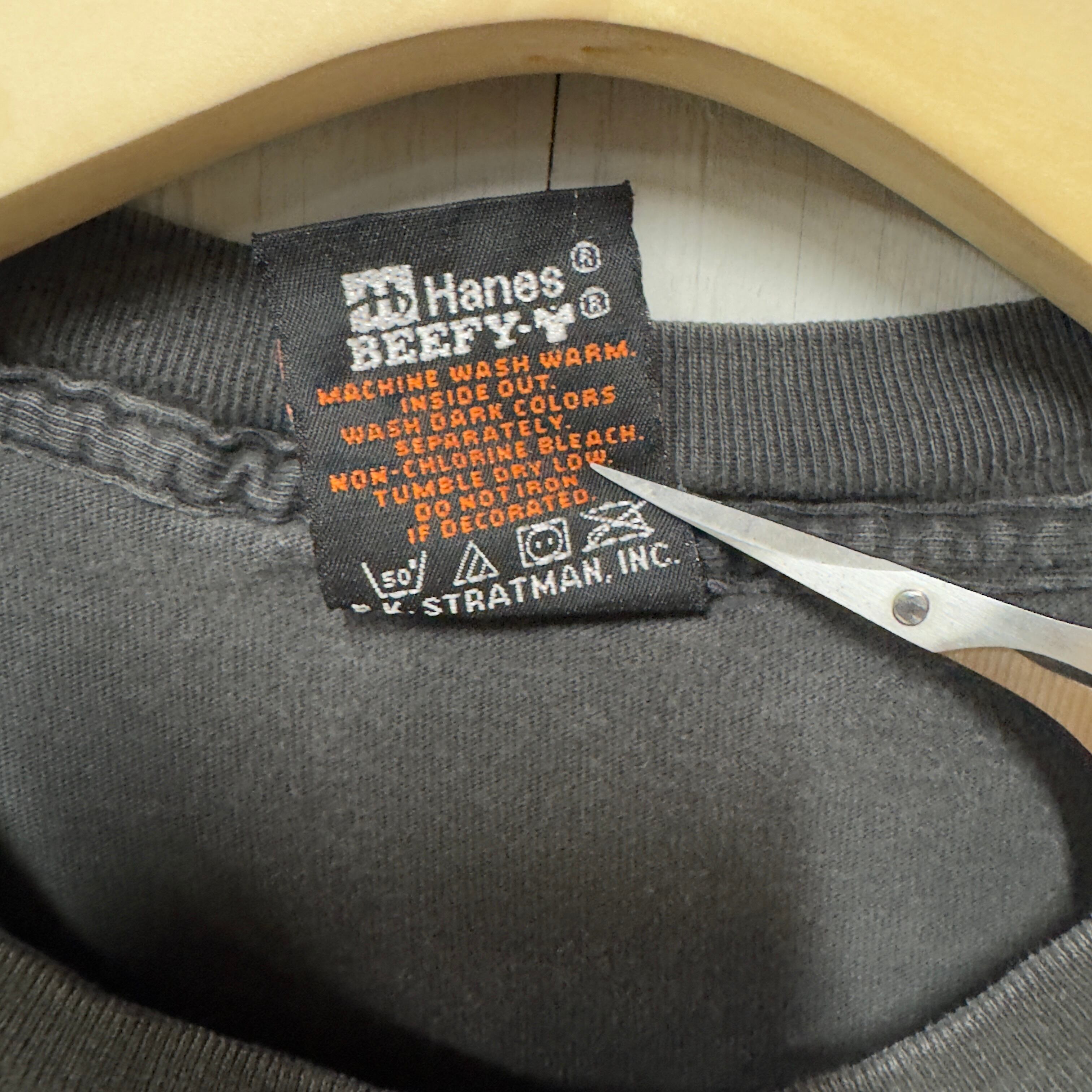 全体的なフェード感、右脇、背面に小穴があります。ヴィンテージ古着特有の使用感が見られます。