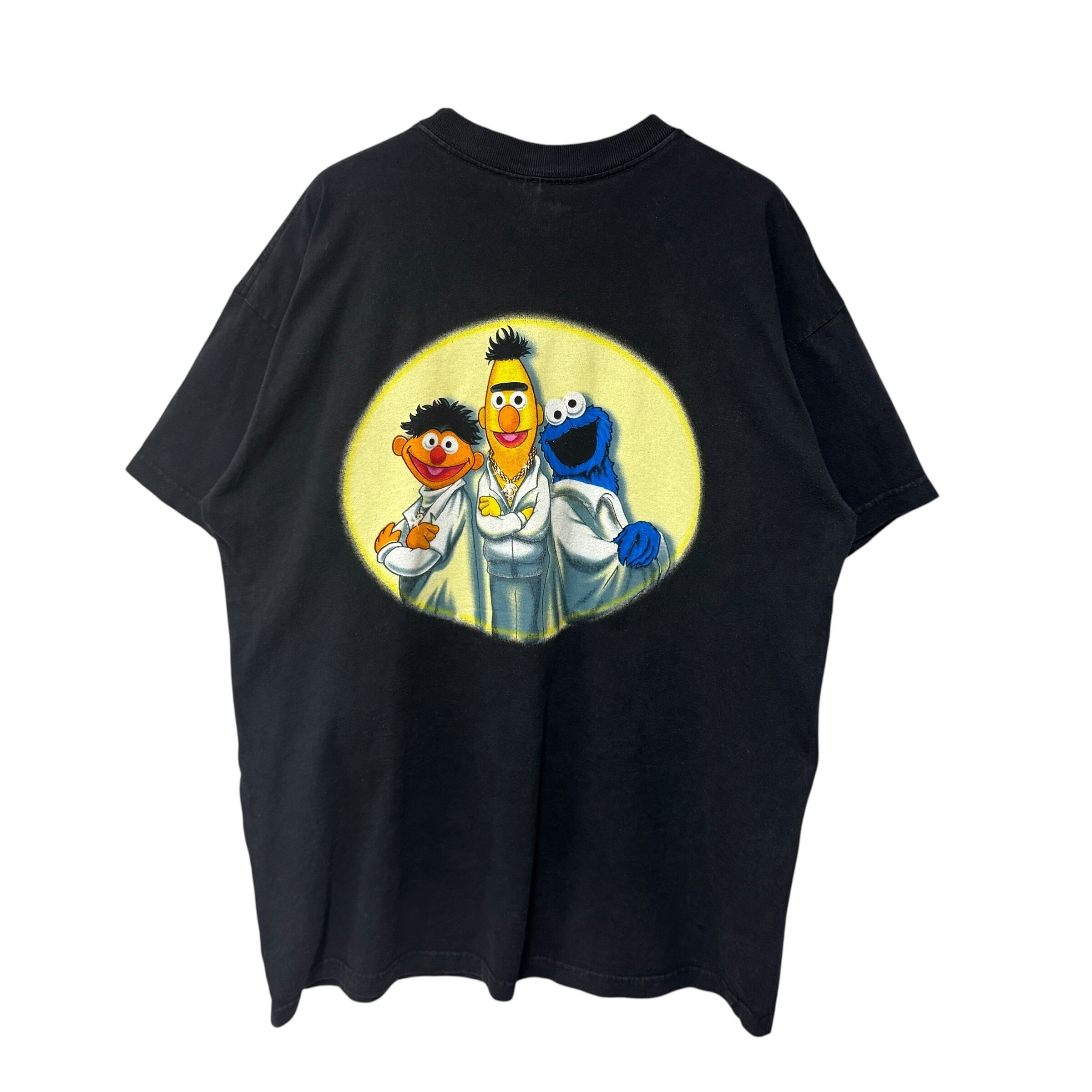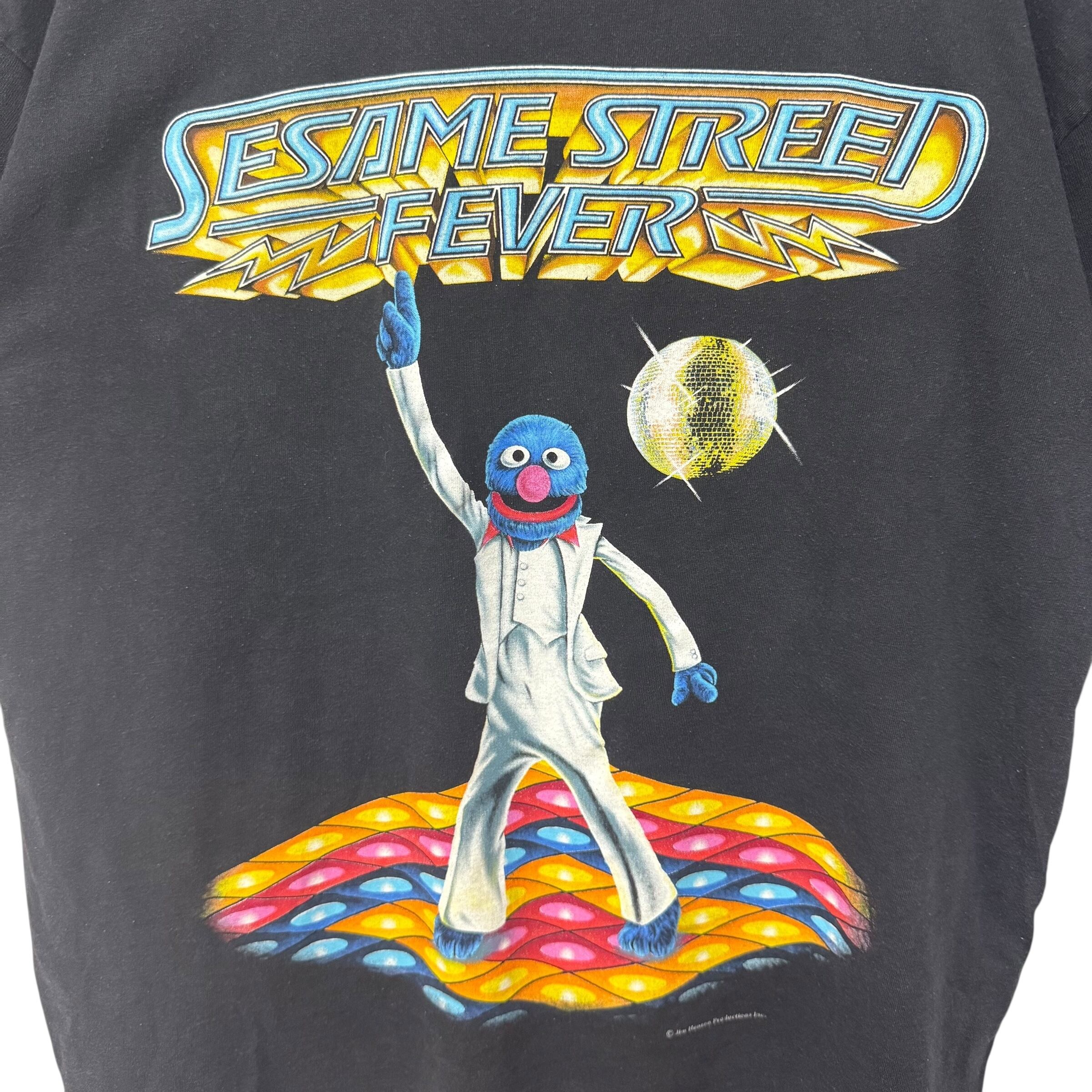 90年代SESAME STREET の"Saturday Night Fever" パロディTシャツになります。フロントにジョントラボルタを模したグローバーがプリントされており、背面にはアーニー、バート、クッキーモンスターの3人がプリントされている両面プリントTシャツです。