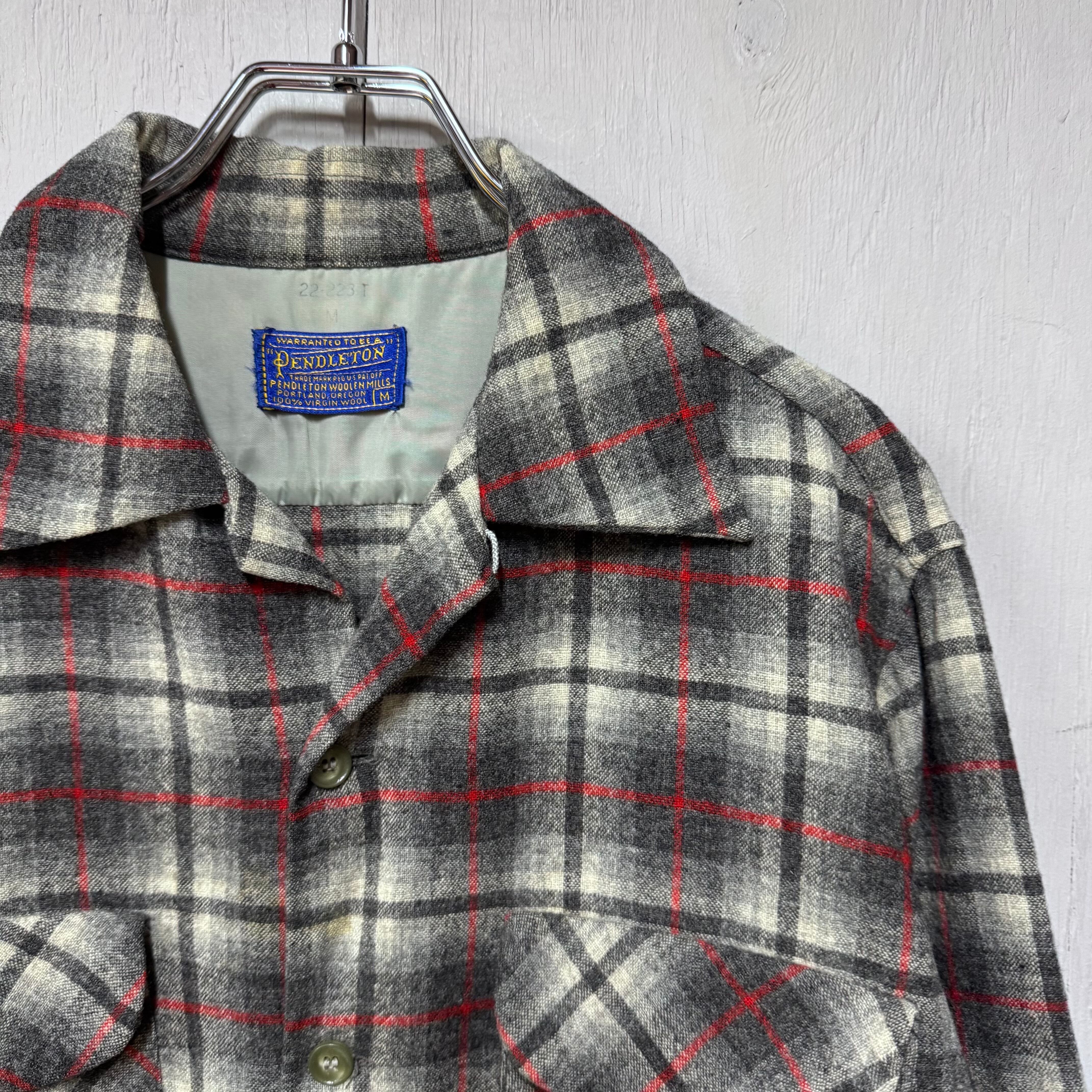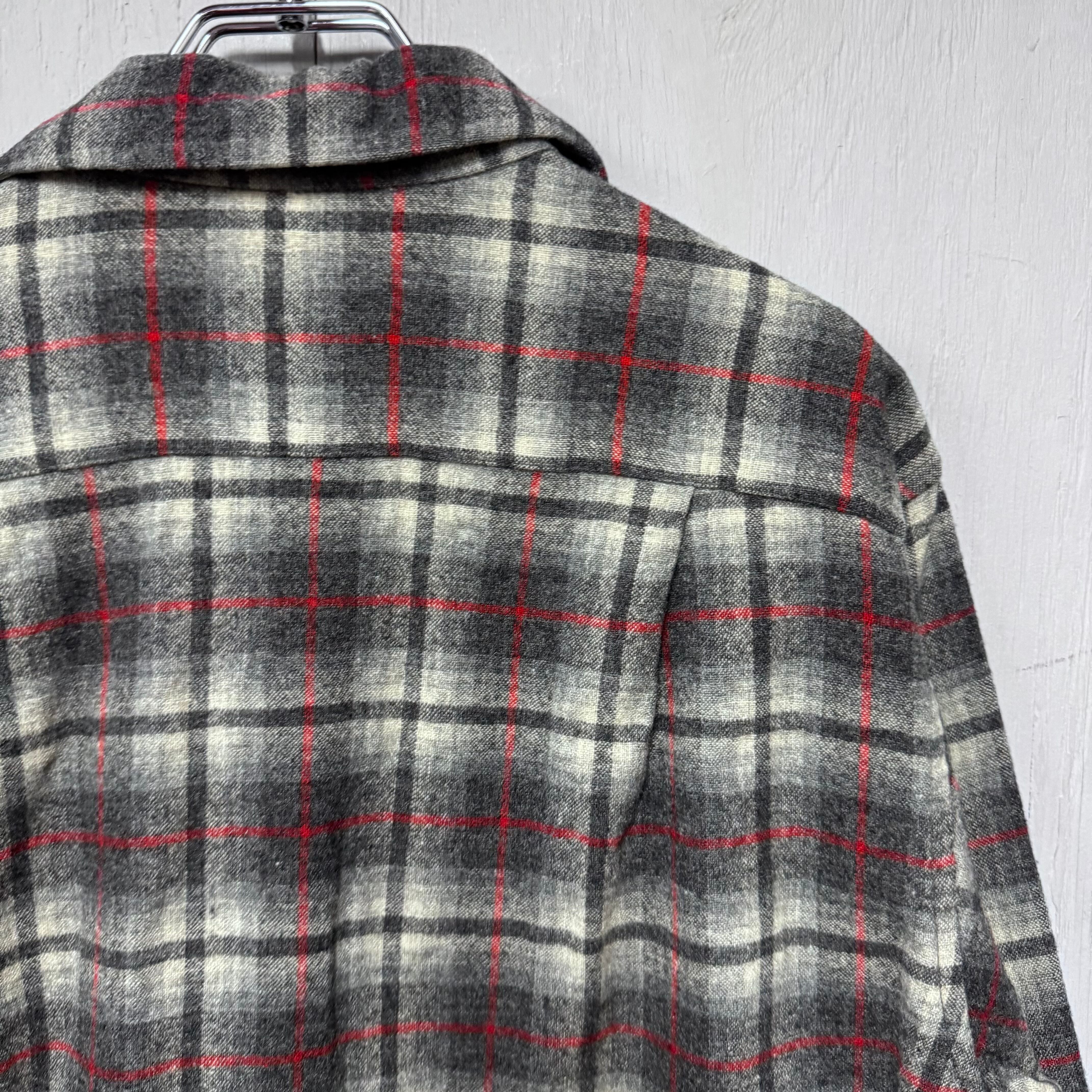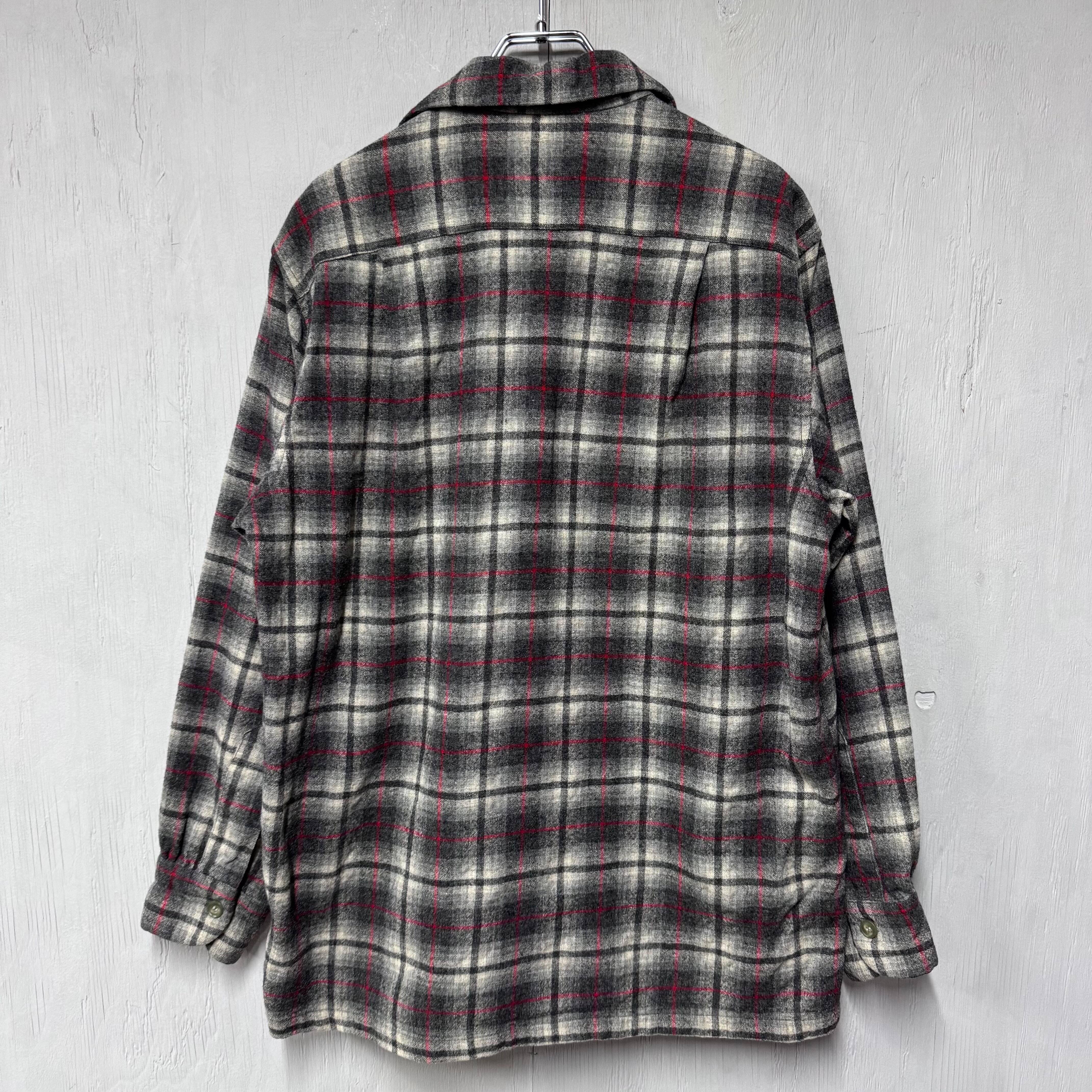 60s PENDLETON ボードシャツ オンブレチェックウールシャツ ブラック M