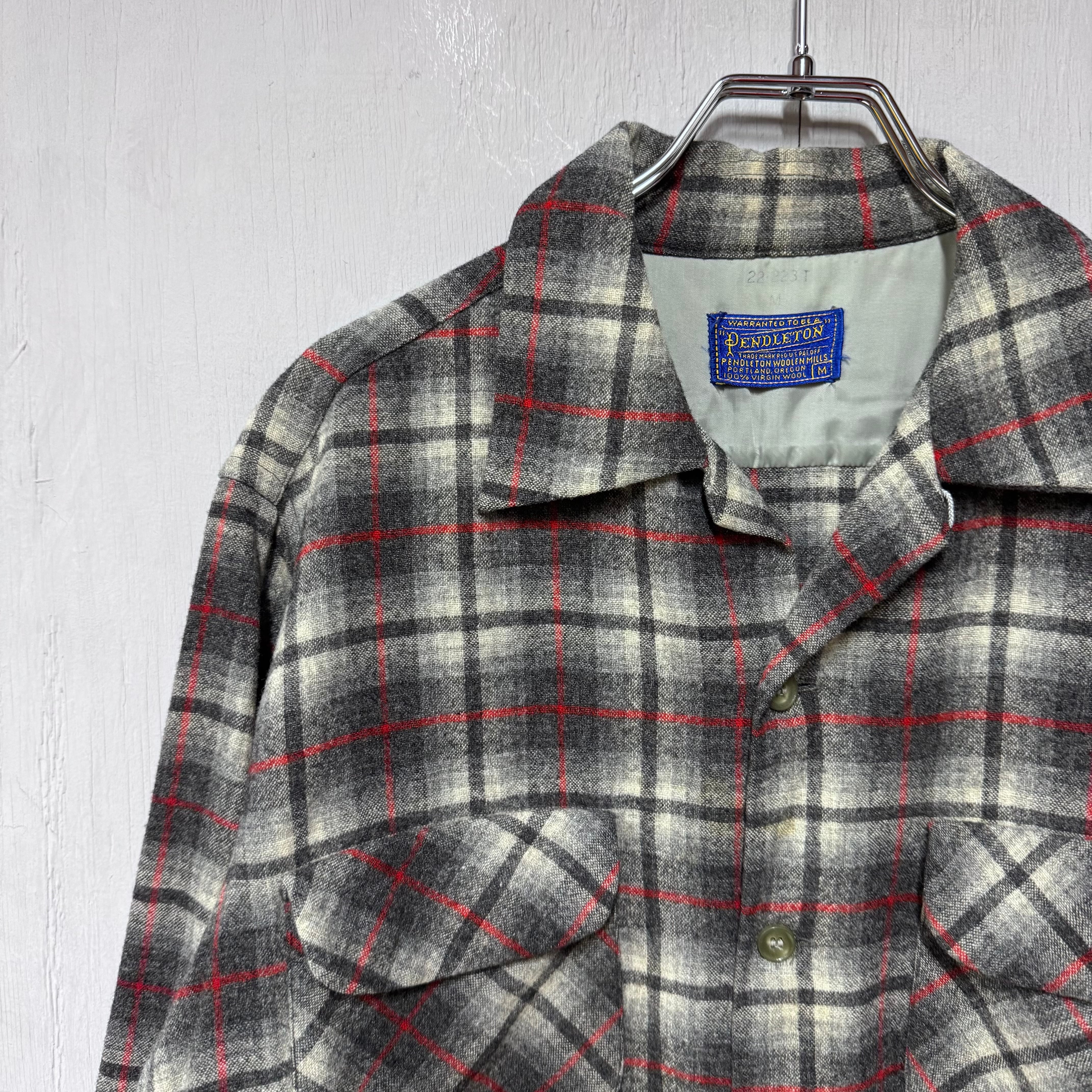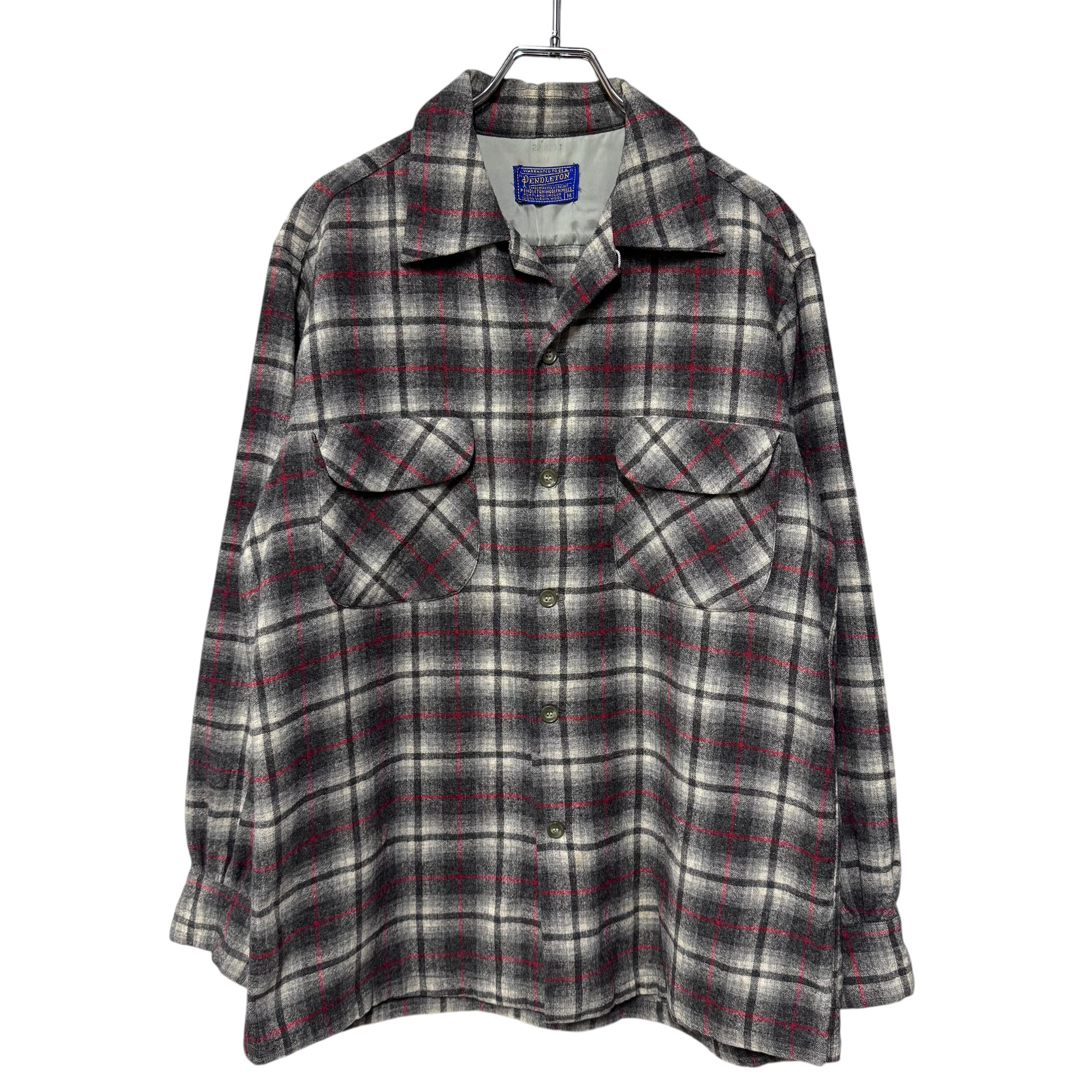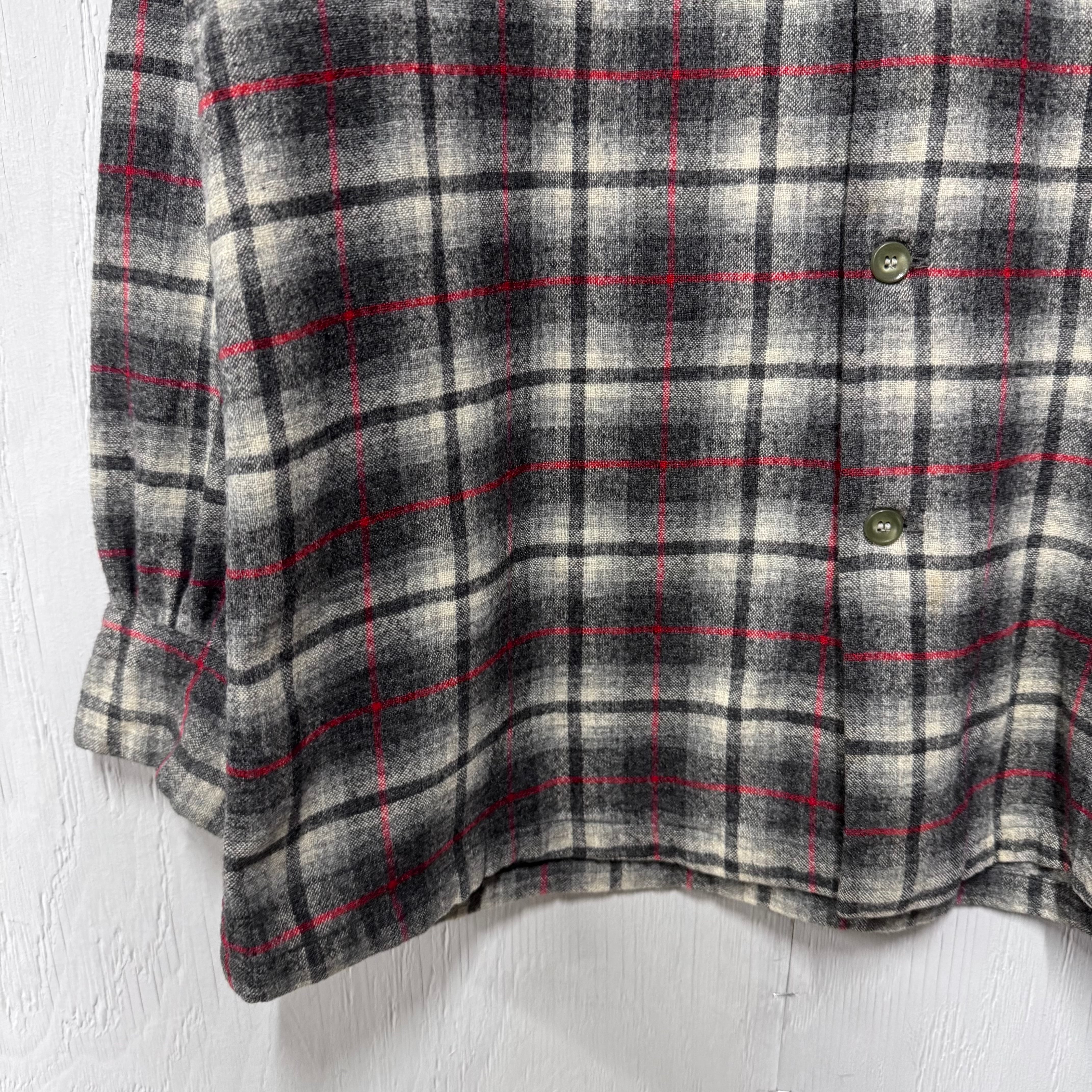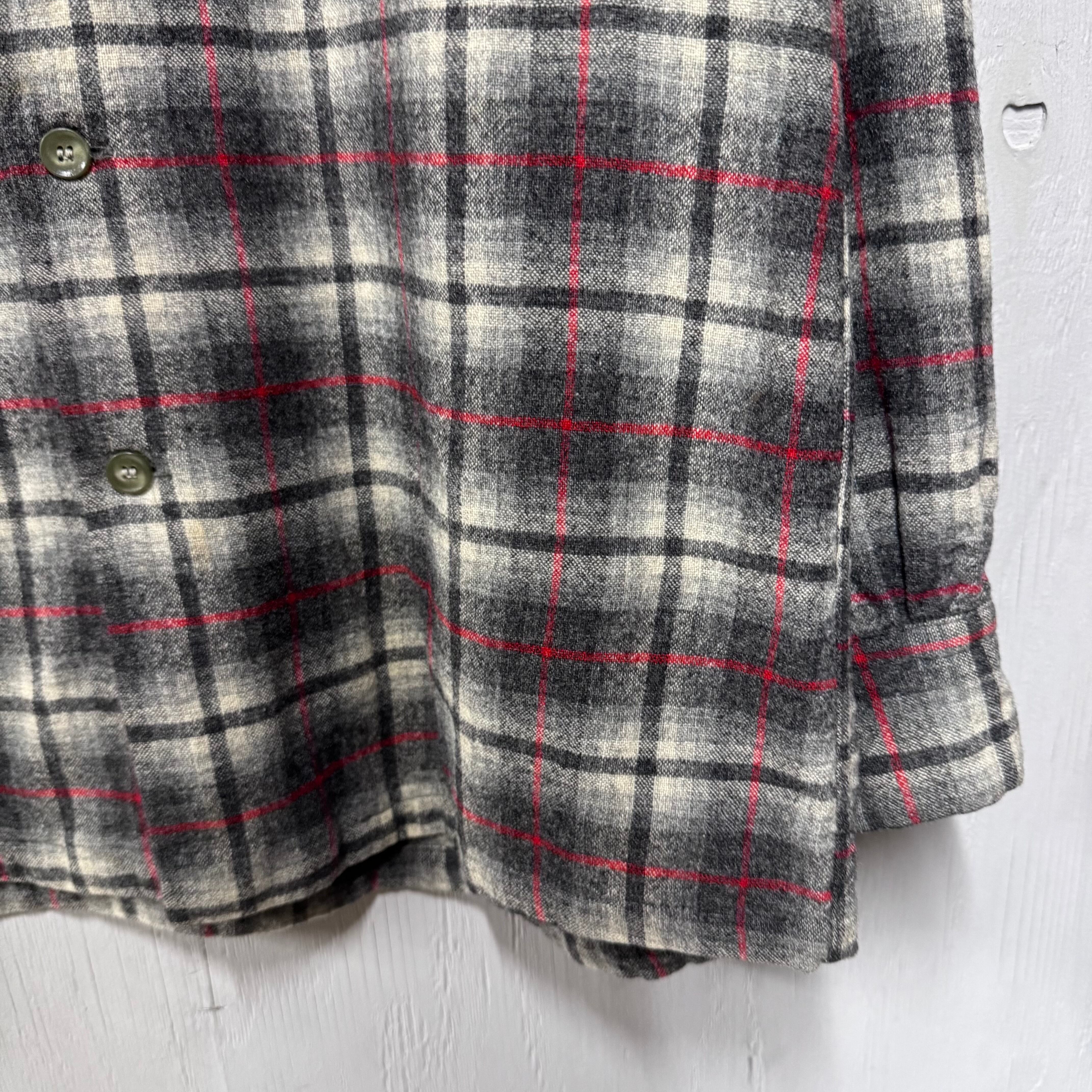 60s PENDLETON ボードシャツ オンブレチェックウールシャツ ブラック M