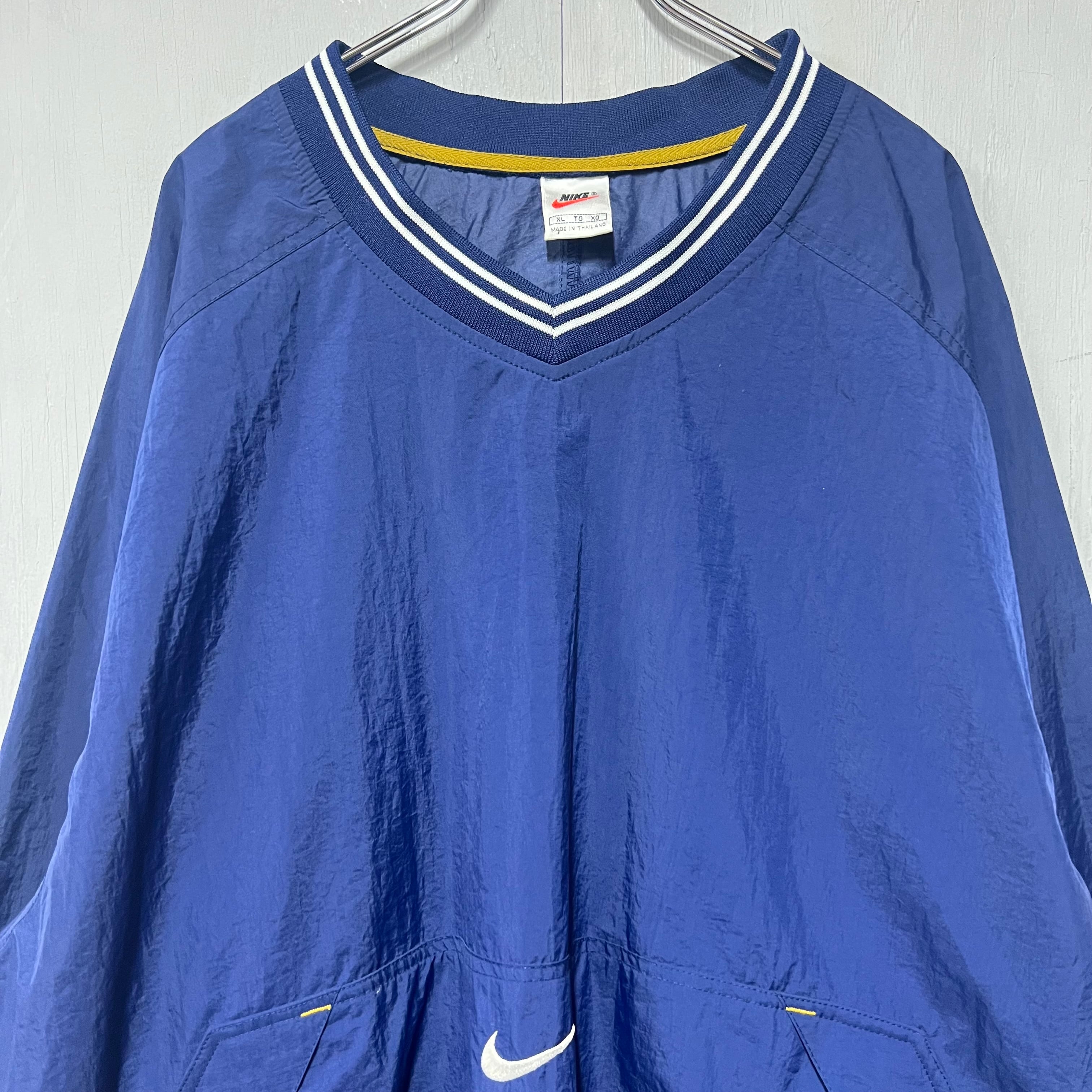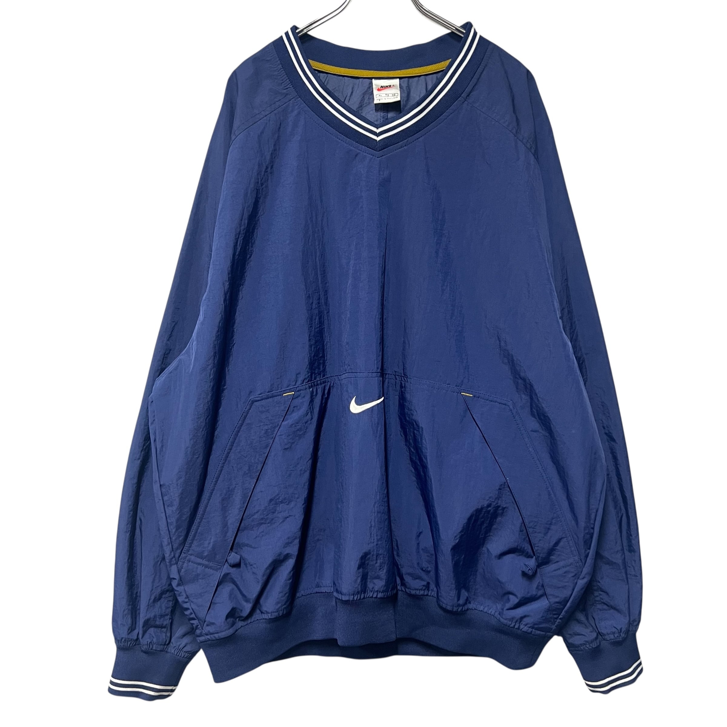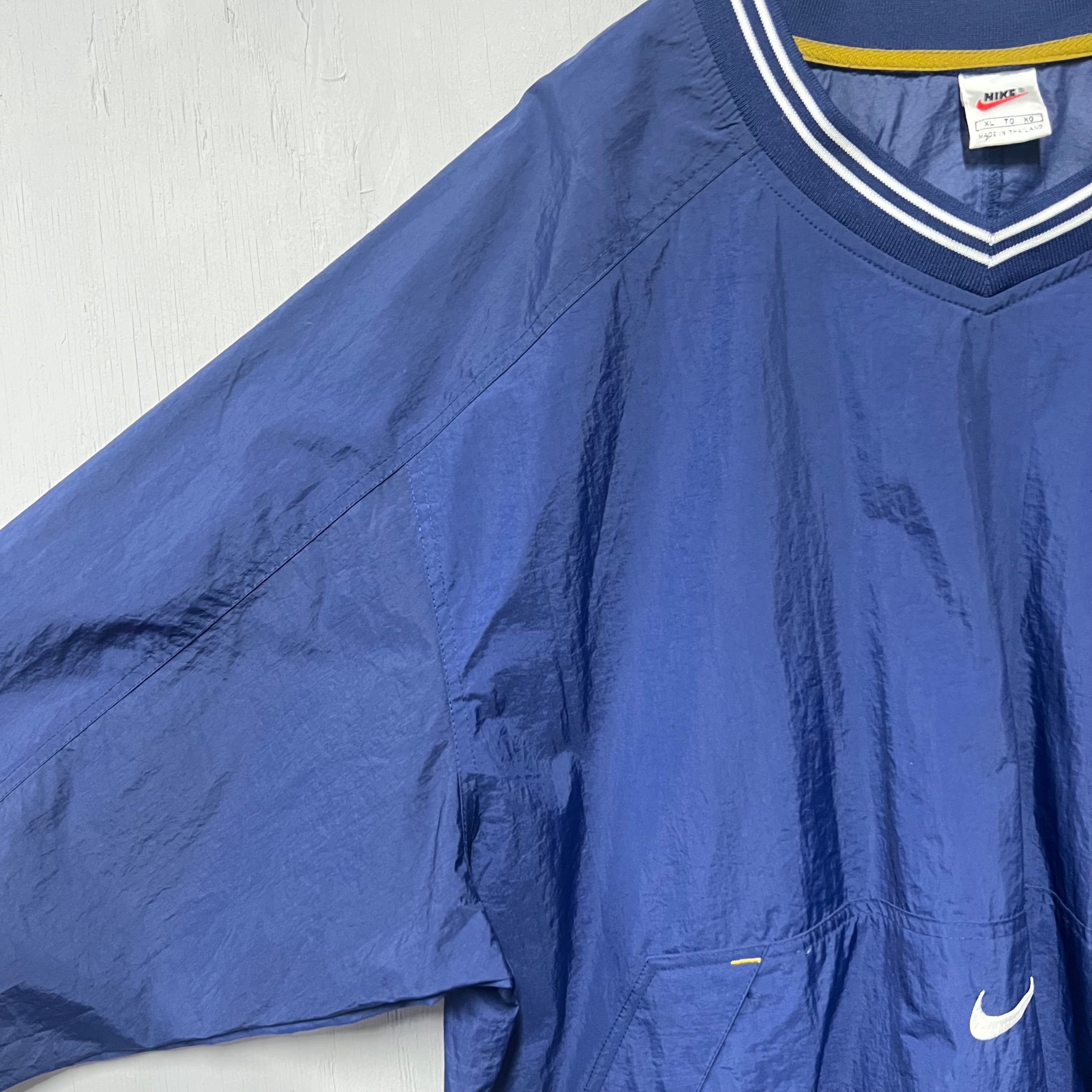 90s NIKE Vネックナイロンプルオーバー ピステ ネイビー XL