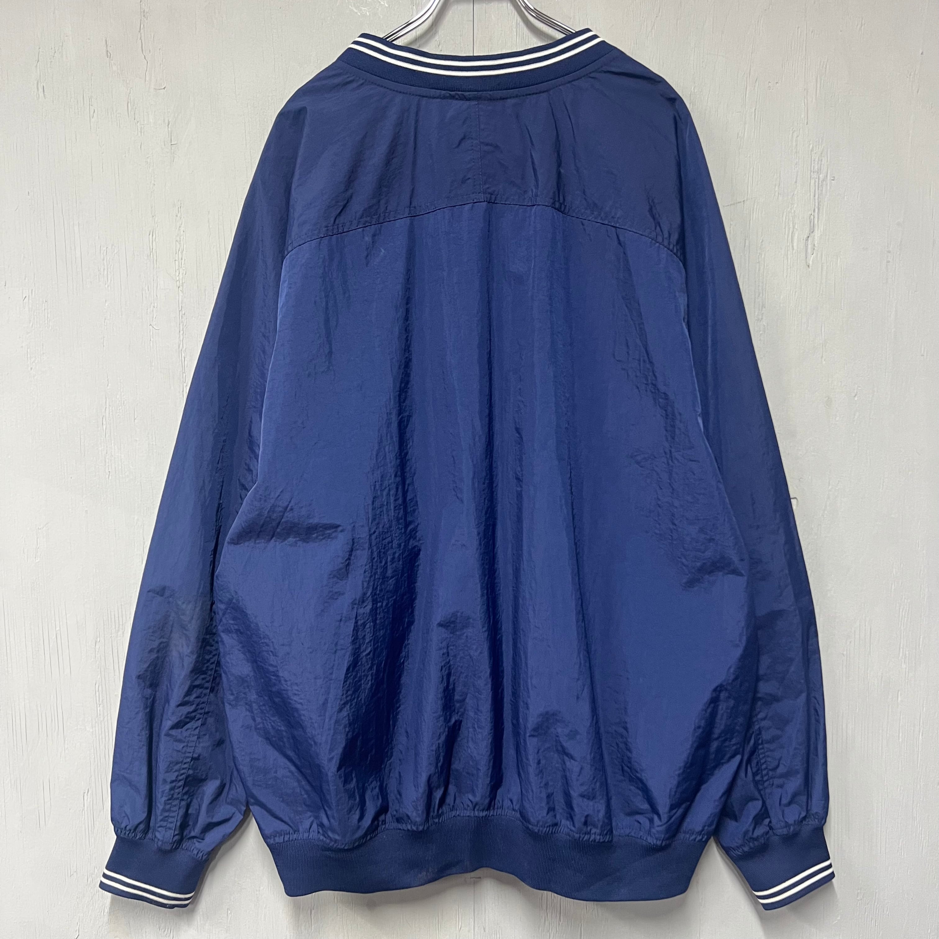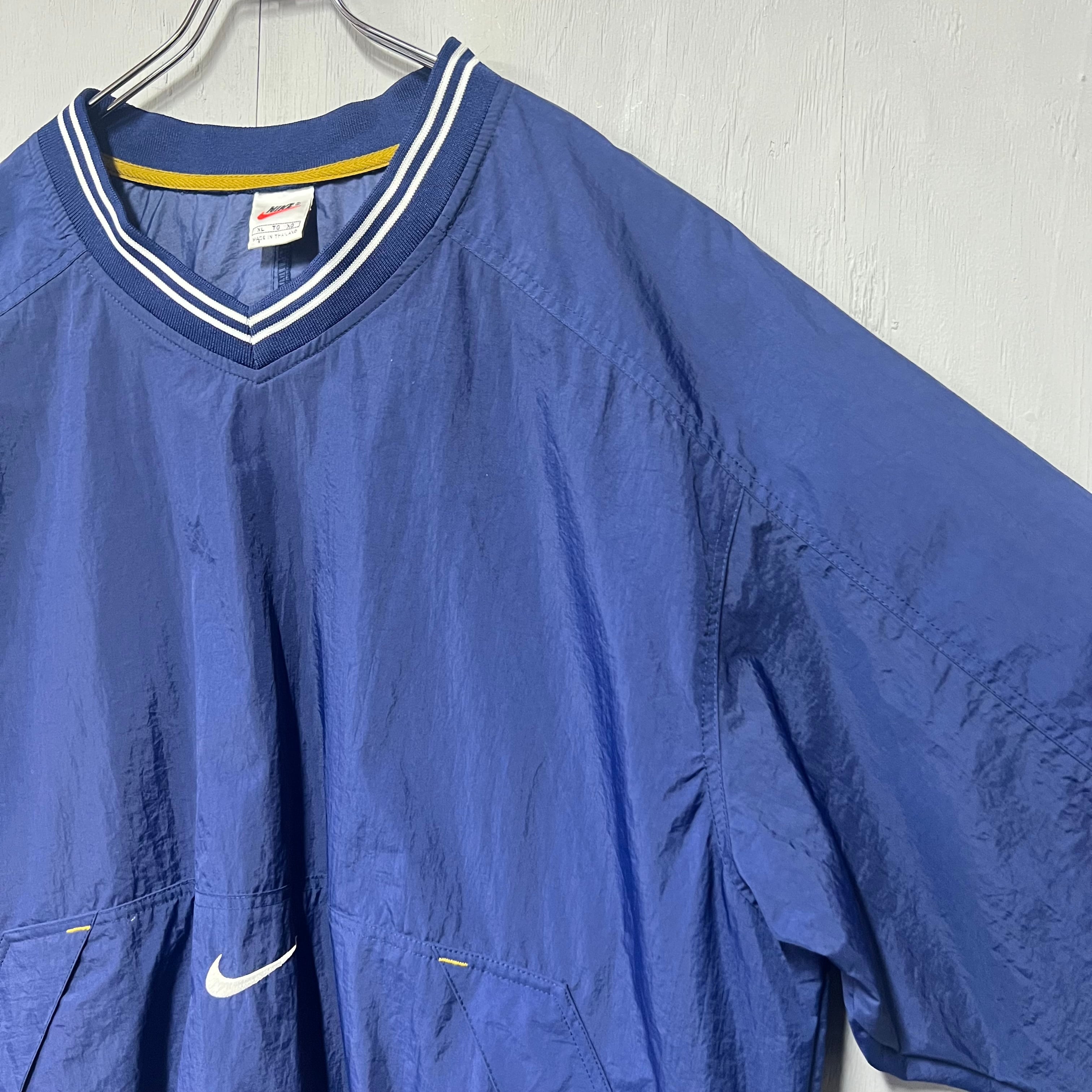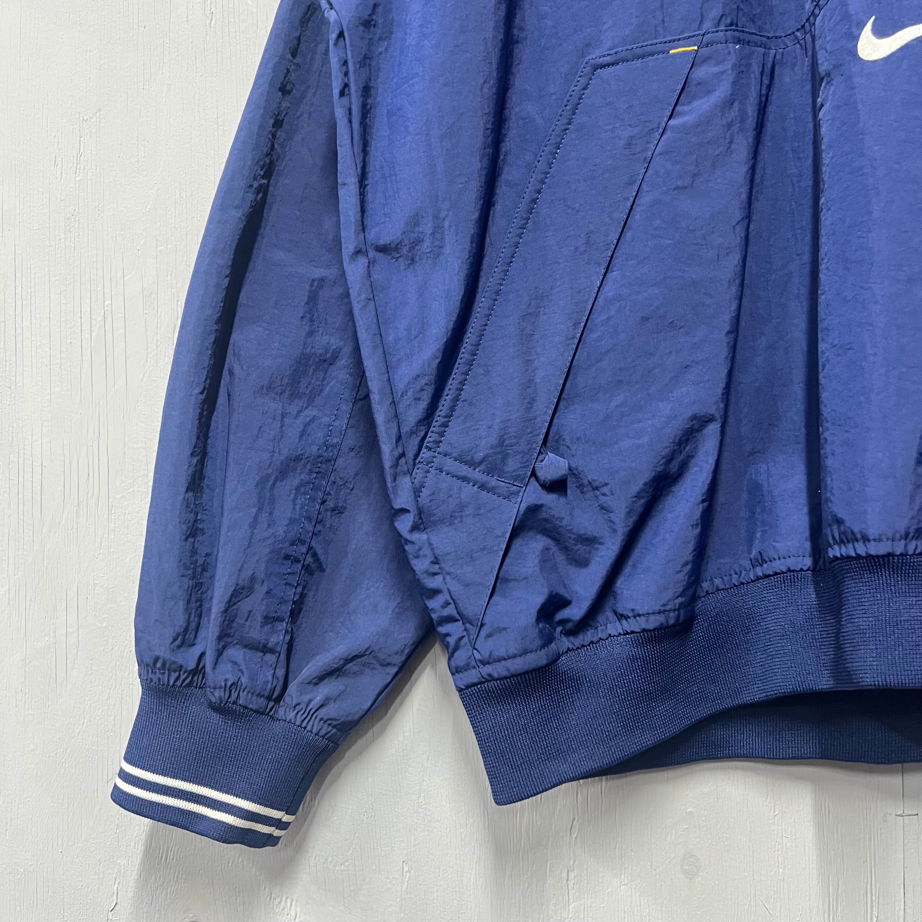90s NIKE Vネックナイロンプルオーバー ピステ ネイビー XL