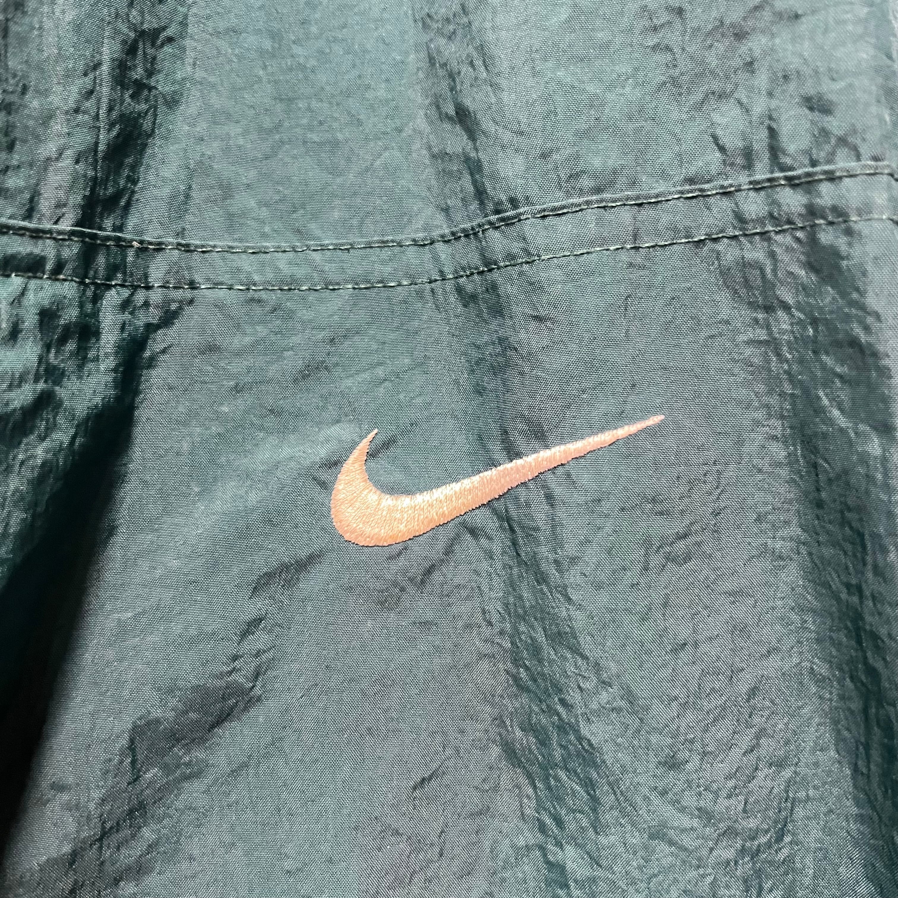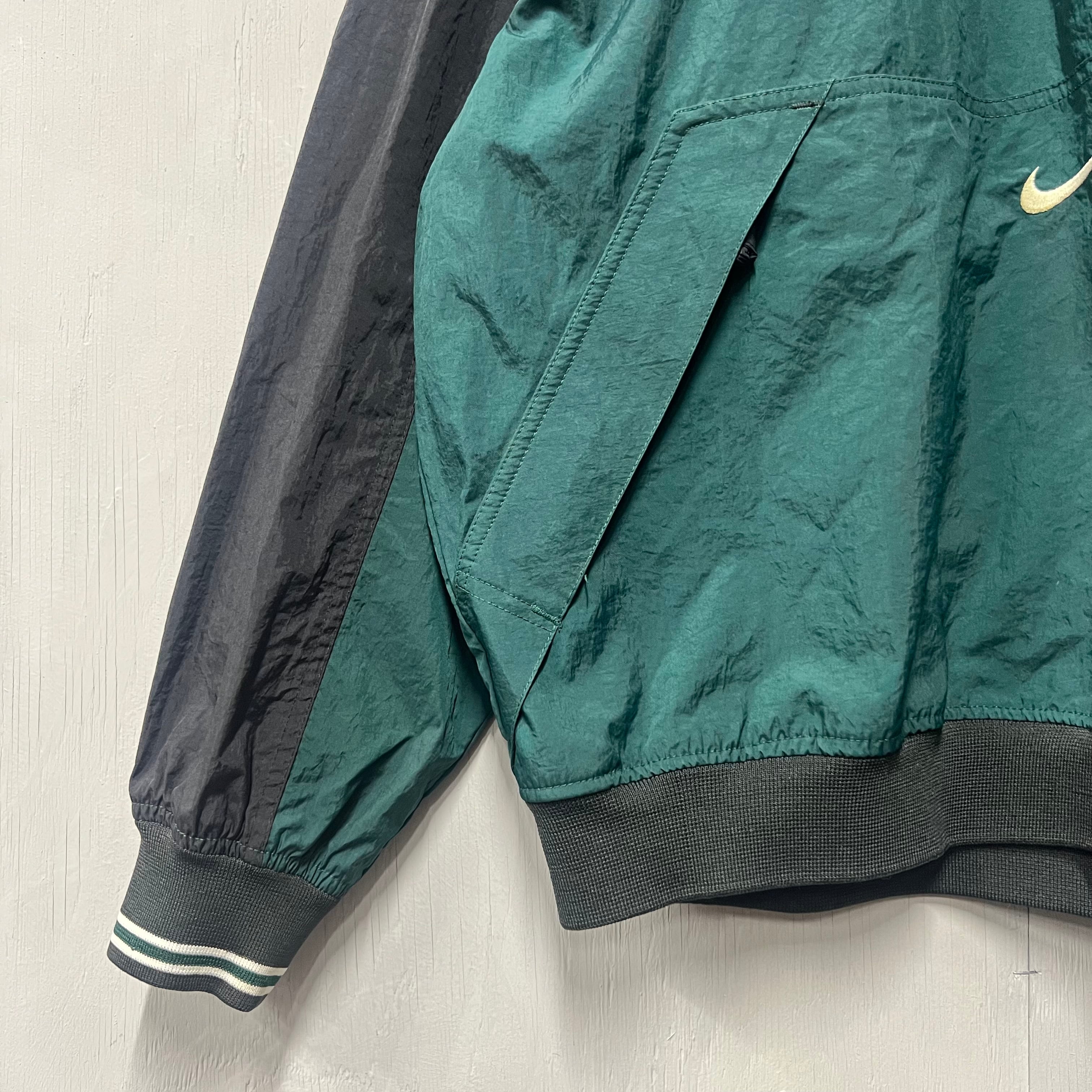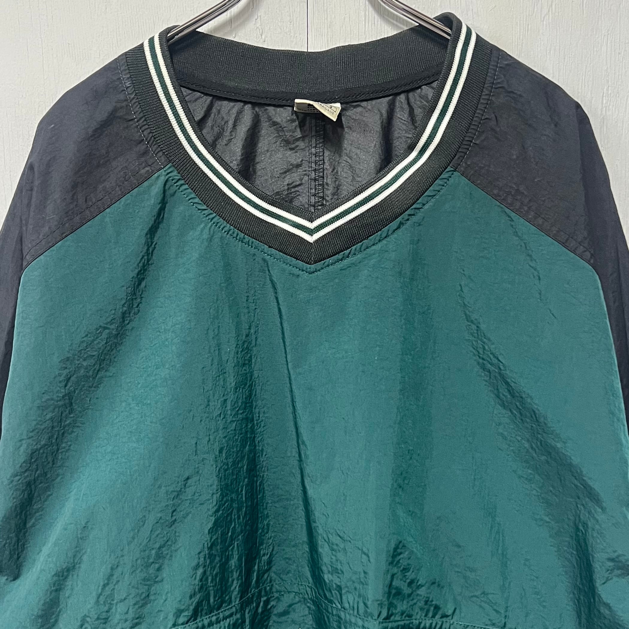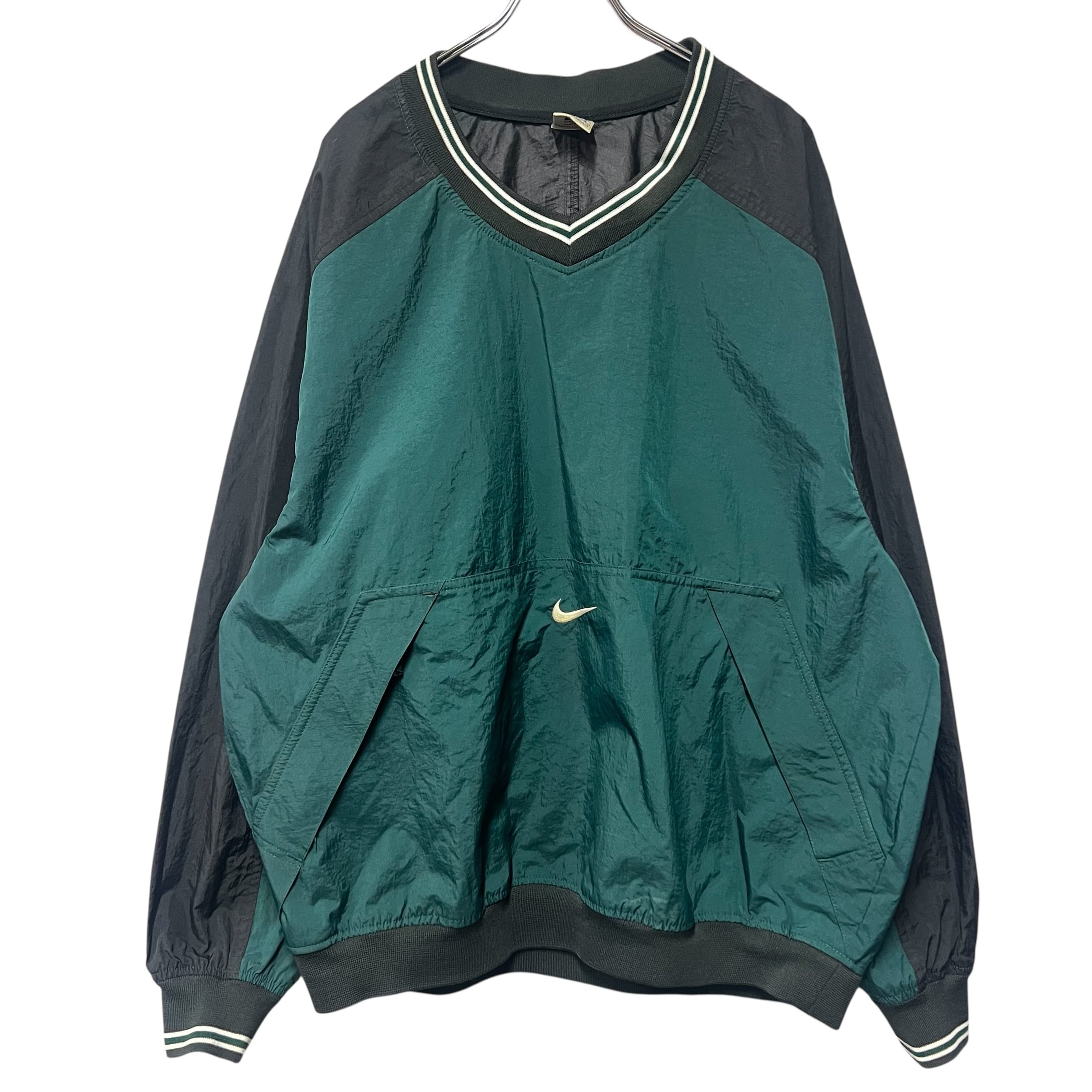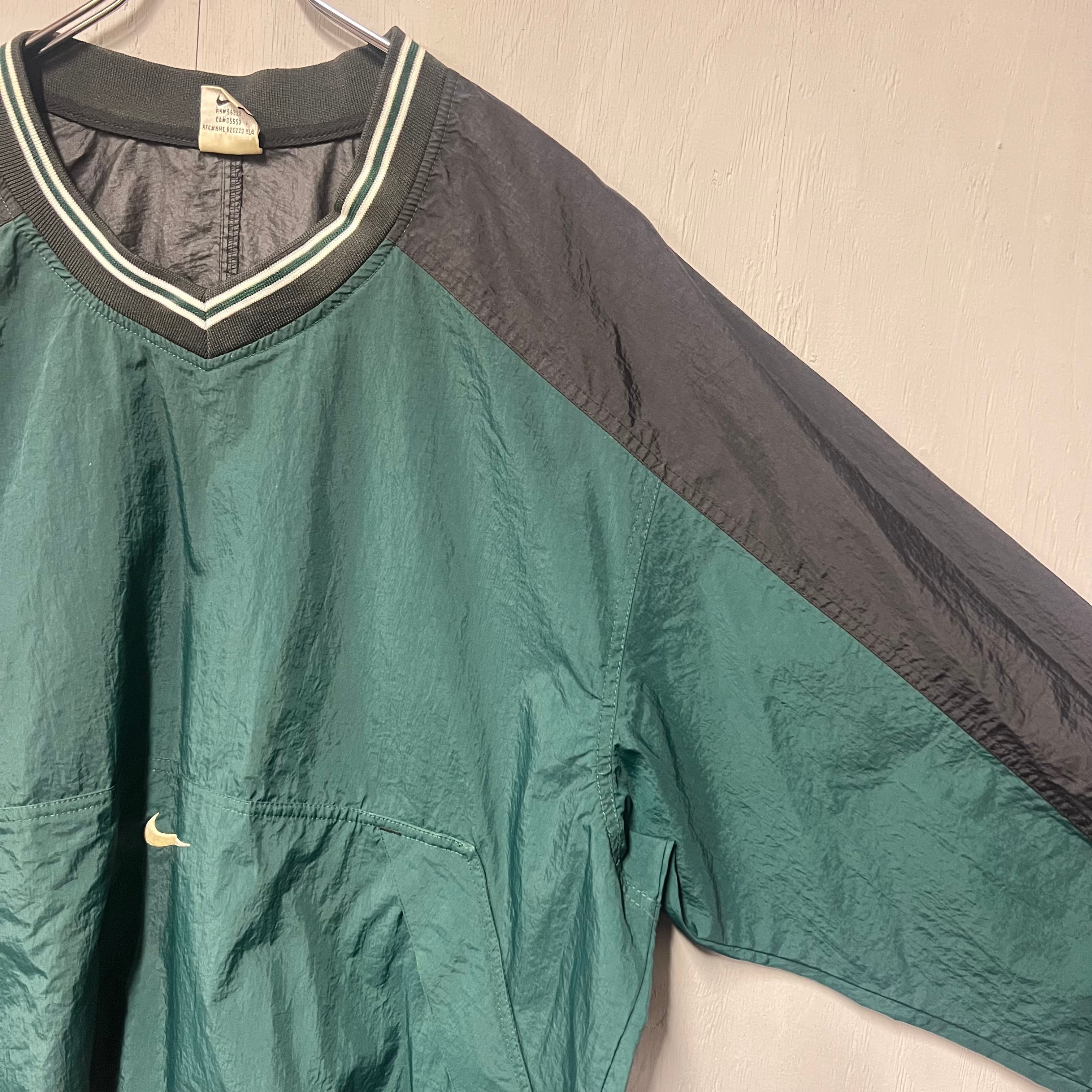 90s NIKE Vネックナイロンプルオーバー ピステ グリーン L