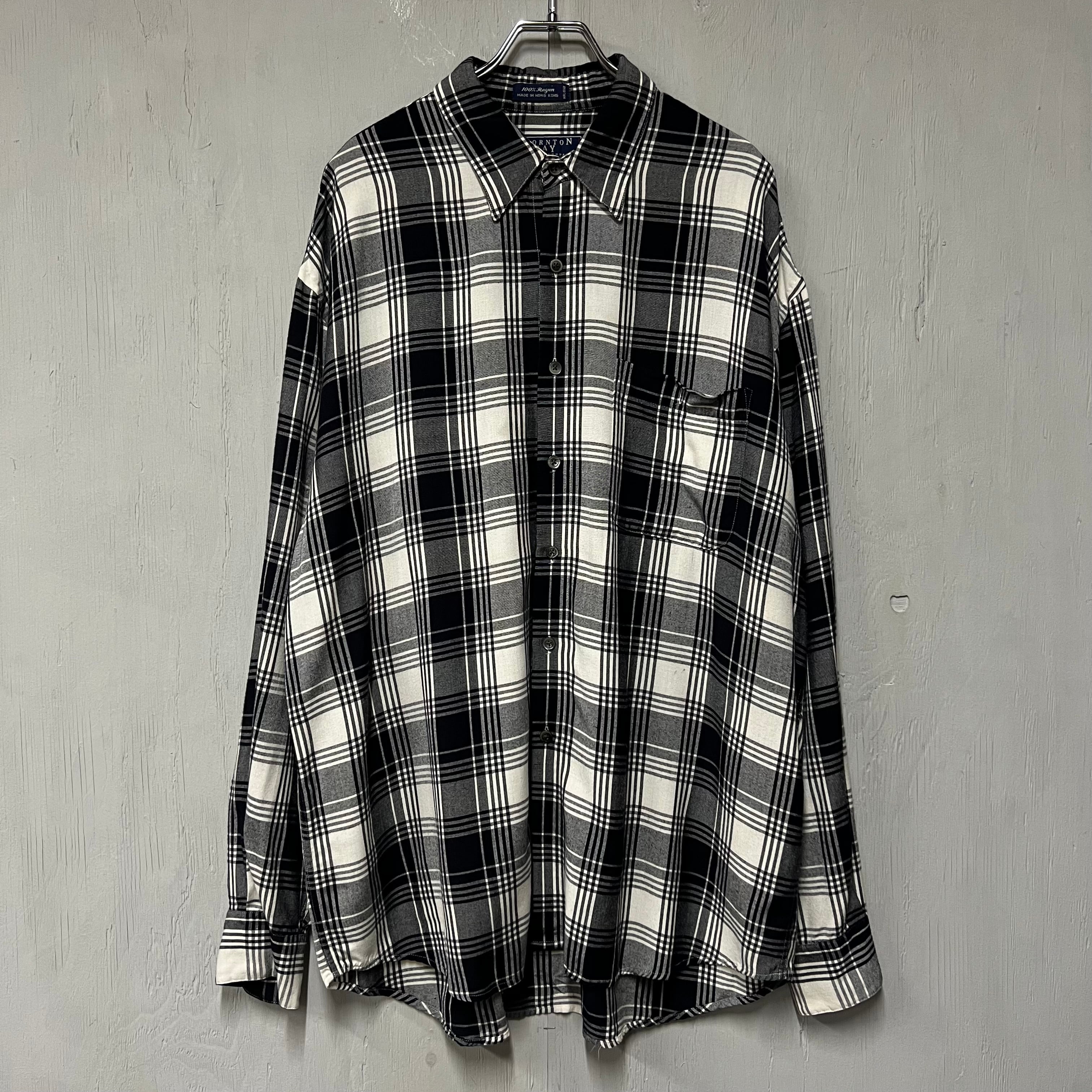 THORNTON BAY レーヨン100%シャツ ブラック×ホワイト L