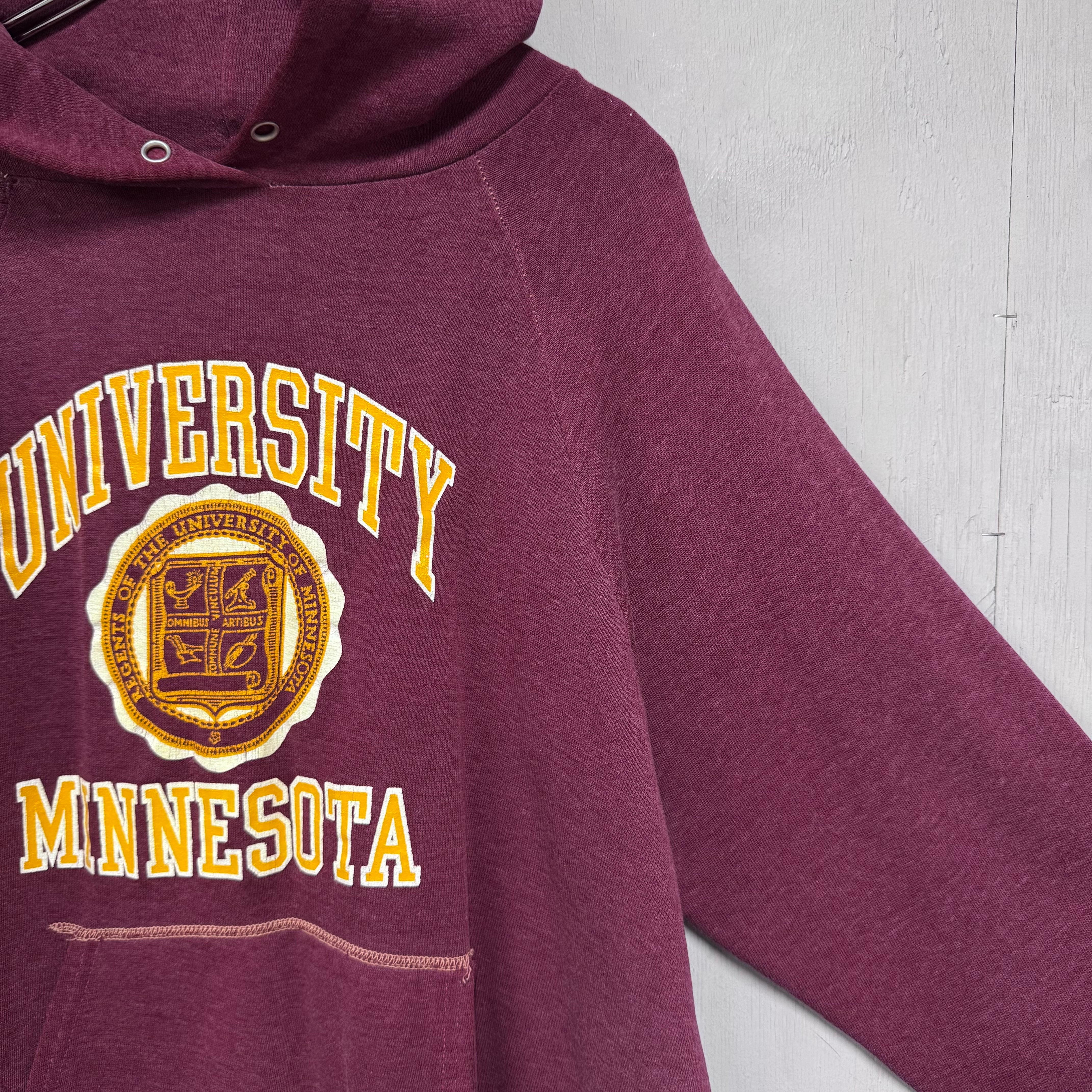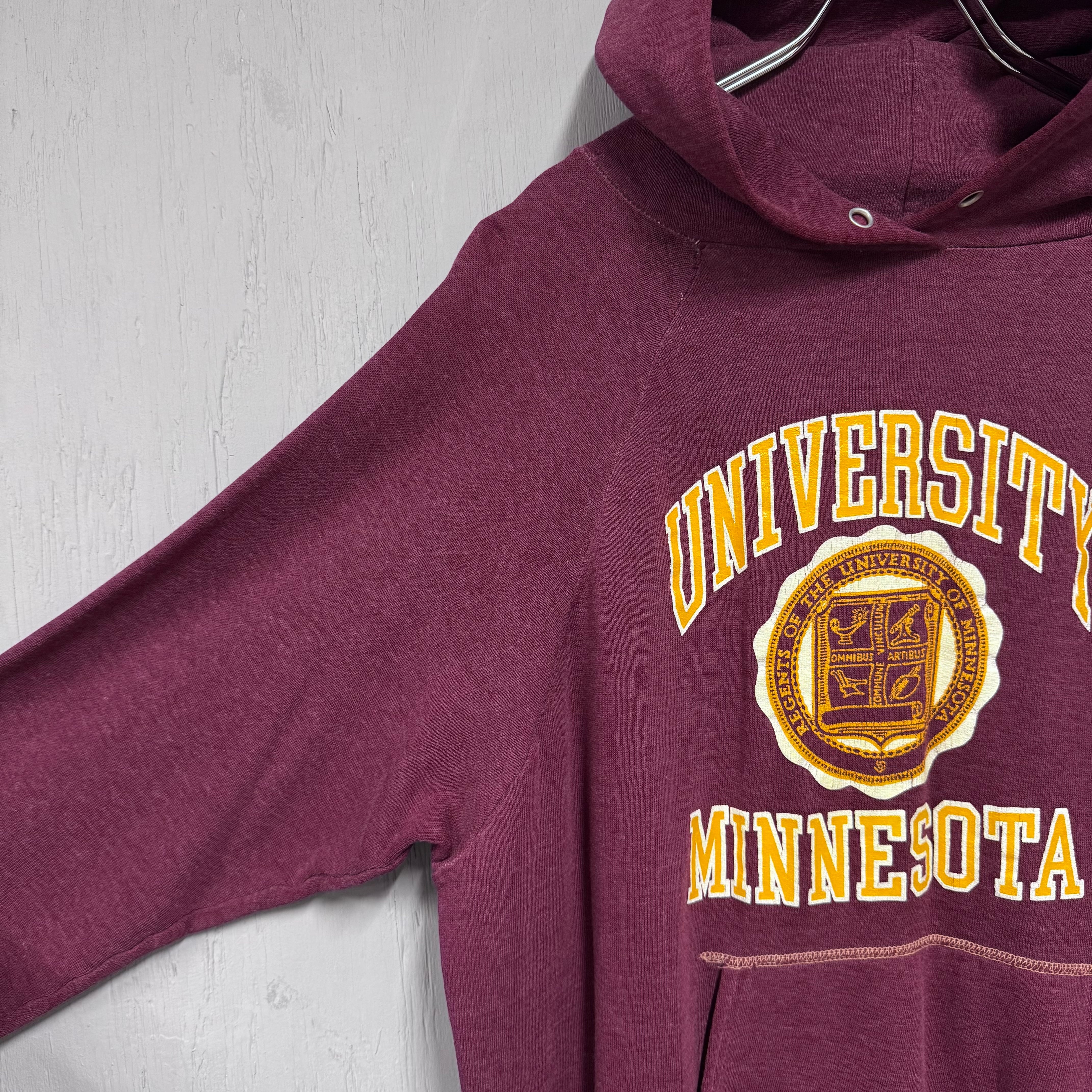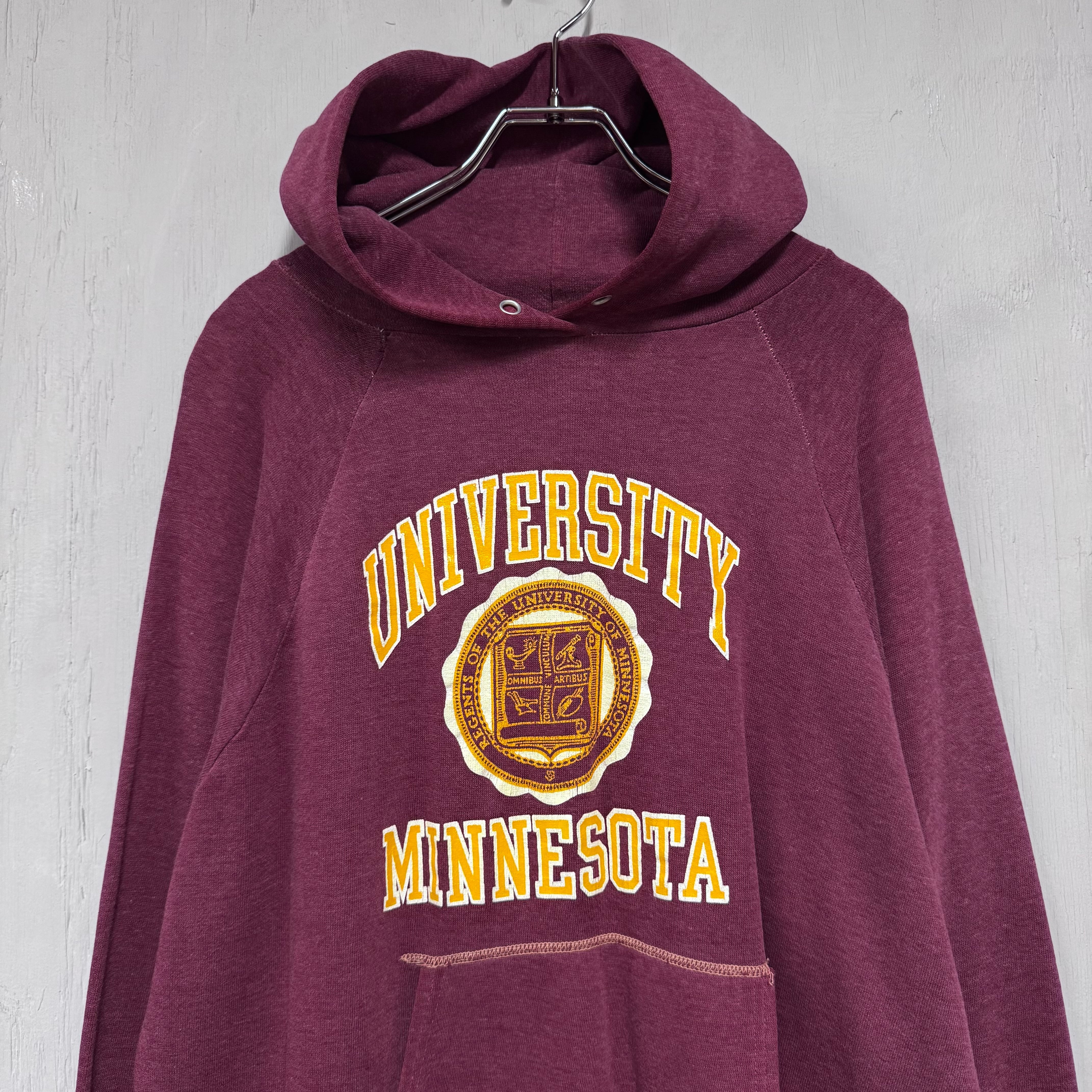 70s~ ビンテージカレッジプリントプルオーバーパーカー ボルドー S~M相当