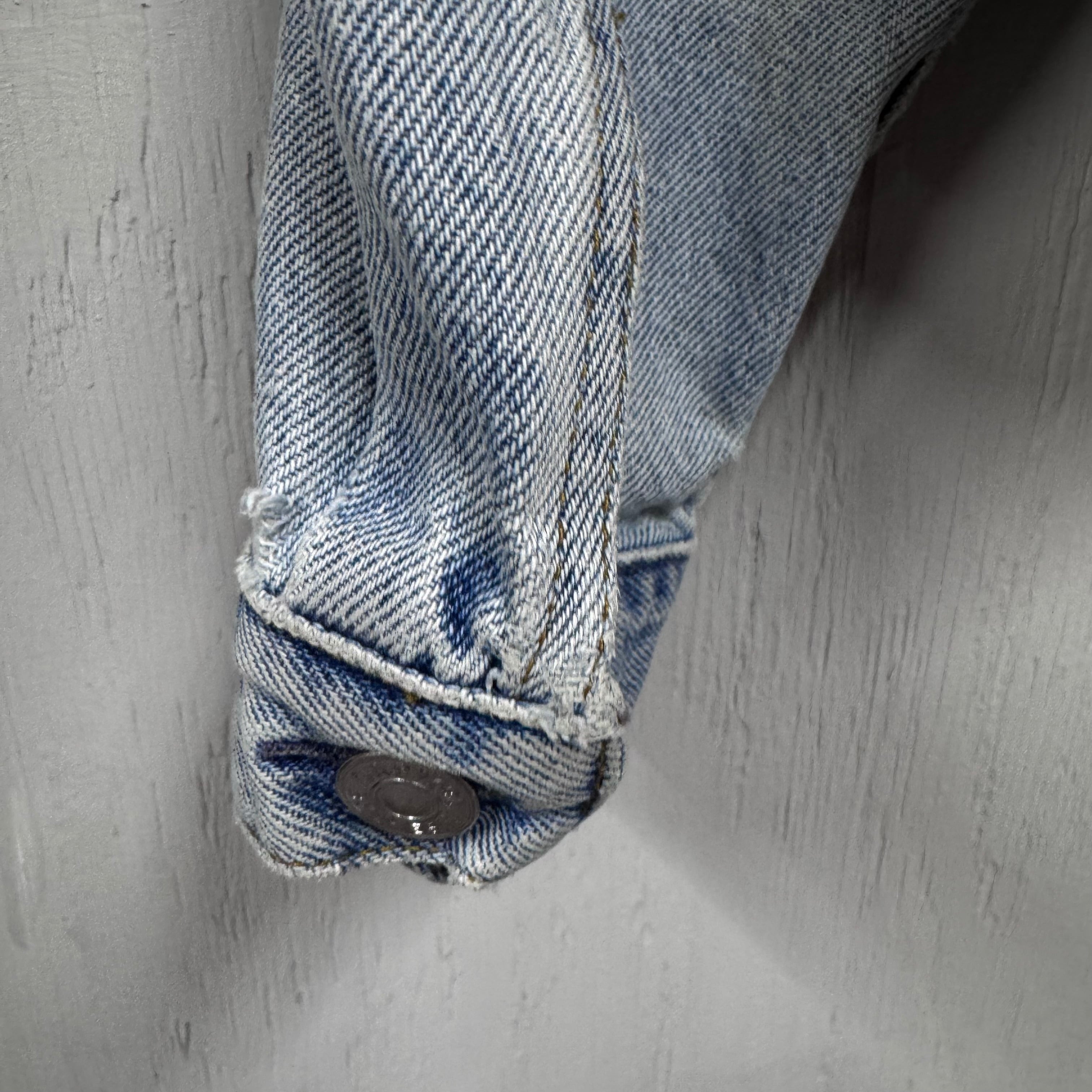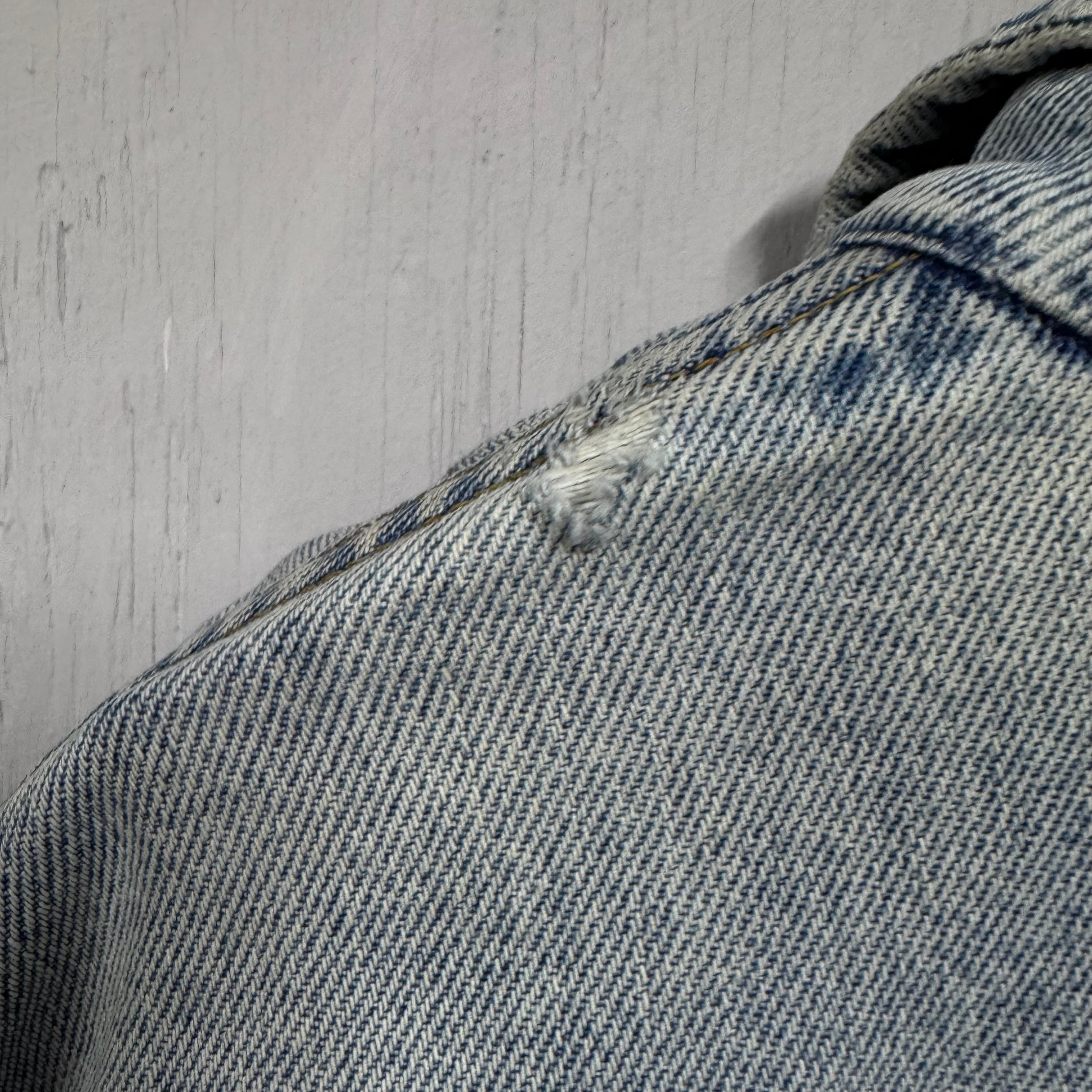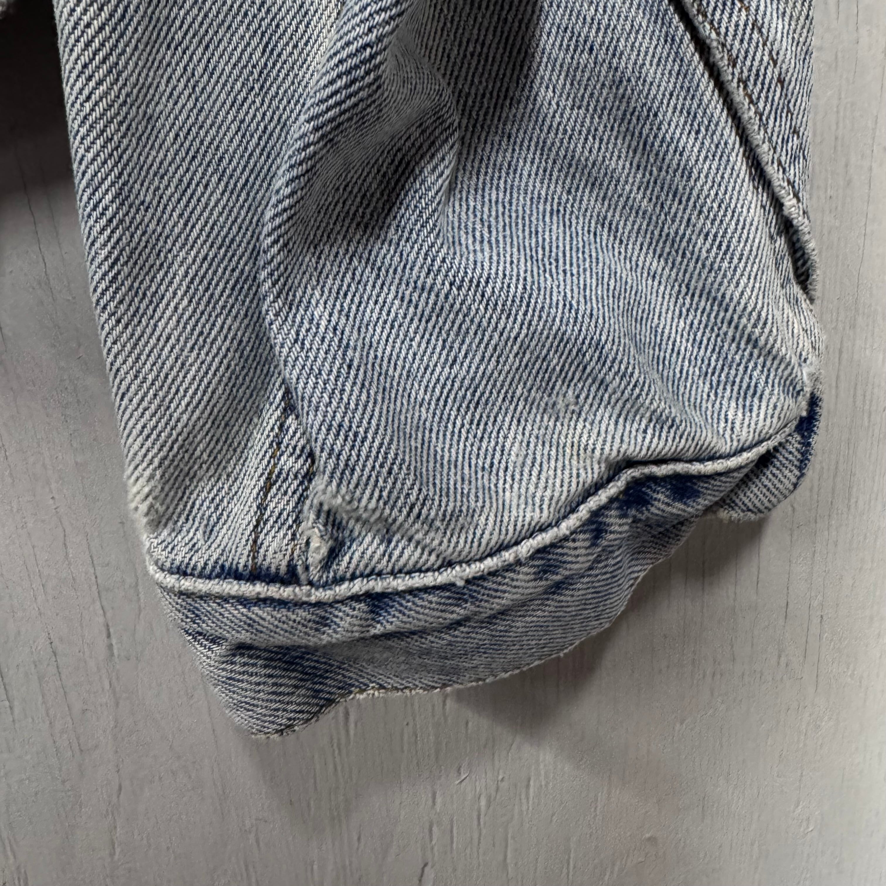 左肩、袖口にダメージがあります。ヴィンテージ古着特有の使用感が見られます。