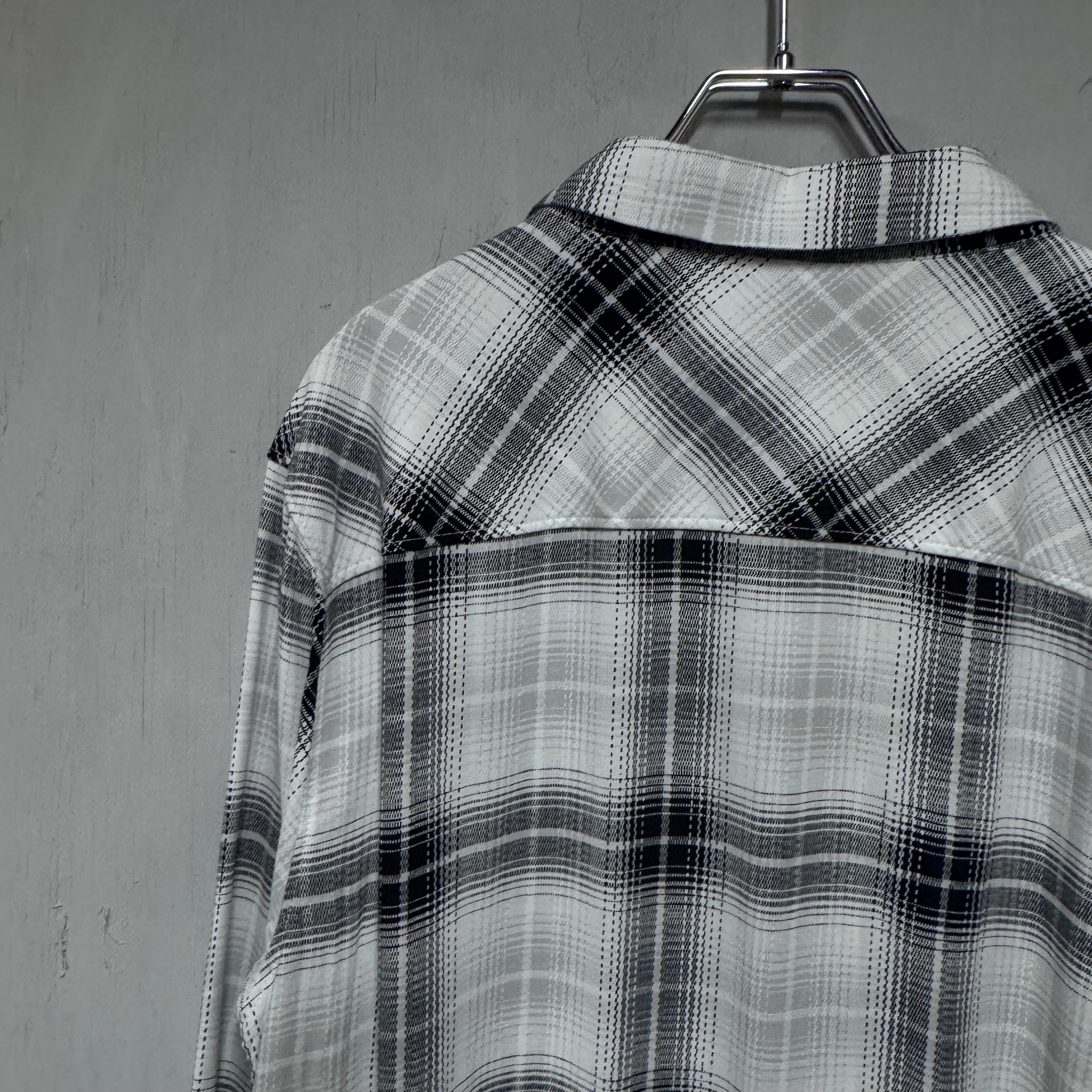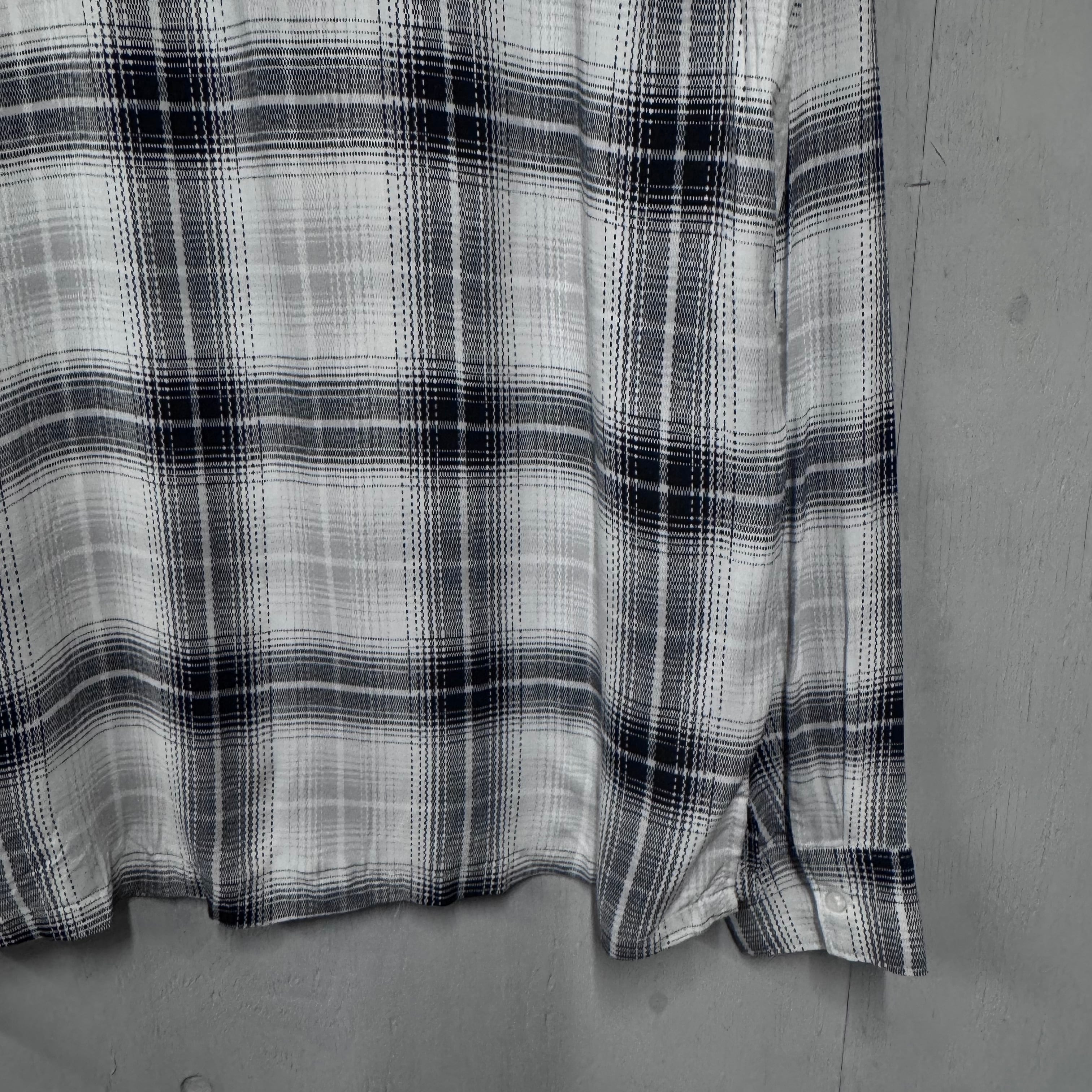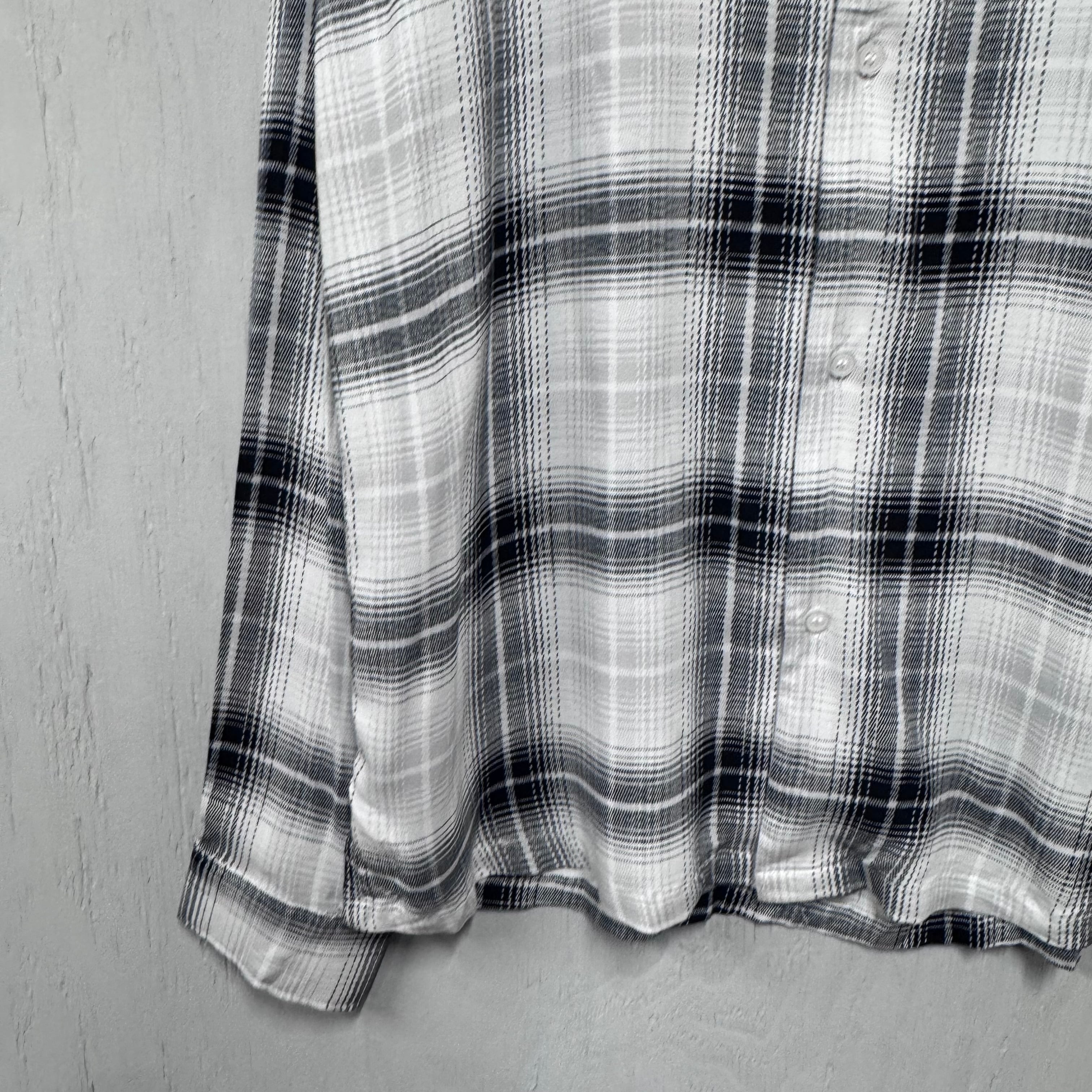 DEADSTOCK レーヨンシャツ ブラック×ホワイト オンブレチェック