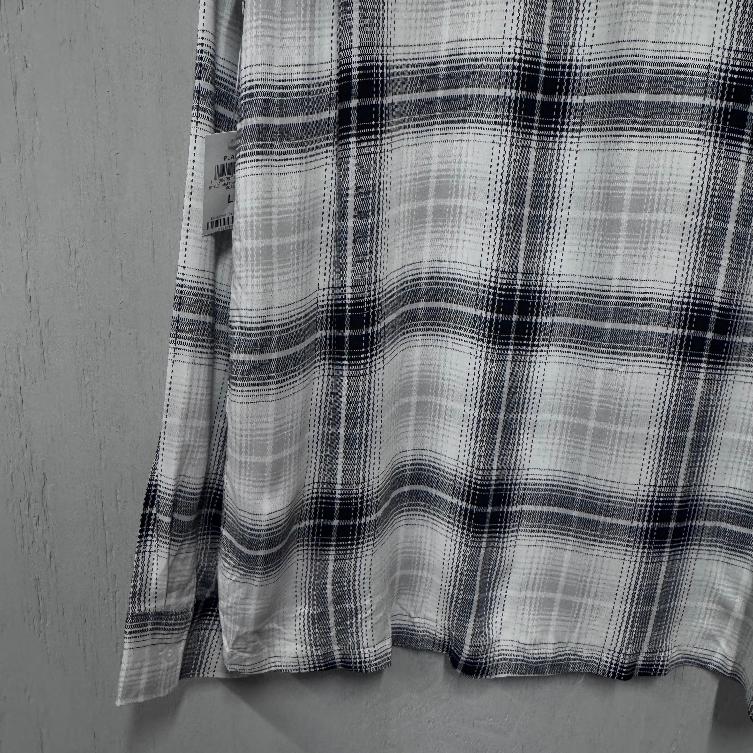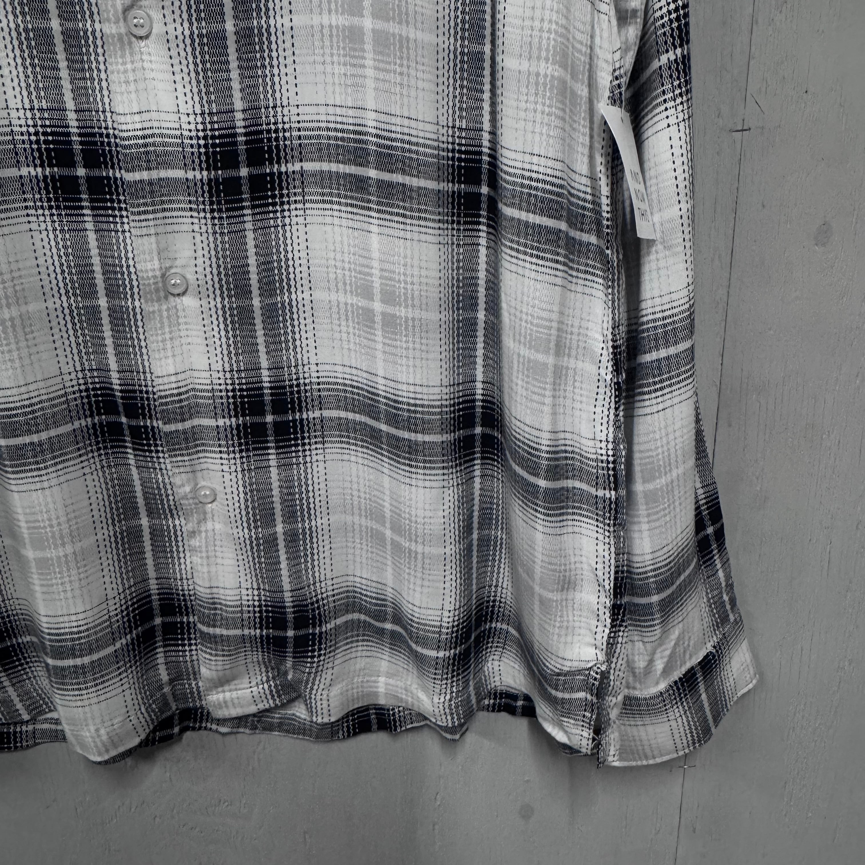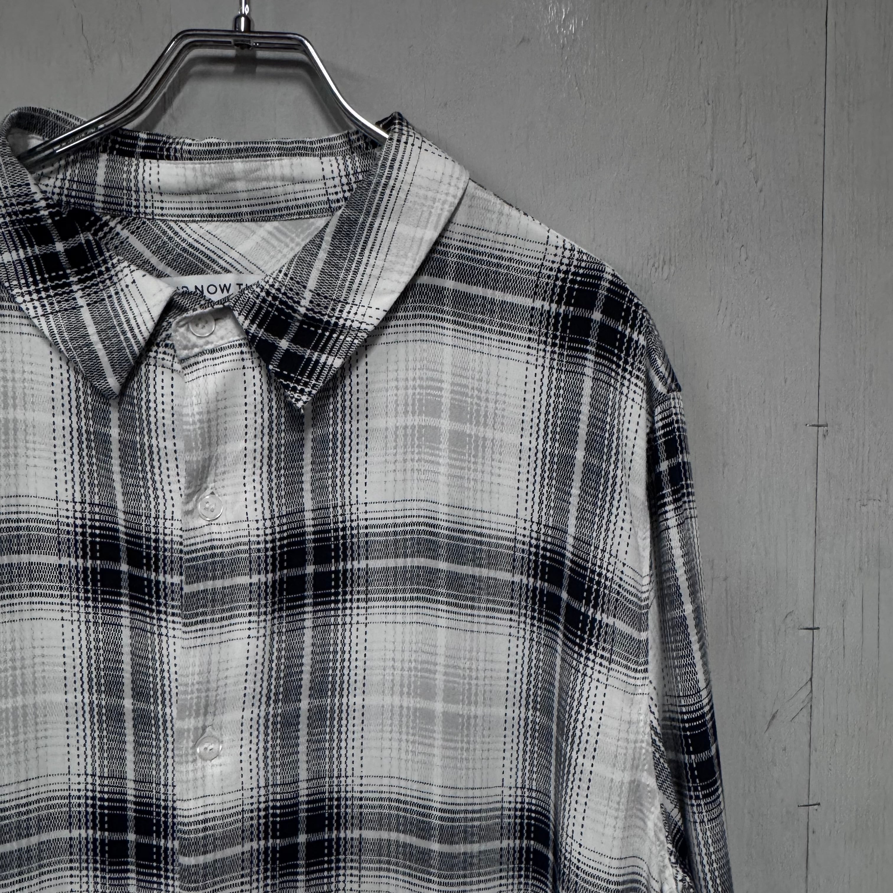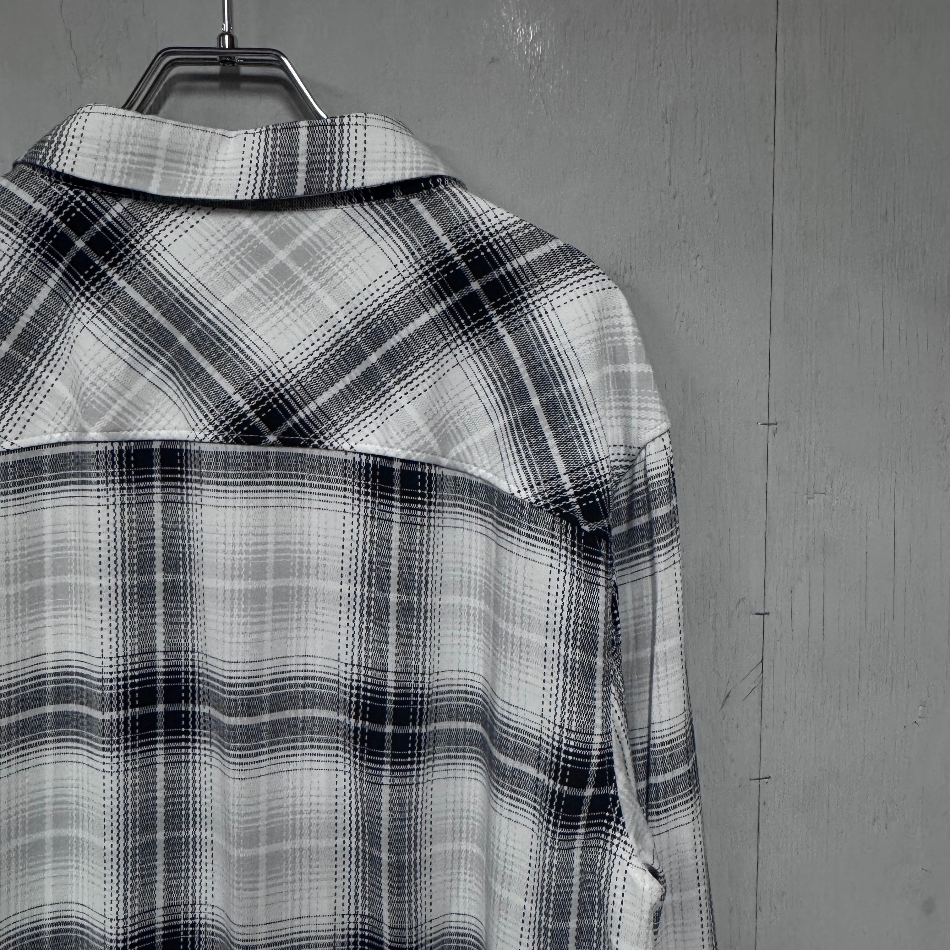 DEADSTOCK レーヨンシャツ ブラック×ホワイト オンブレチェック