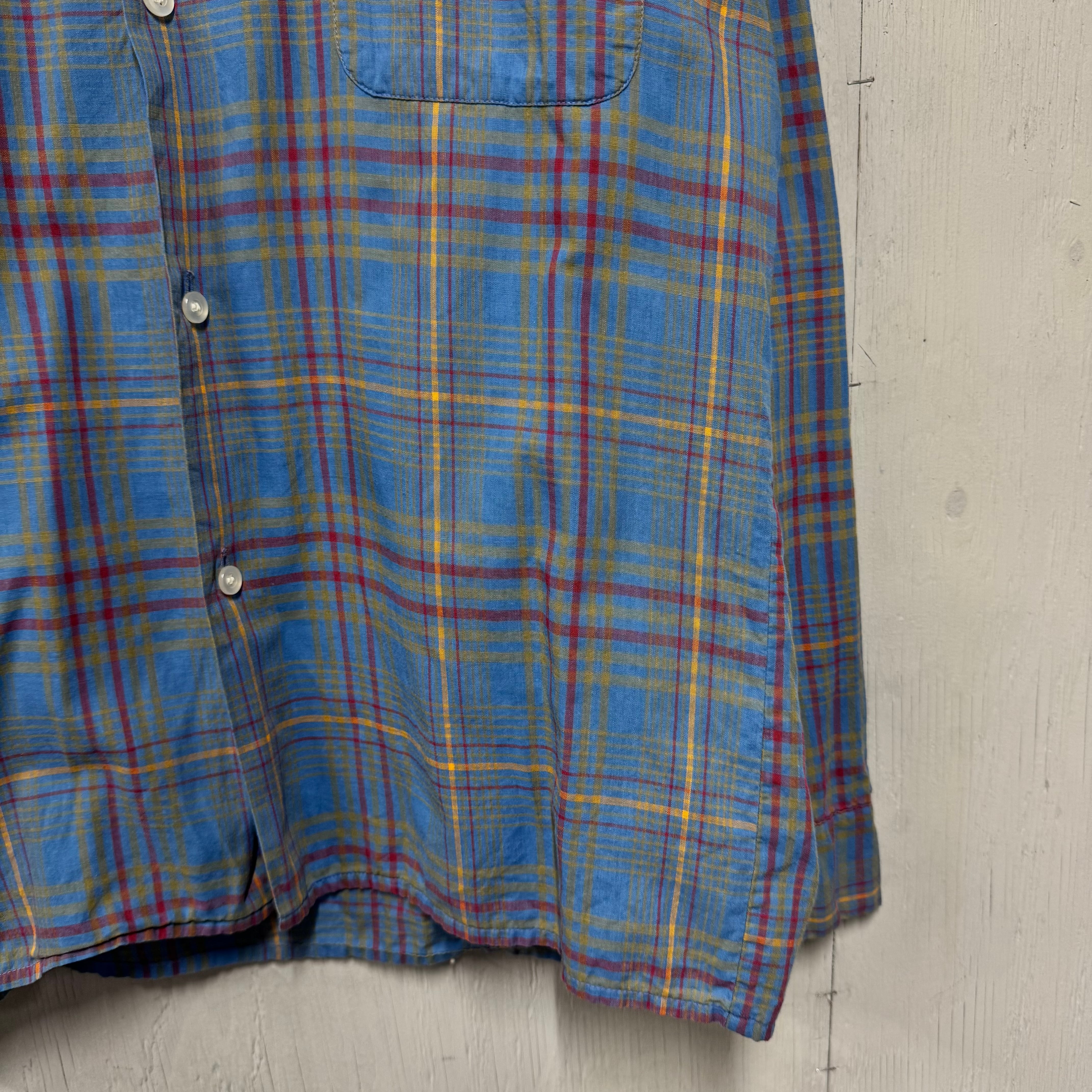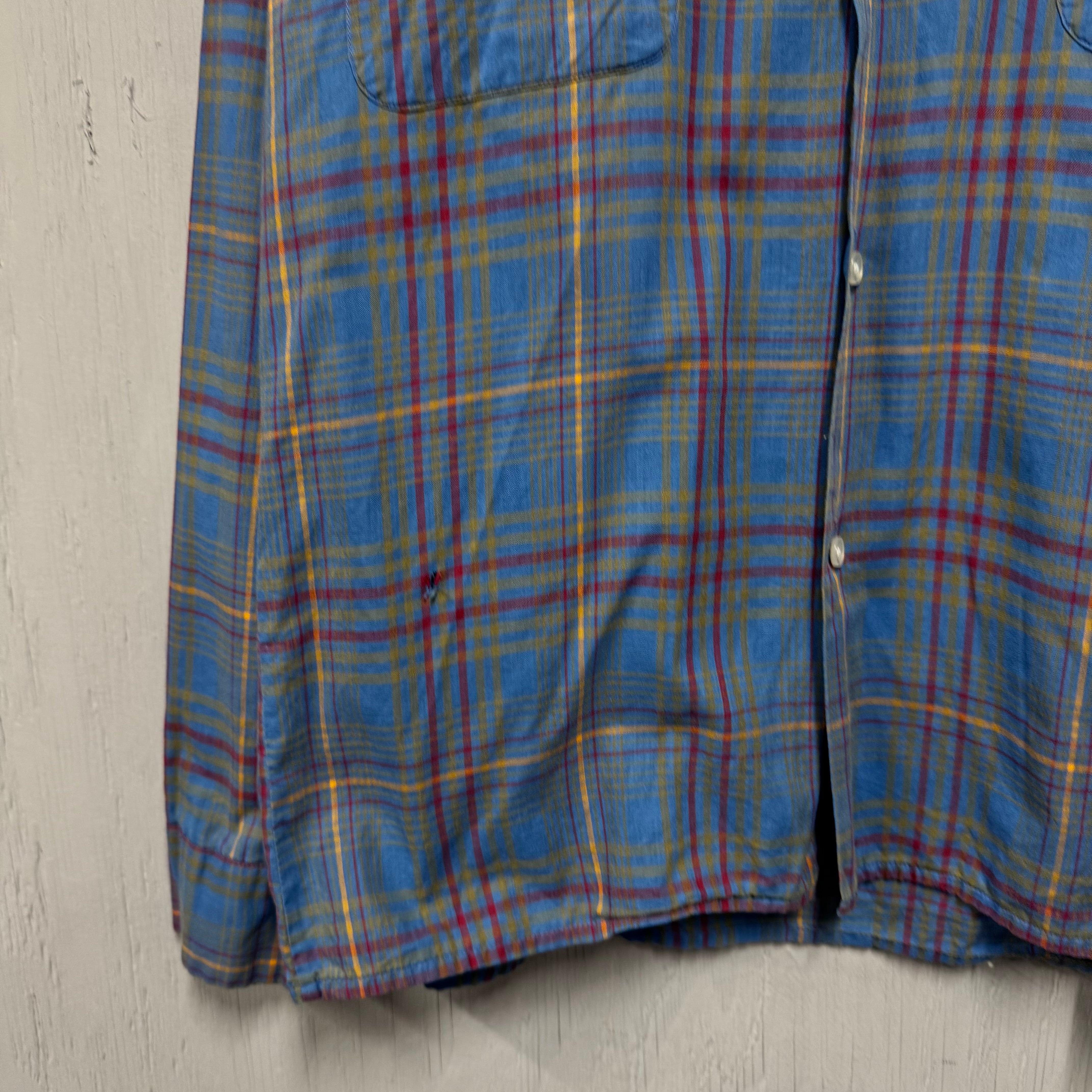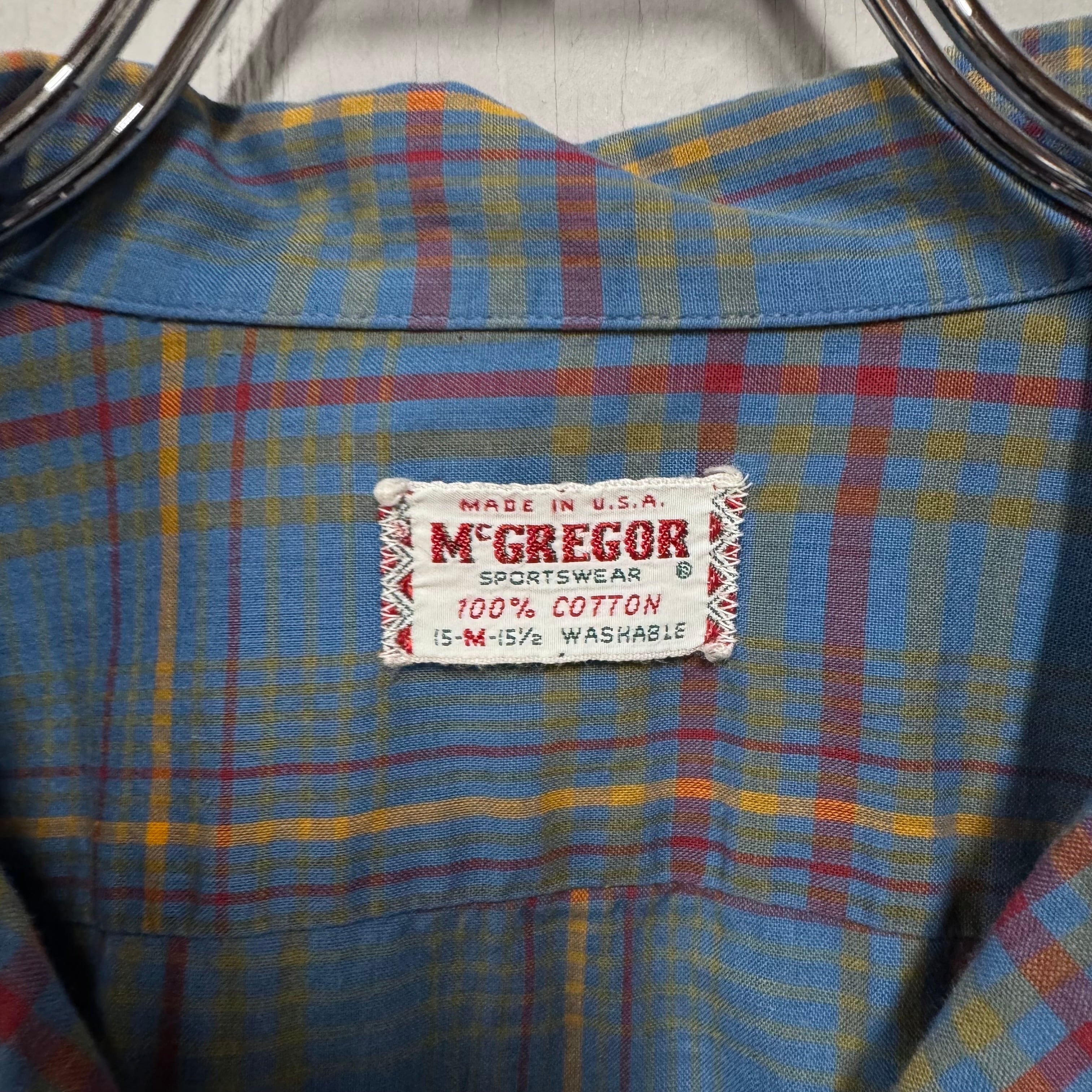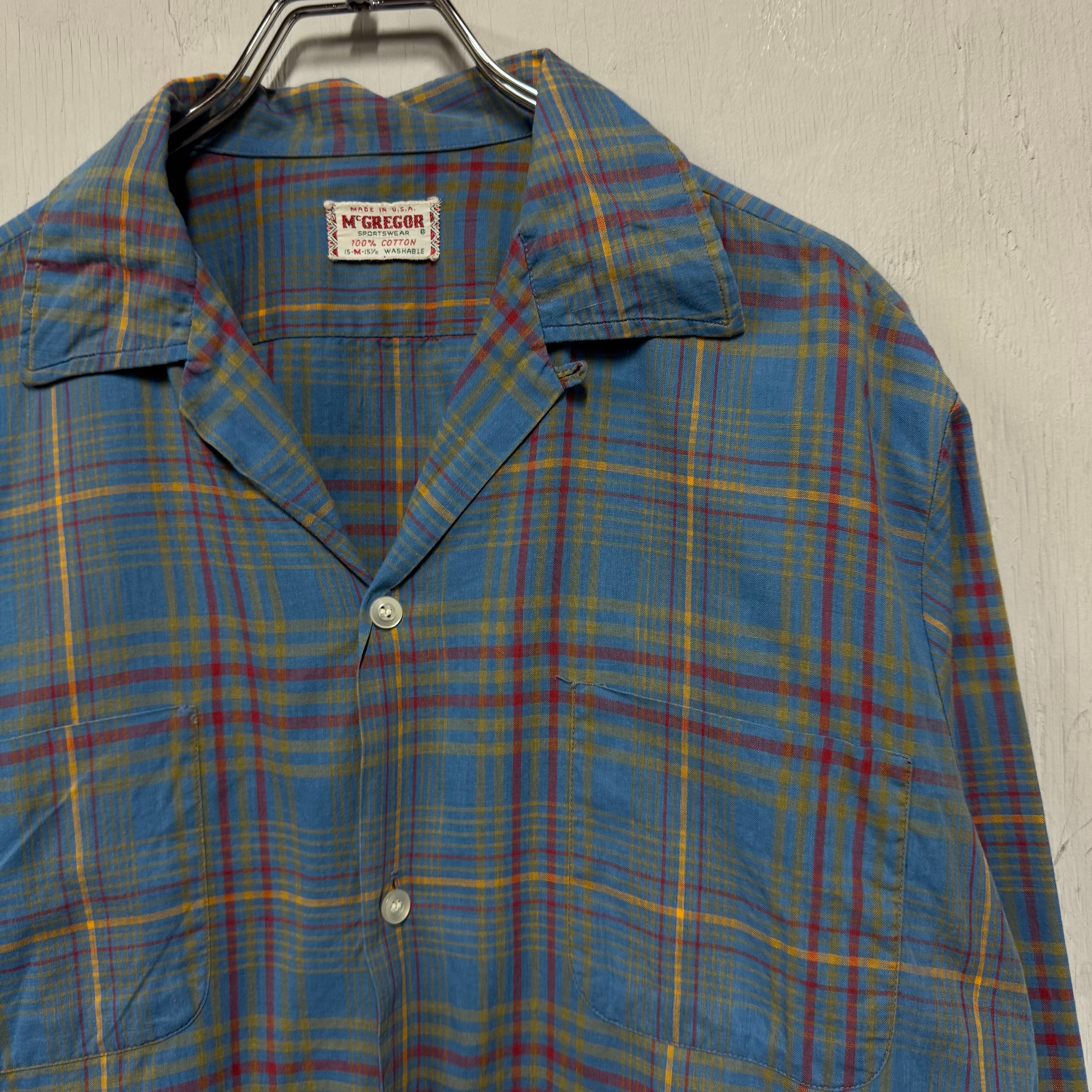 60s McGregor コットンループシャツ 水色 チェック M