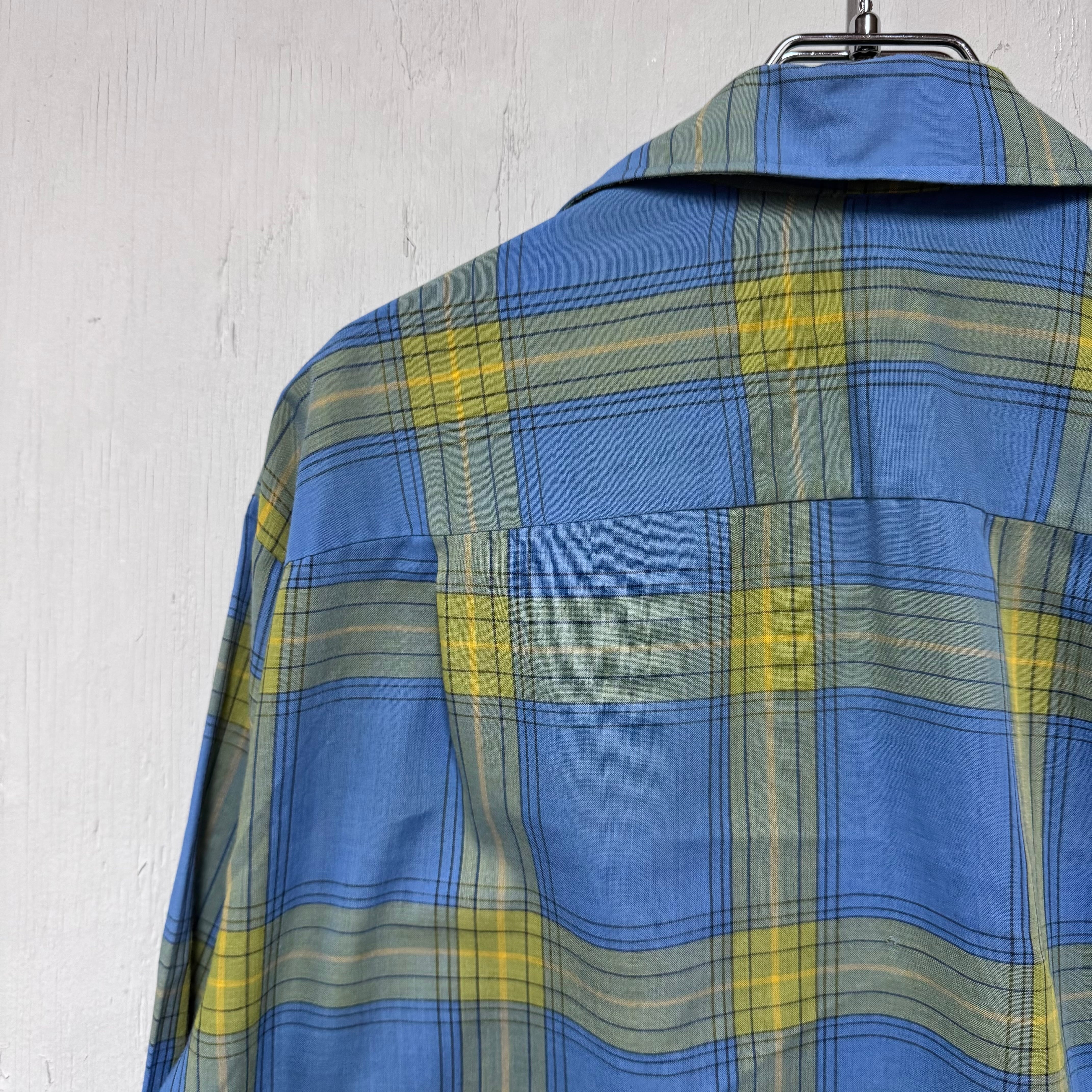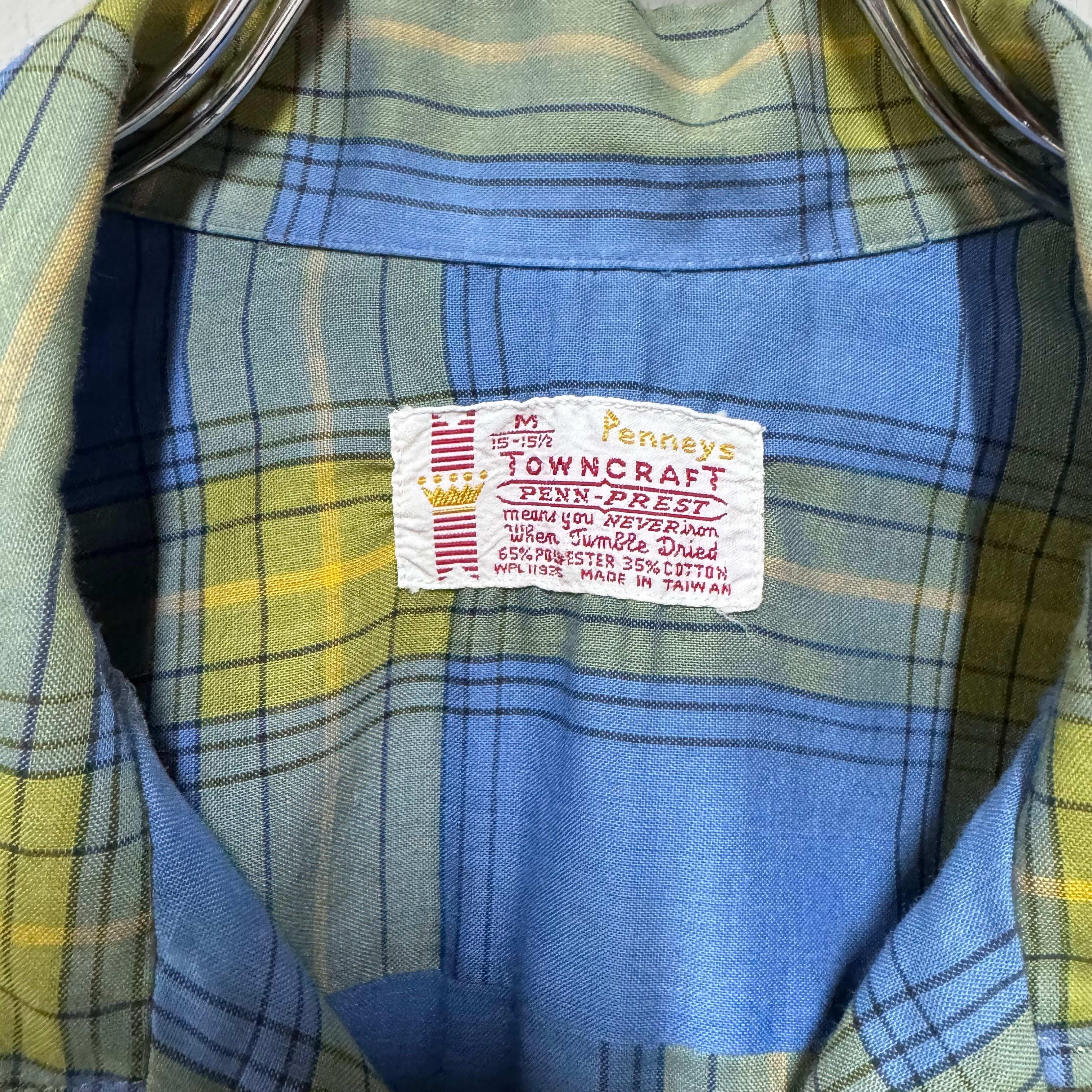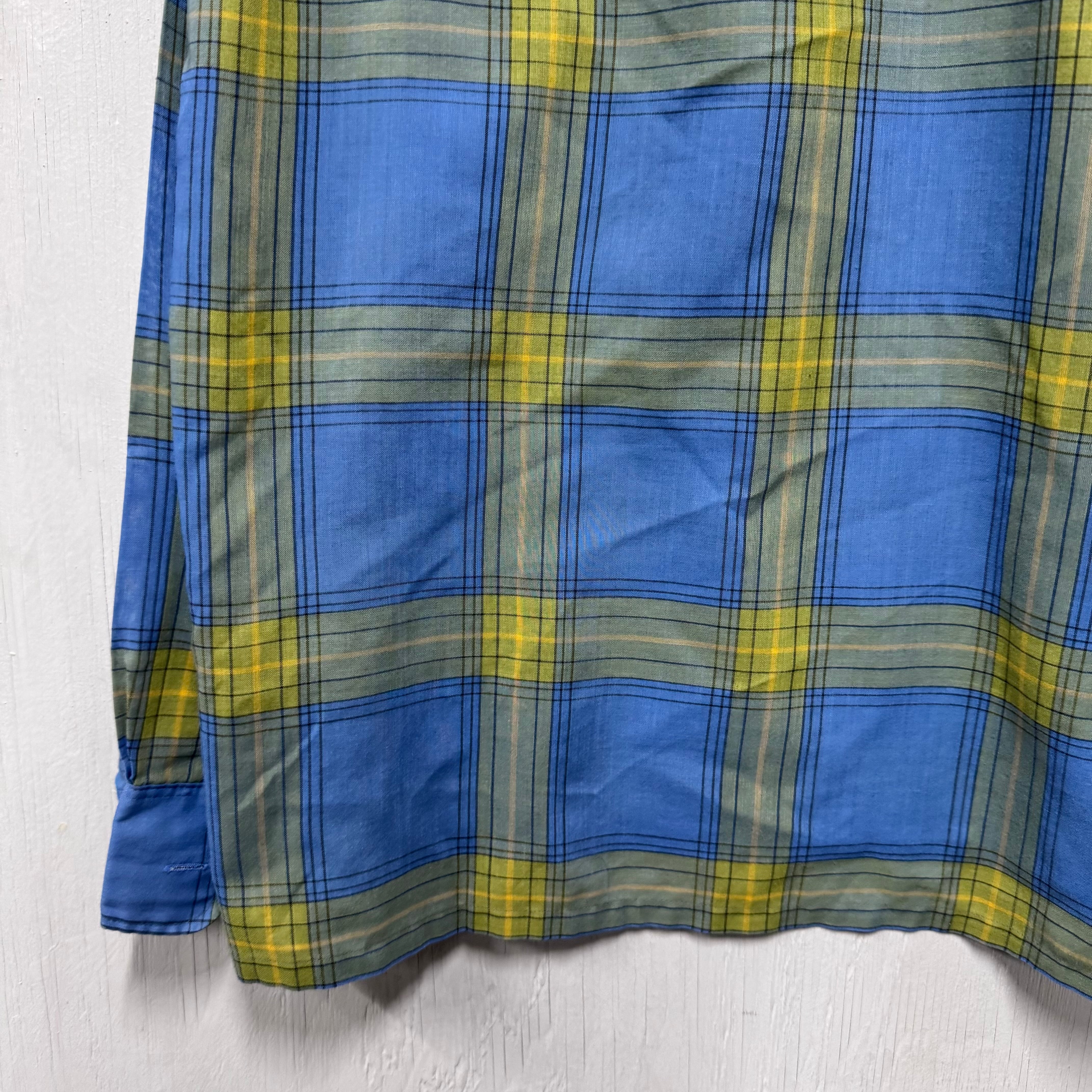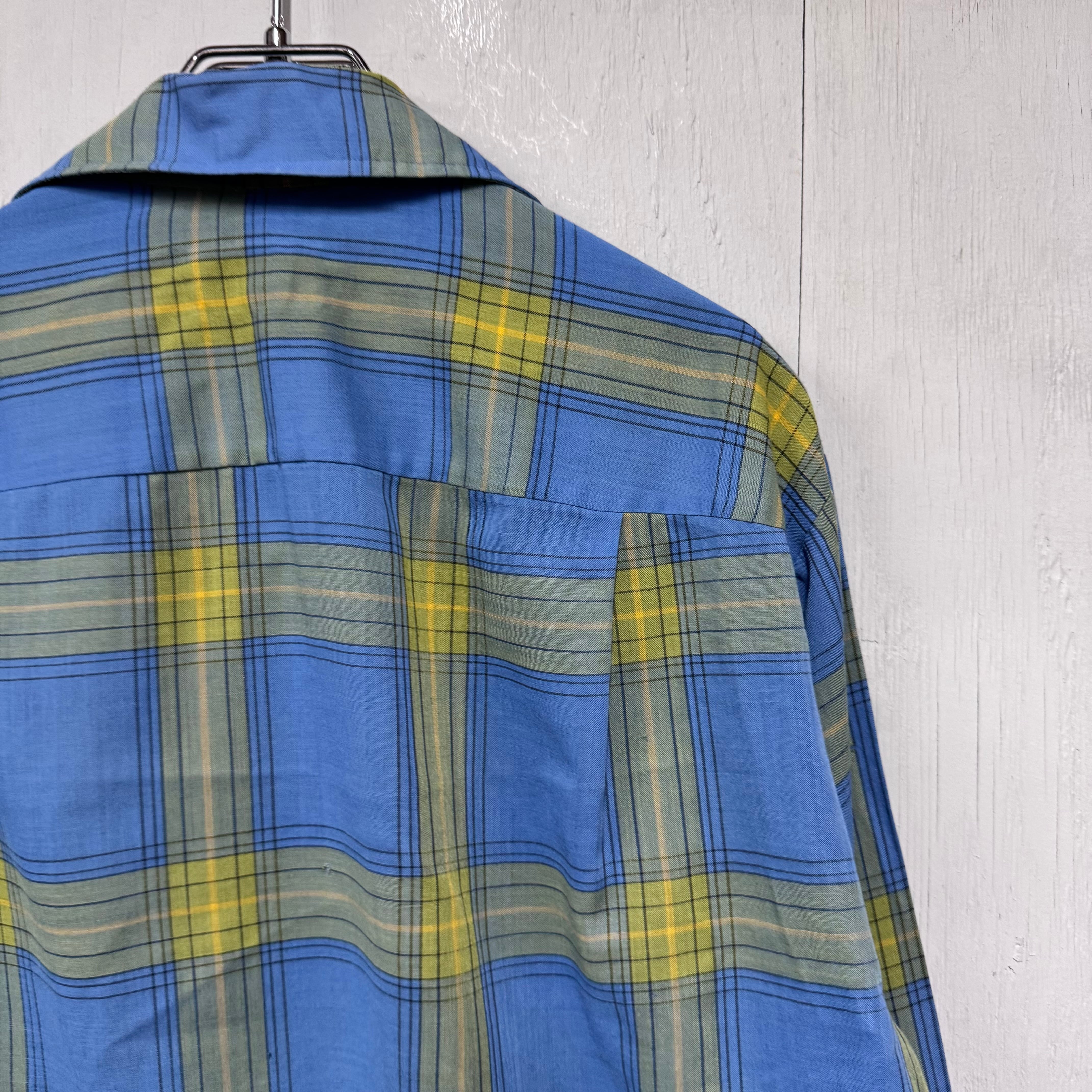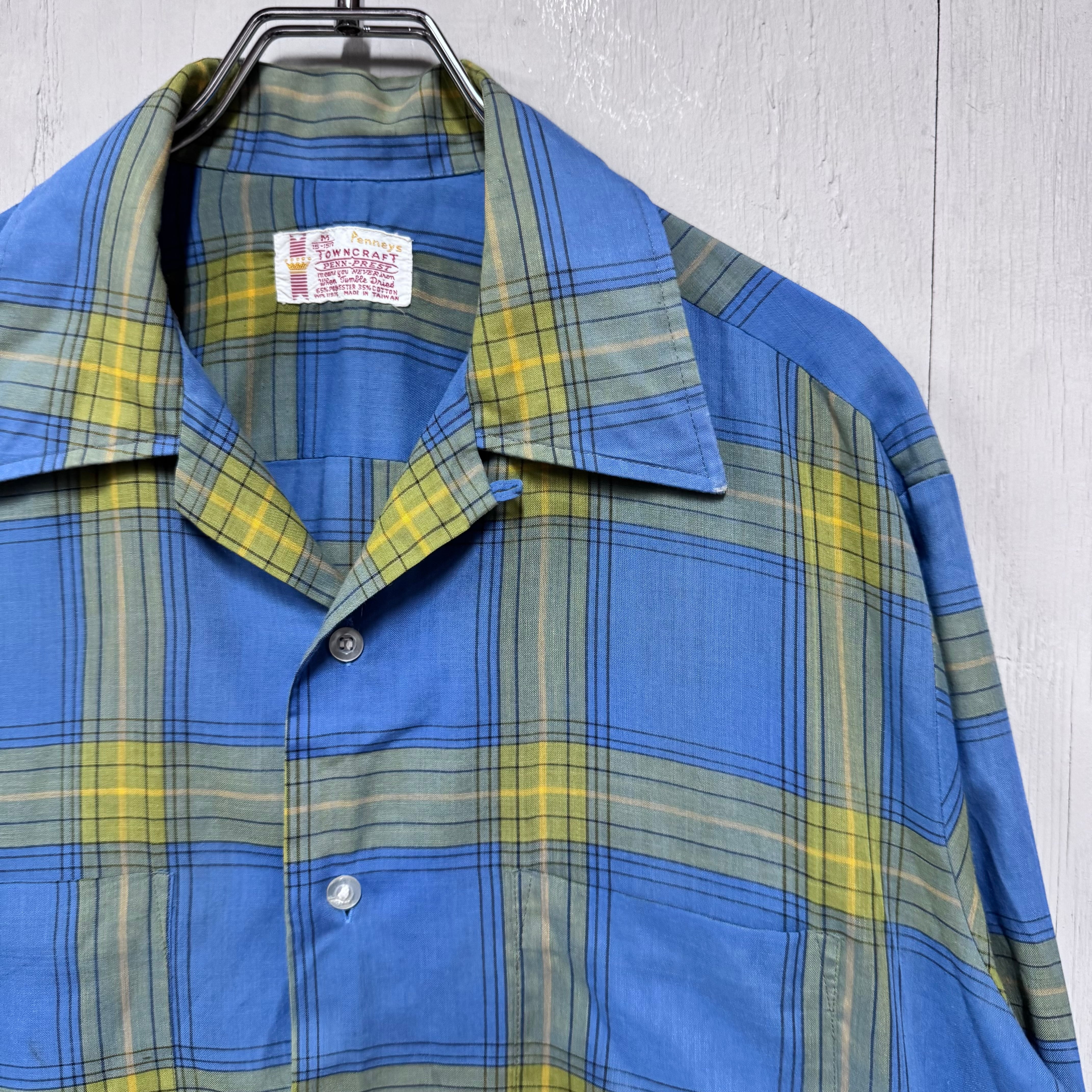 70s Town Craft ループシャツ チェック ボックスシルエット 青 M