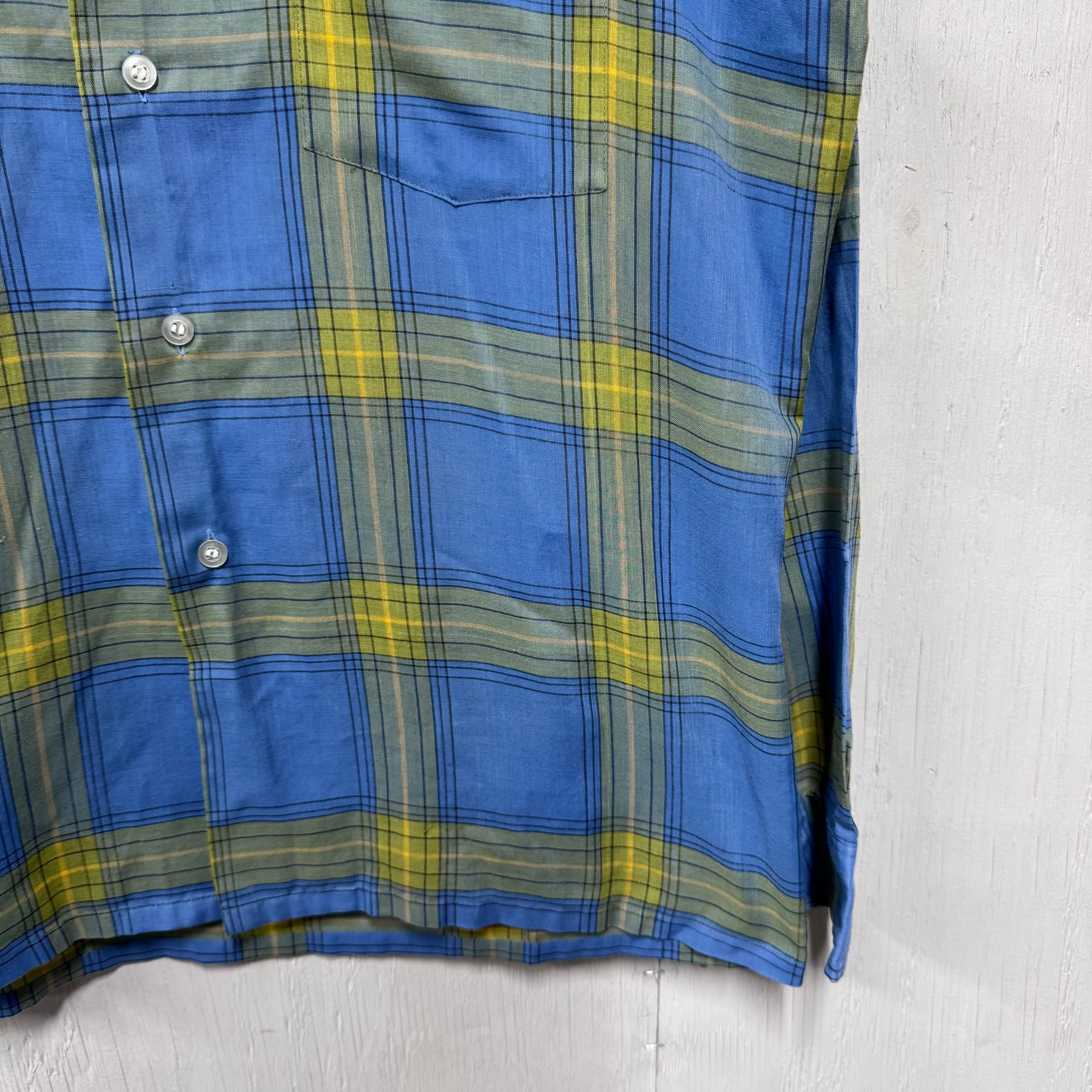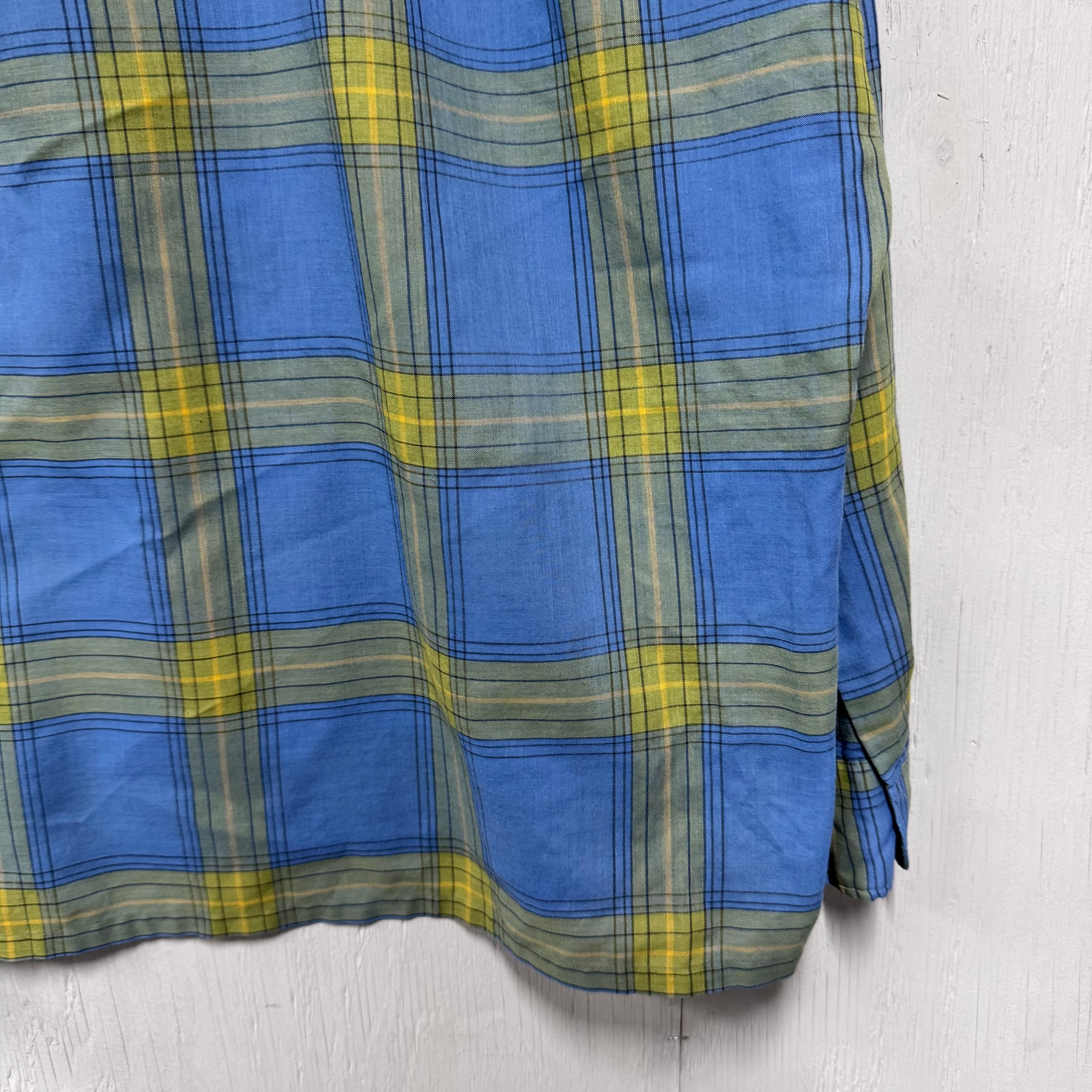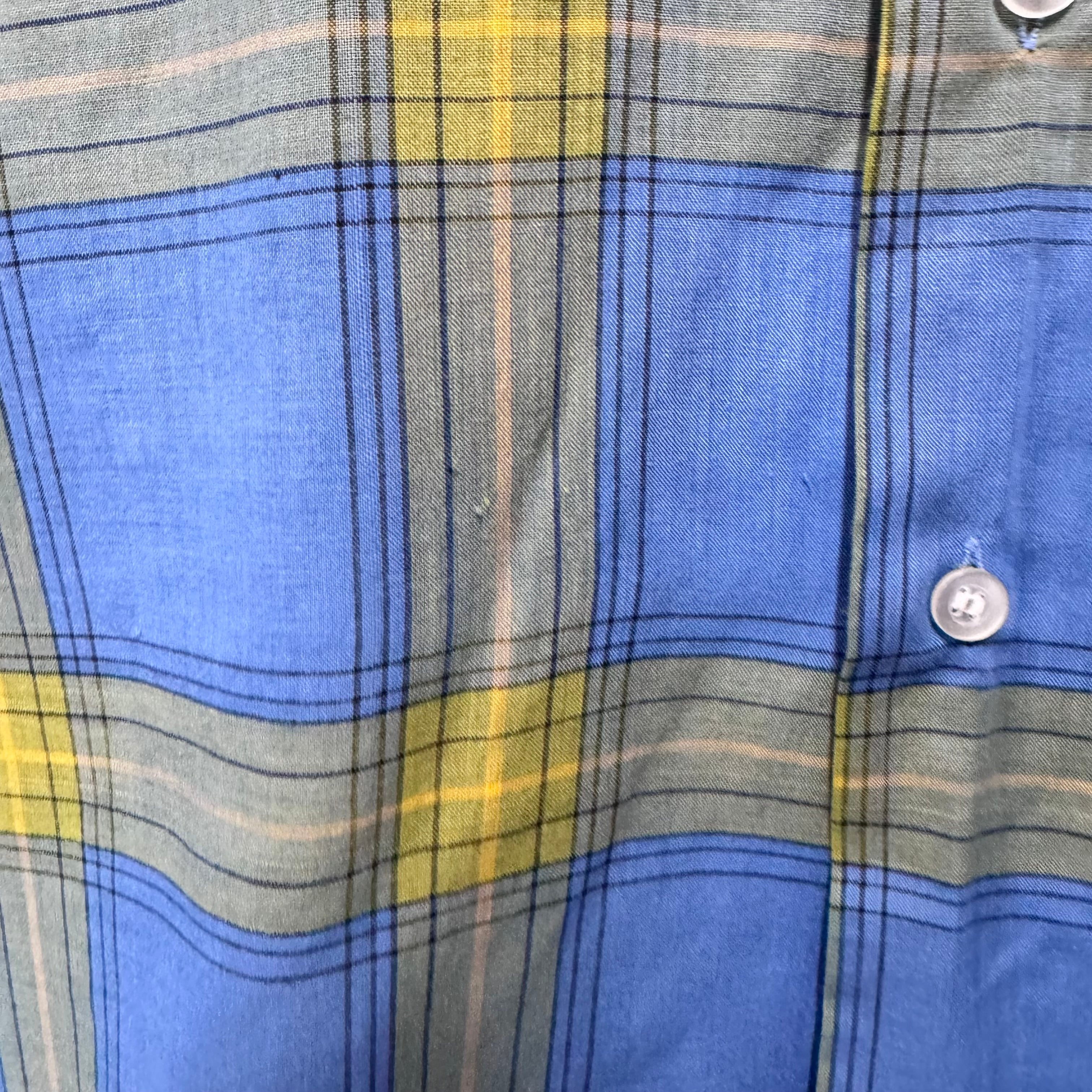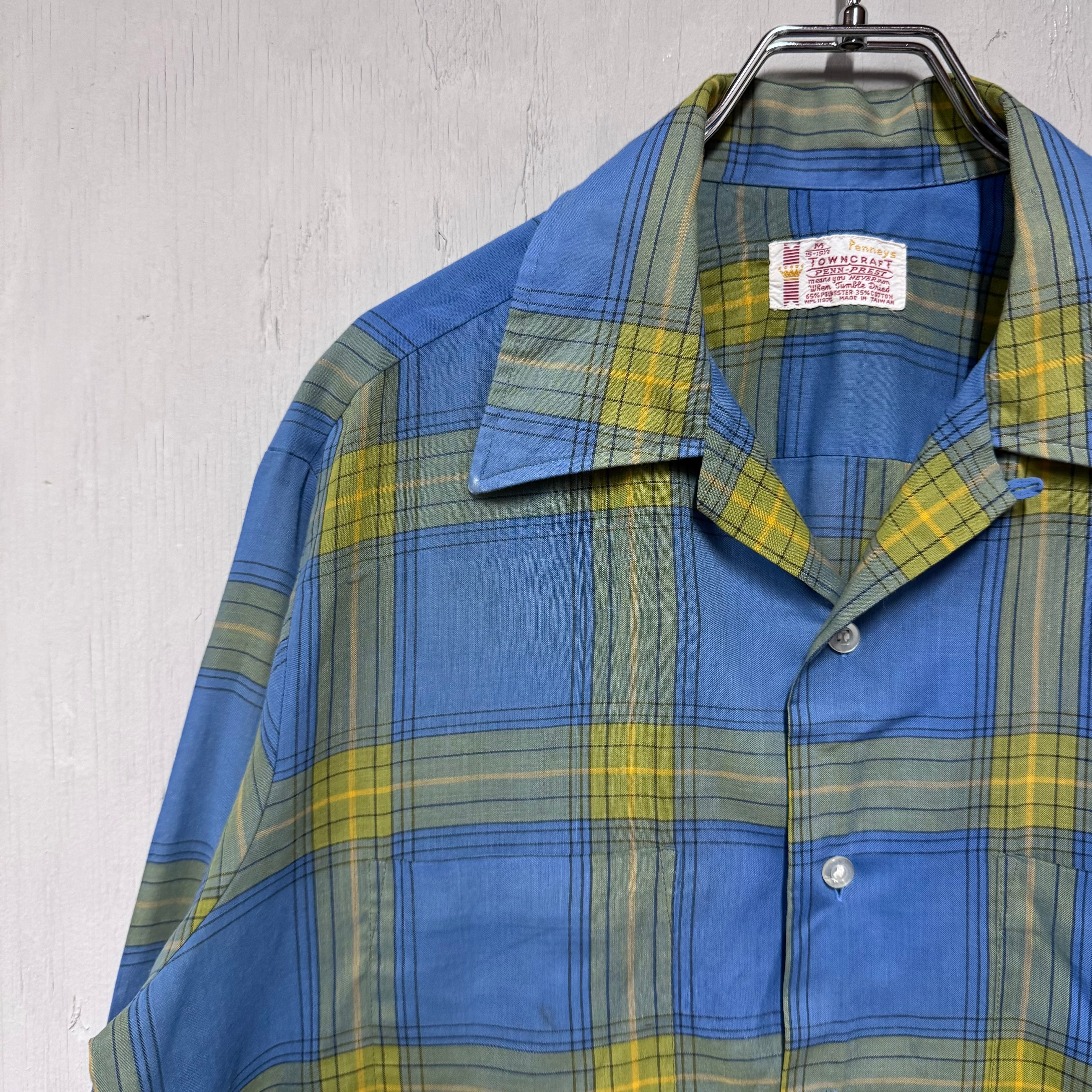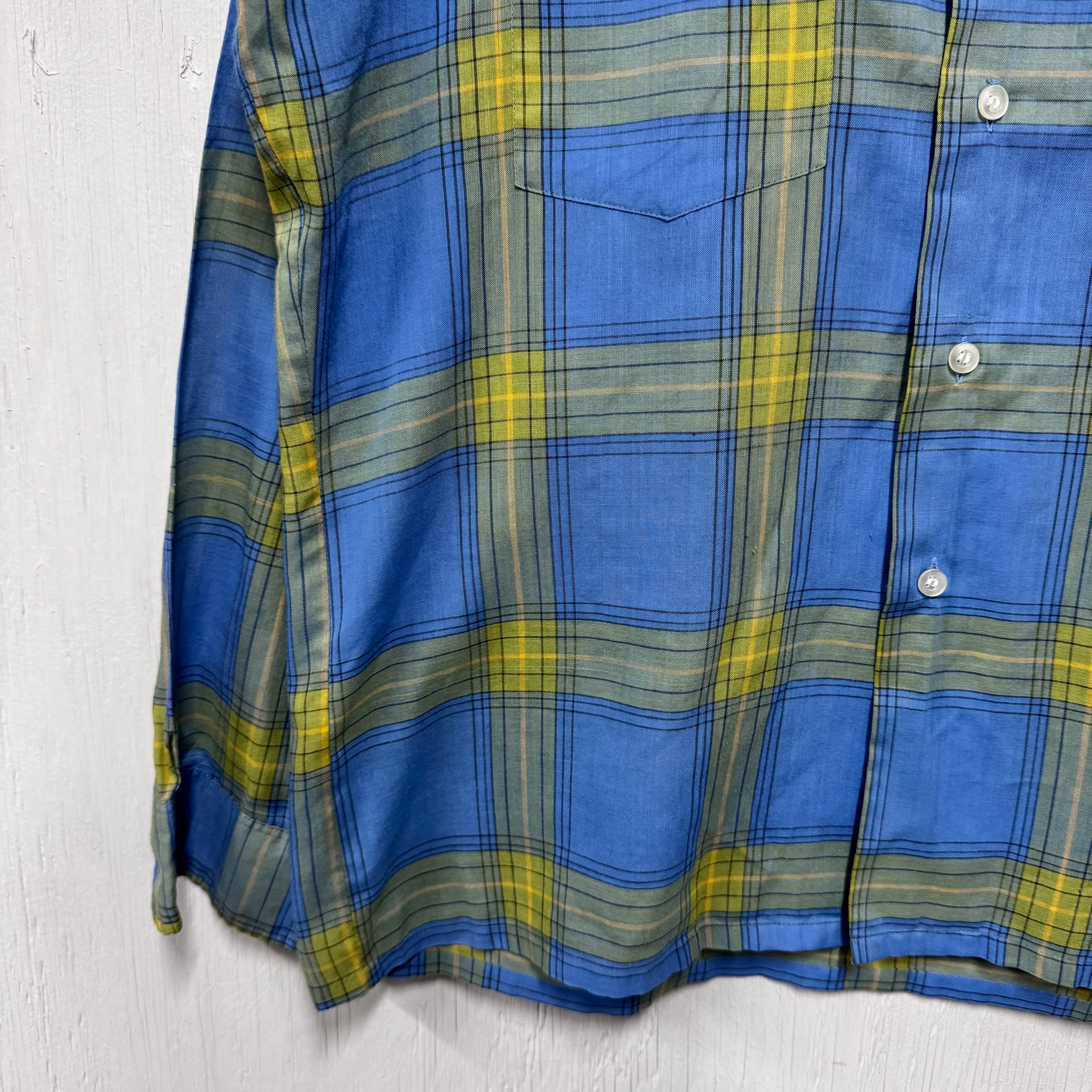 70s Town Craft ループシャツ チェック ボックスシルエット 青 M