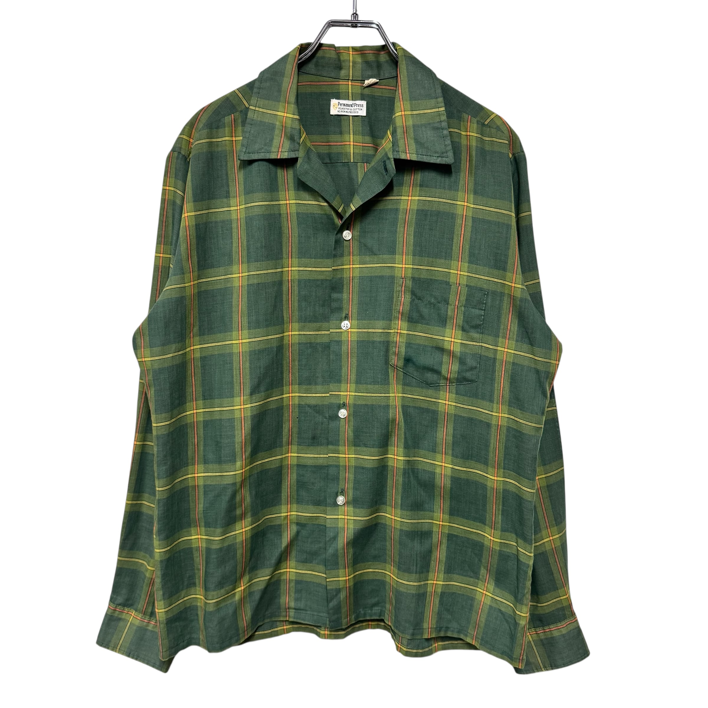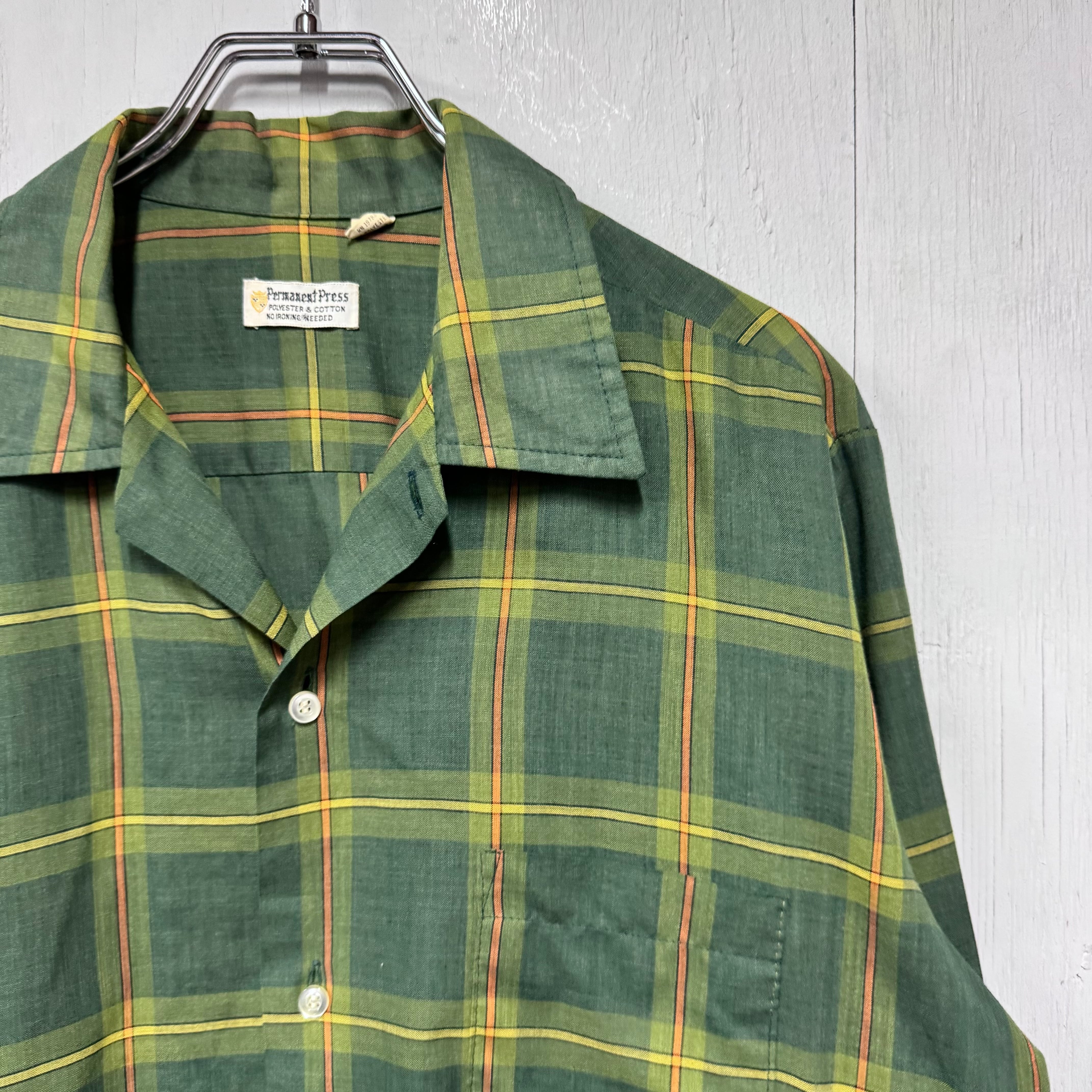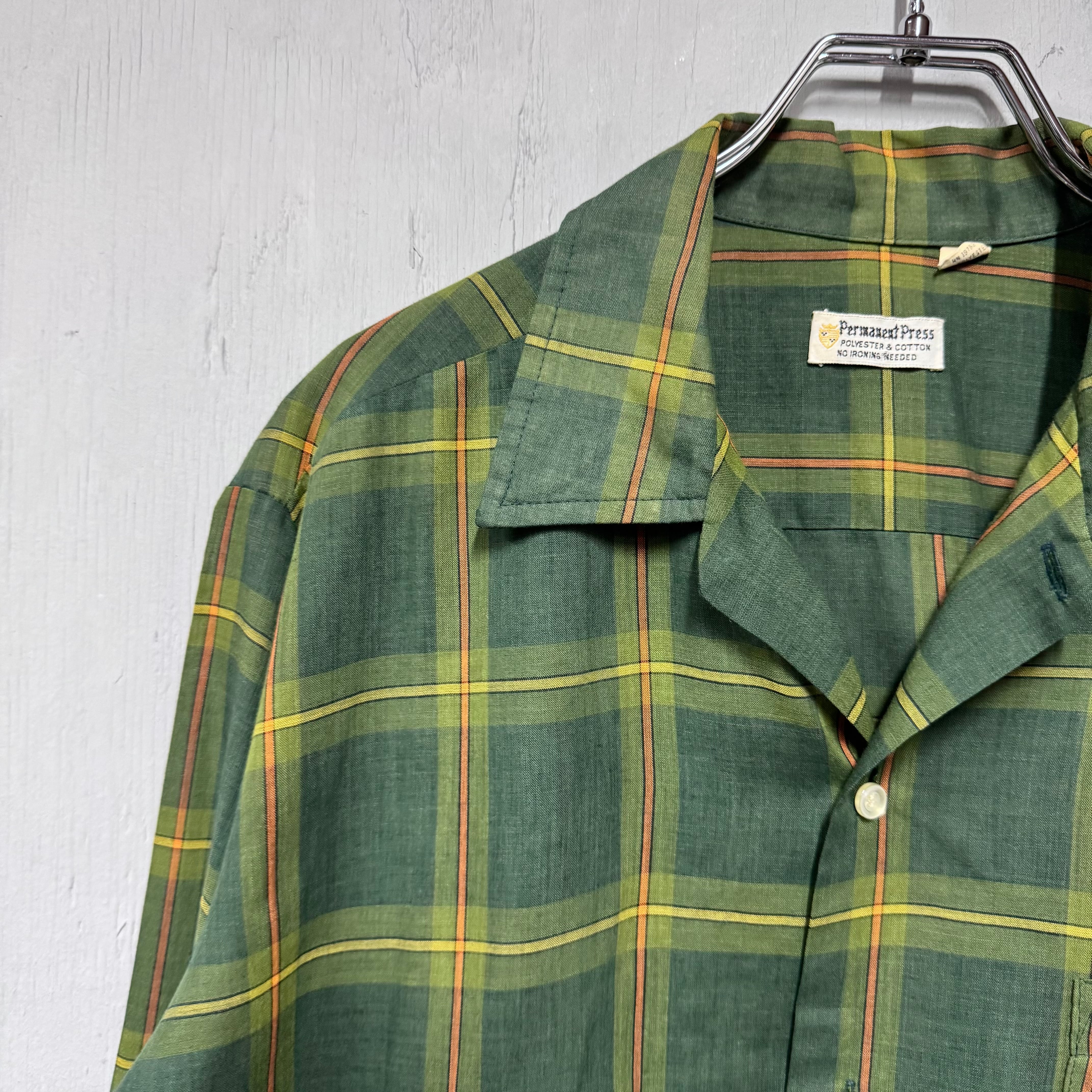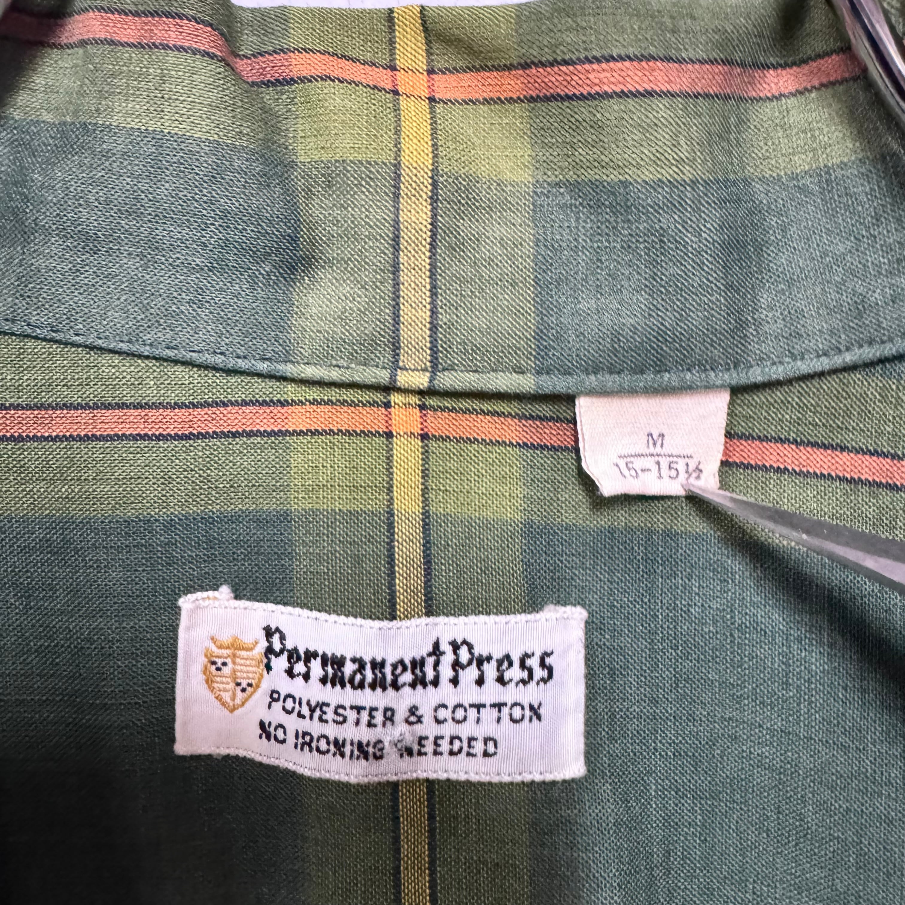 70s PERMANENT PRESS ループシャツ チェック 緑 M