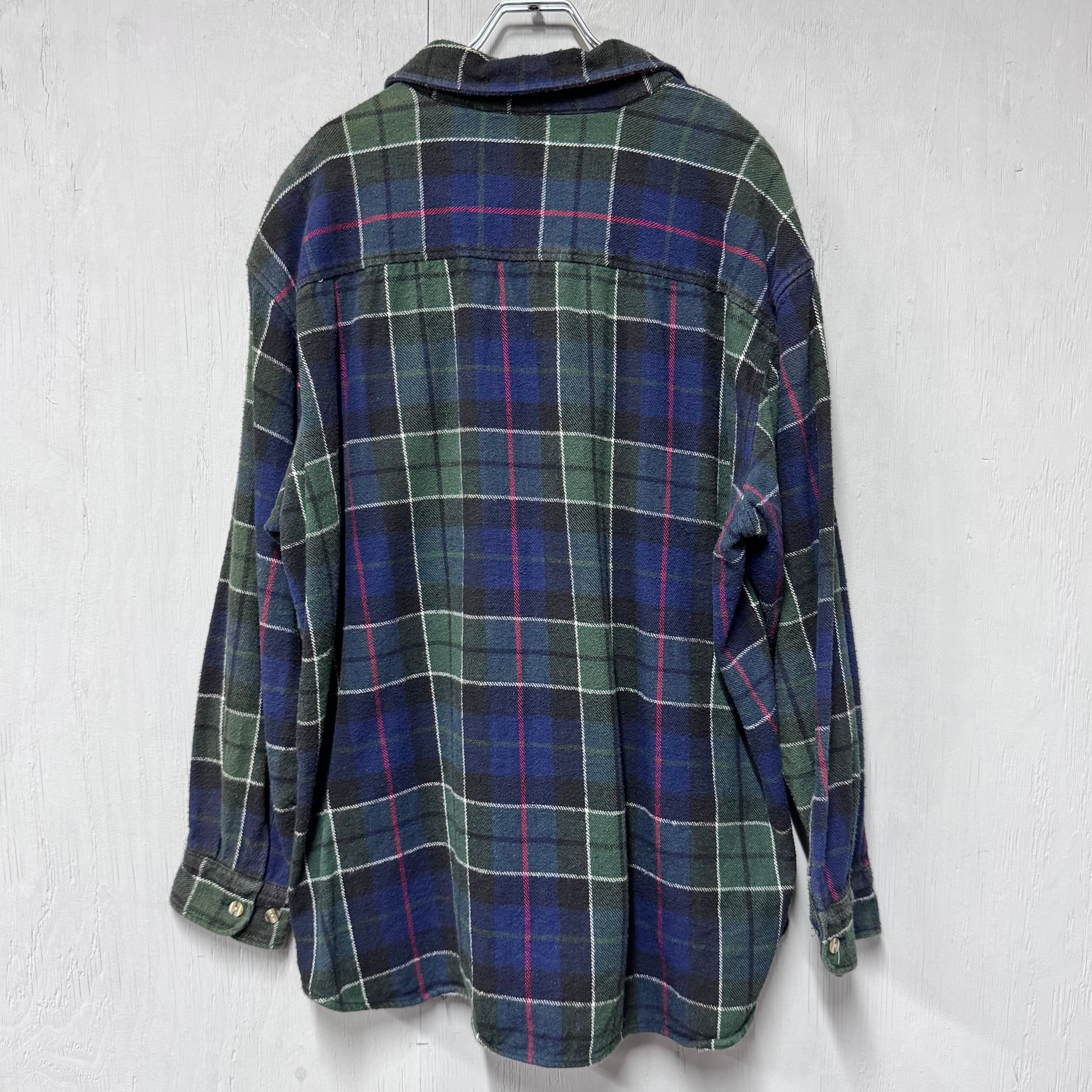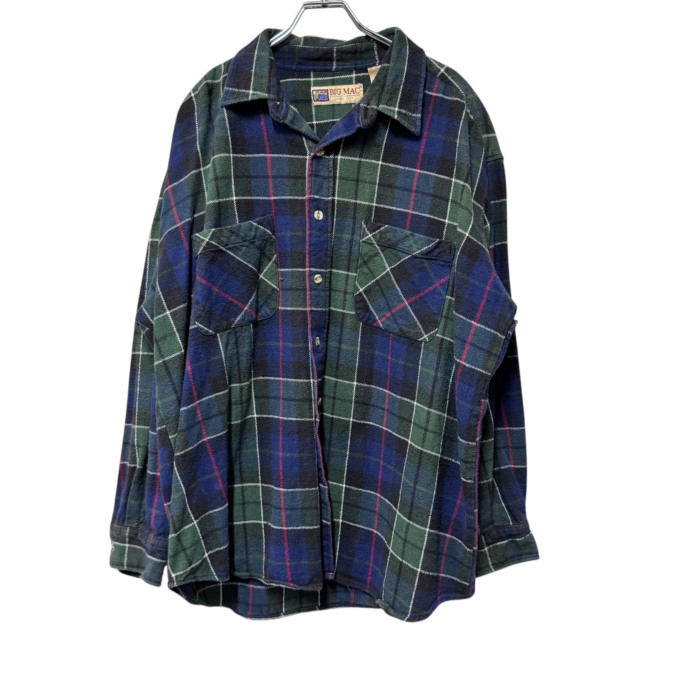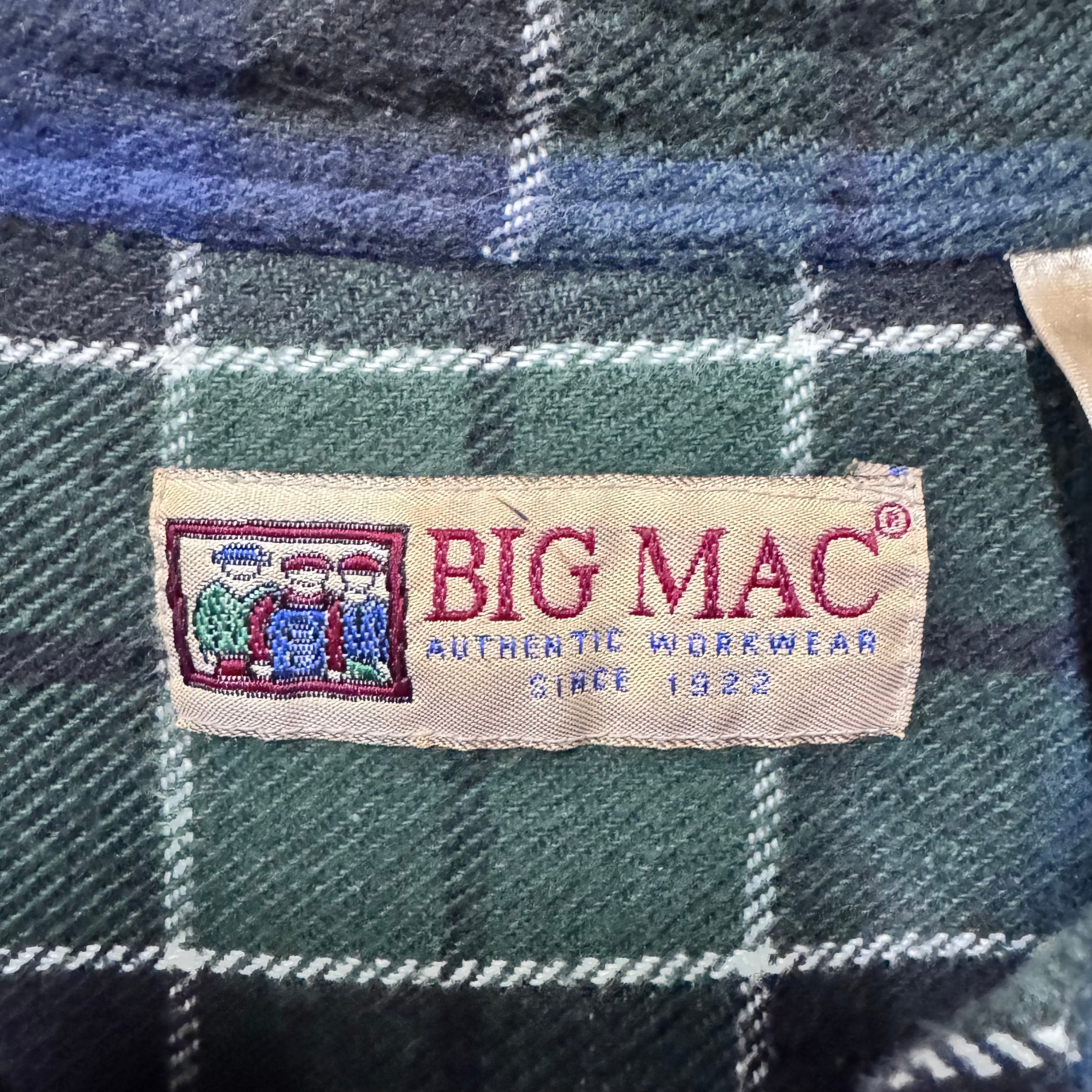 90s BIGMAC ヘビーフランネルシャツ グリーン チェック XL