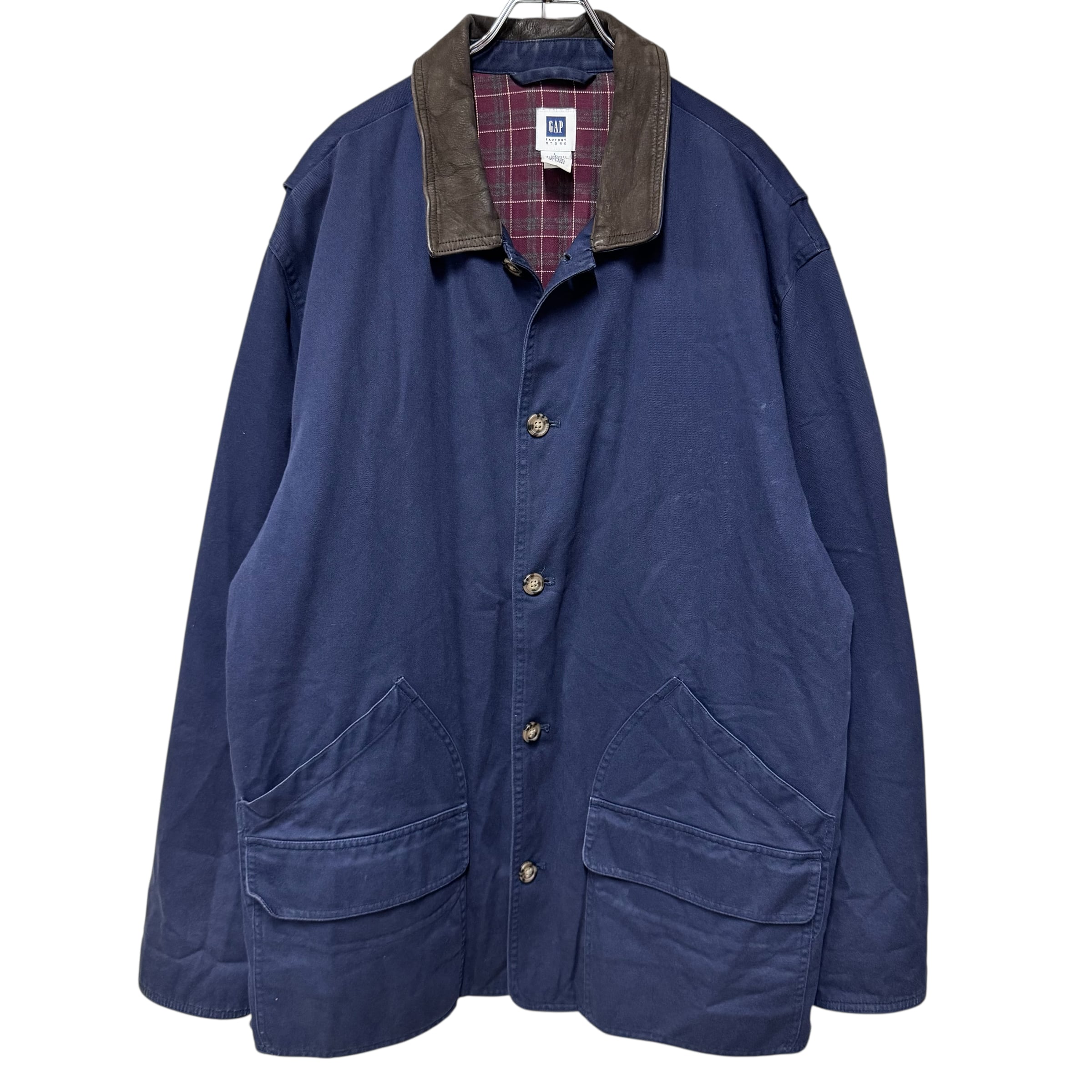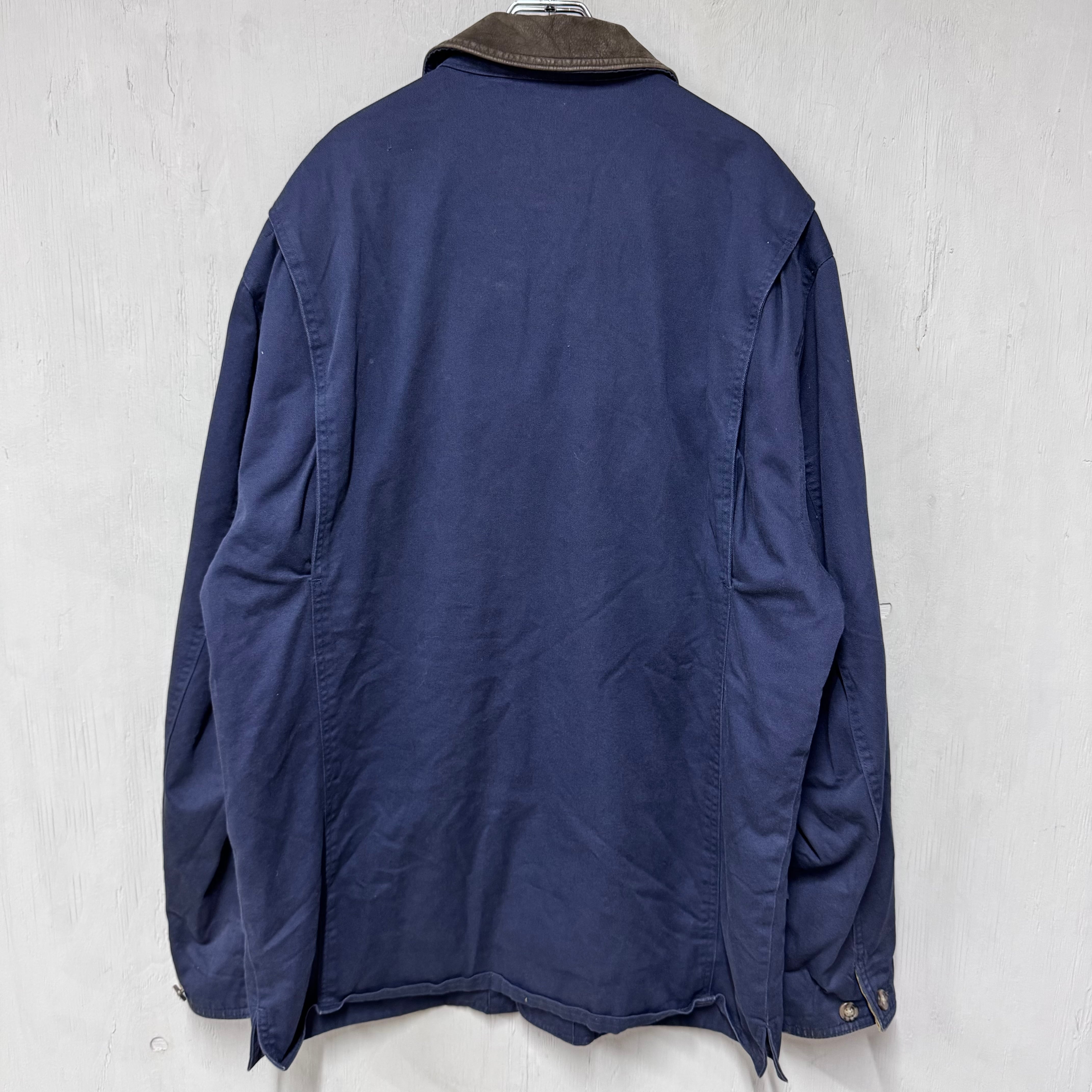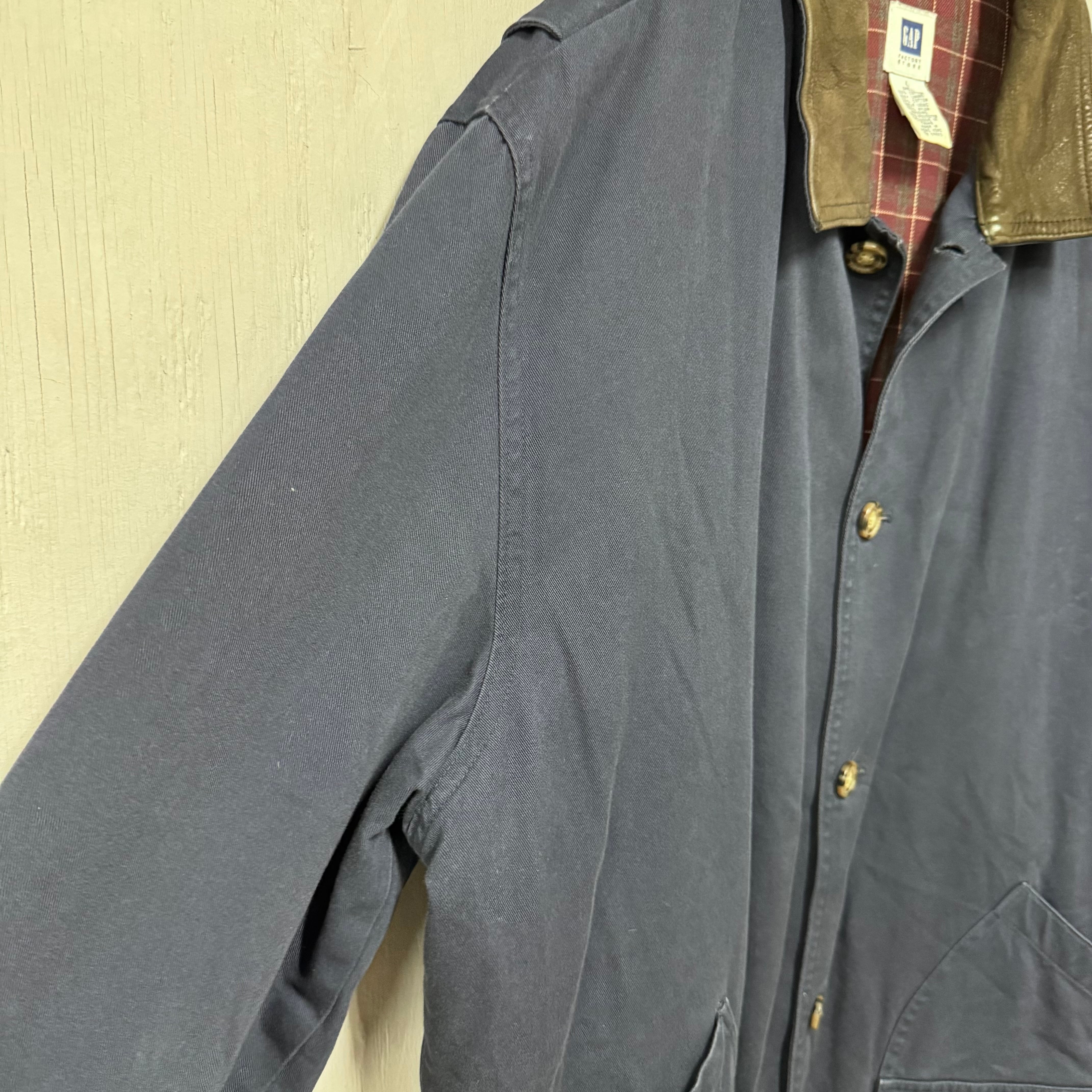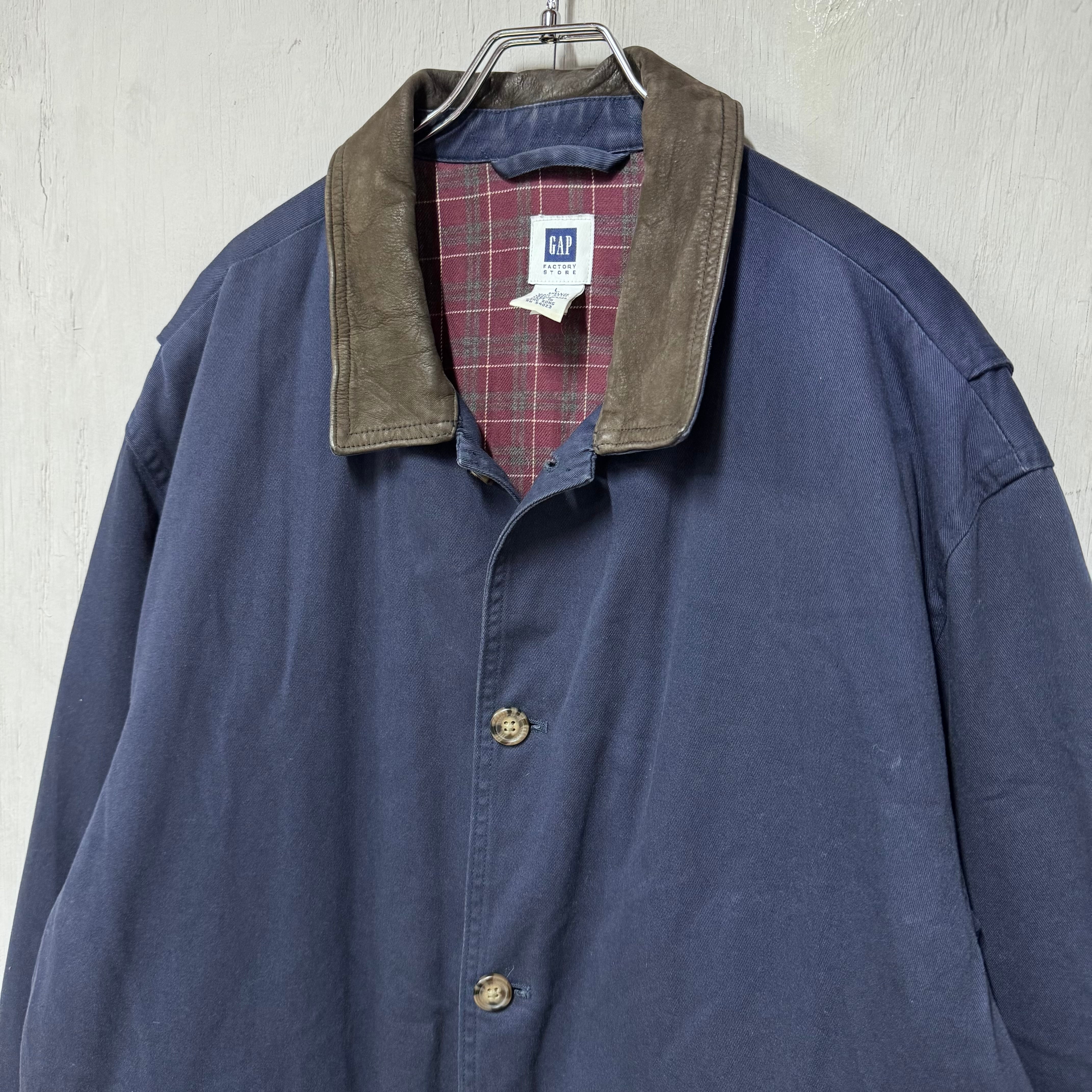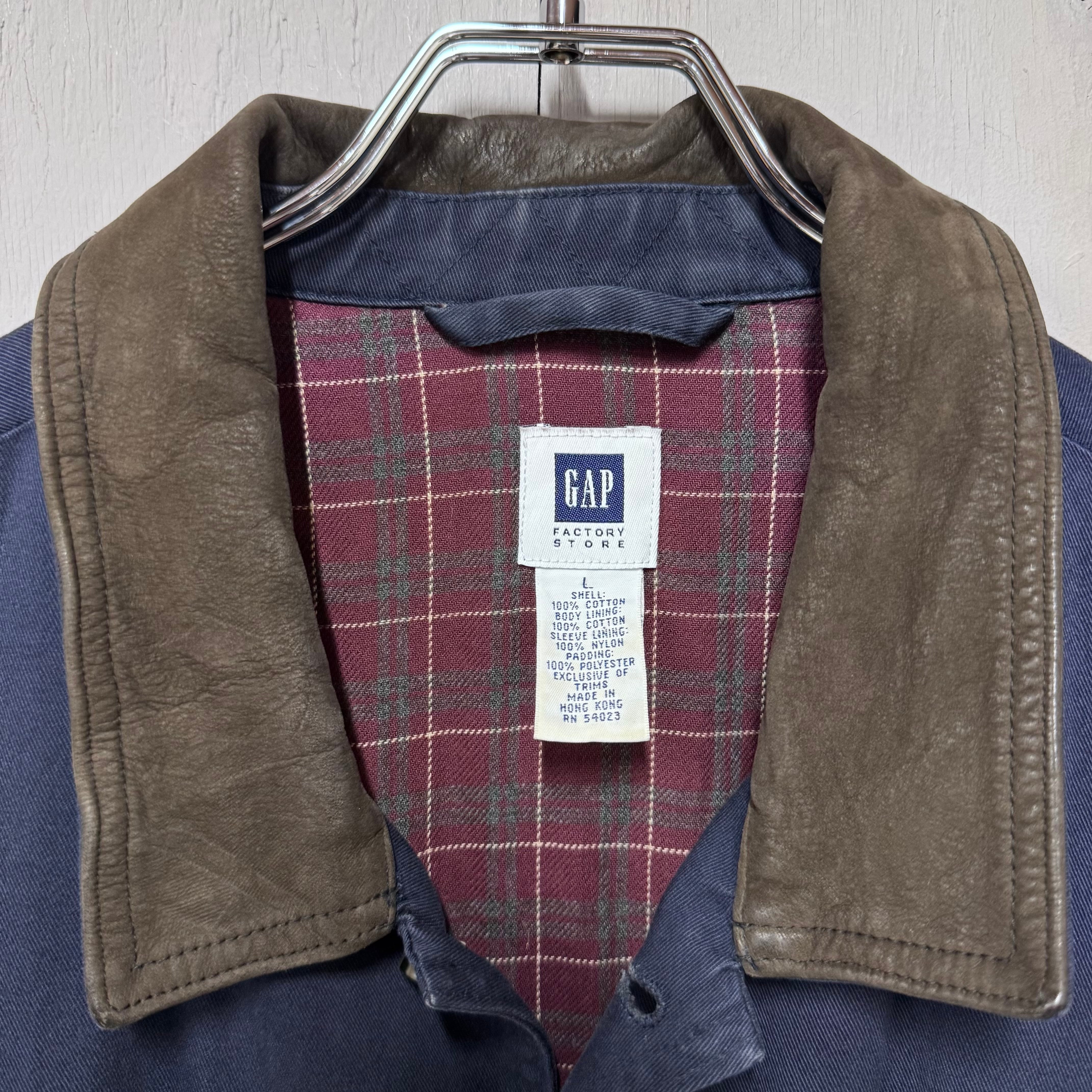 00s OLD GAP 襟レザーハンティングジャケット ネイビー L