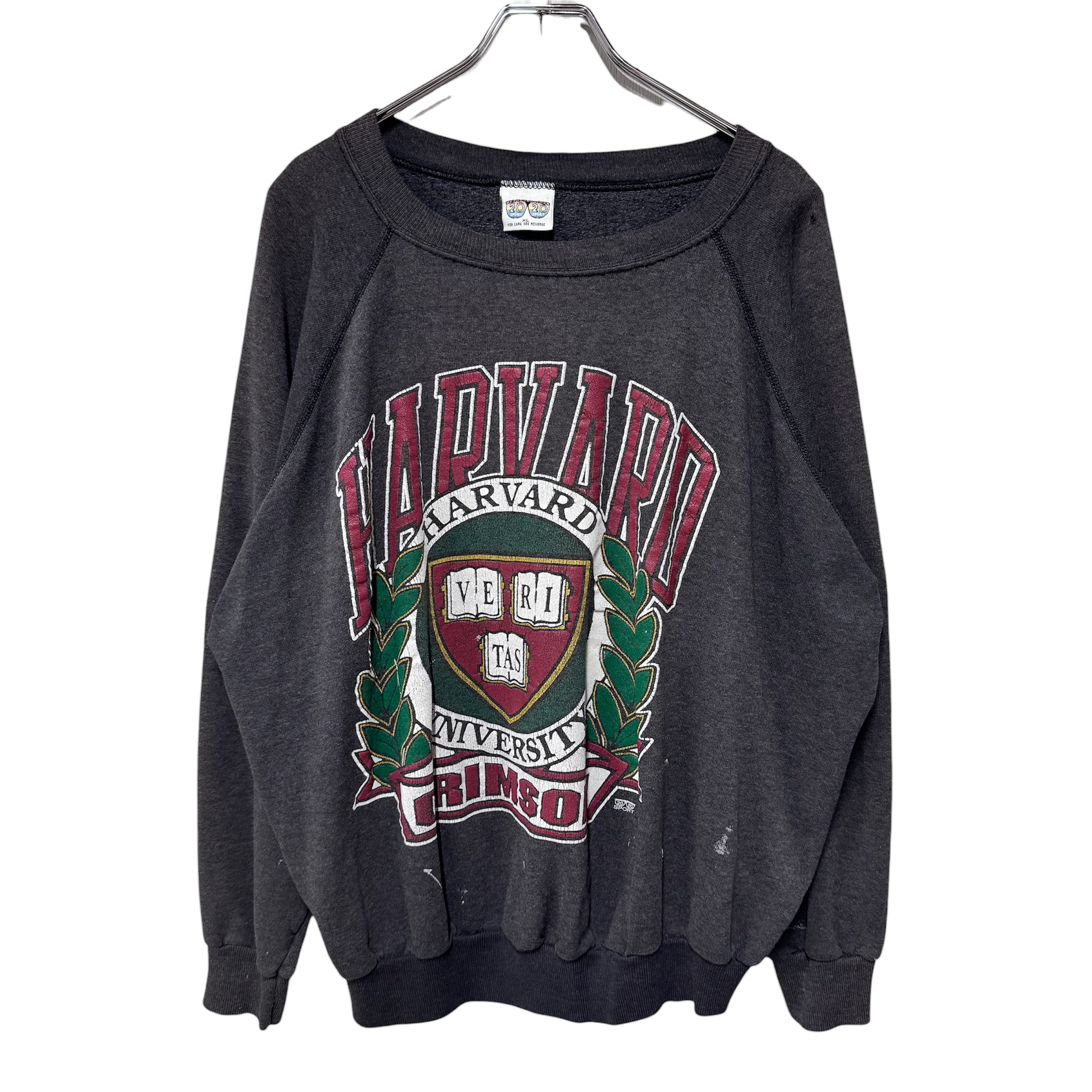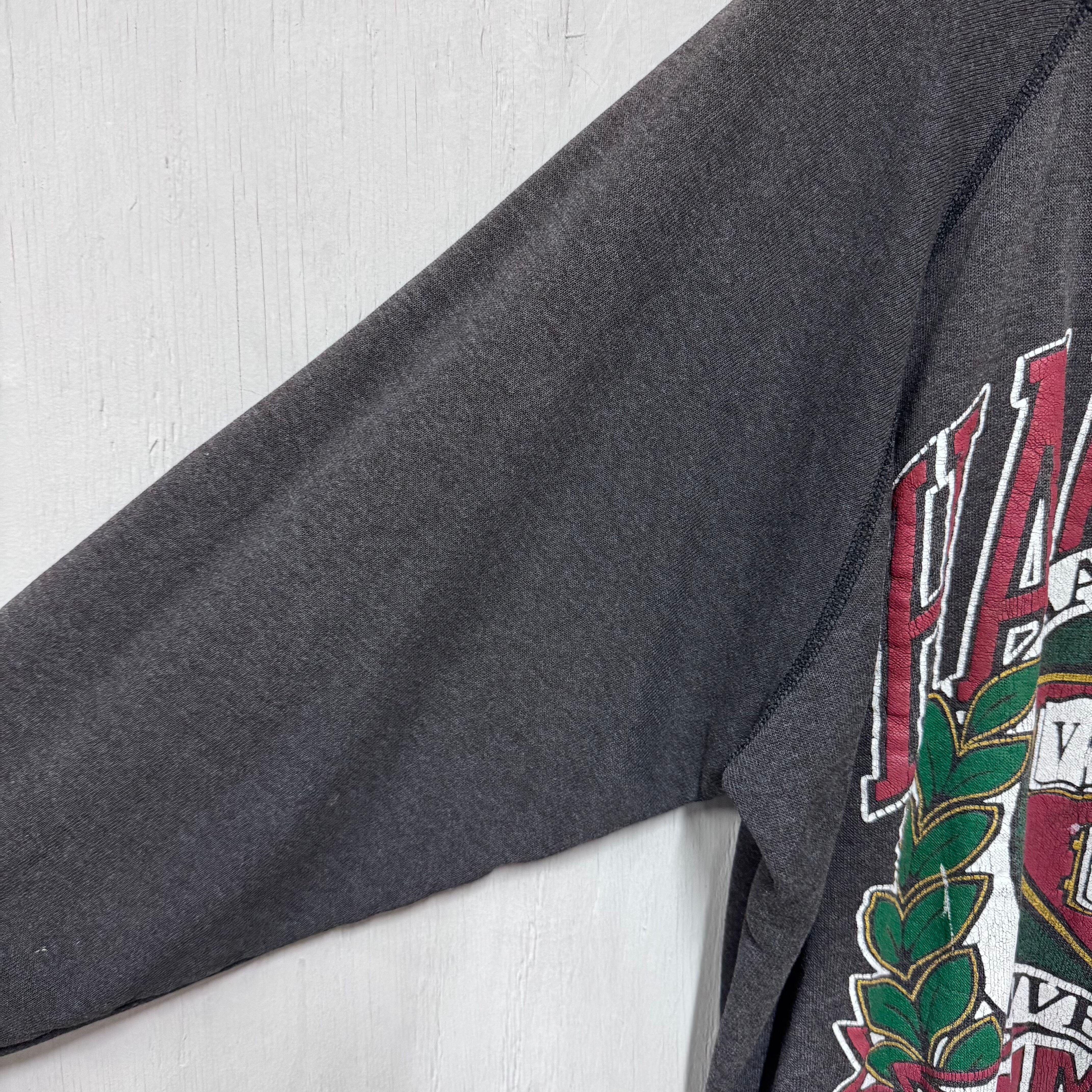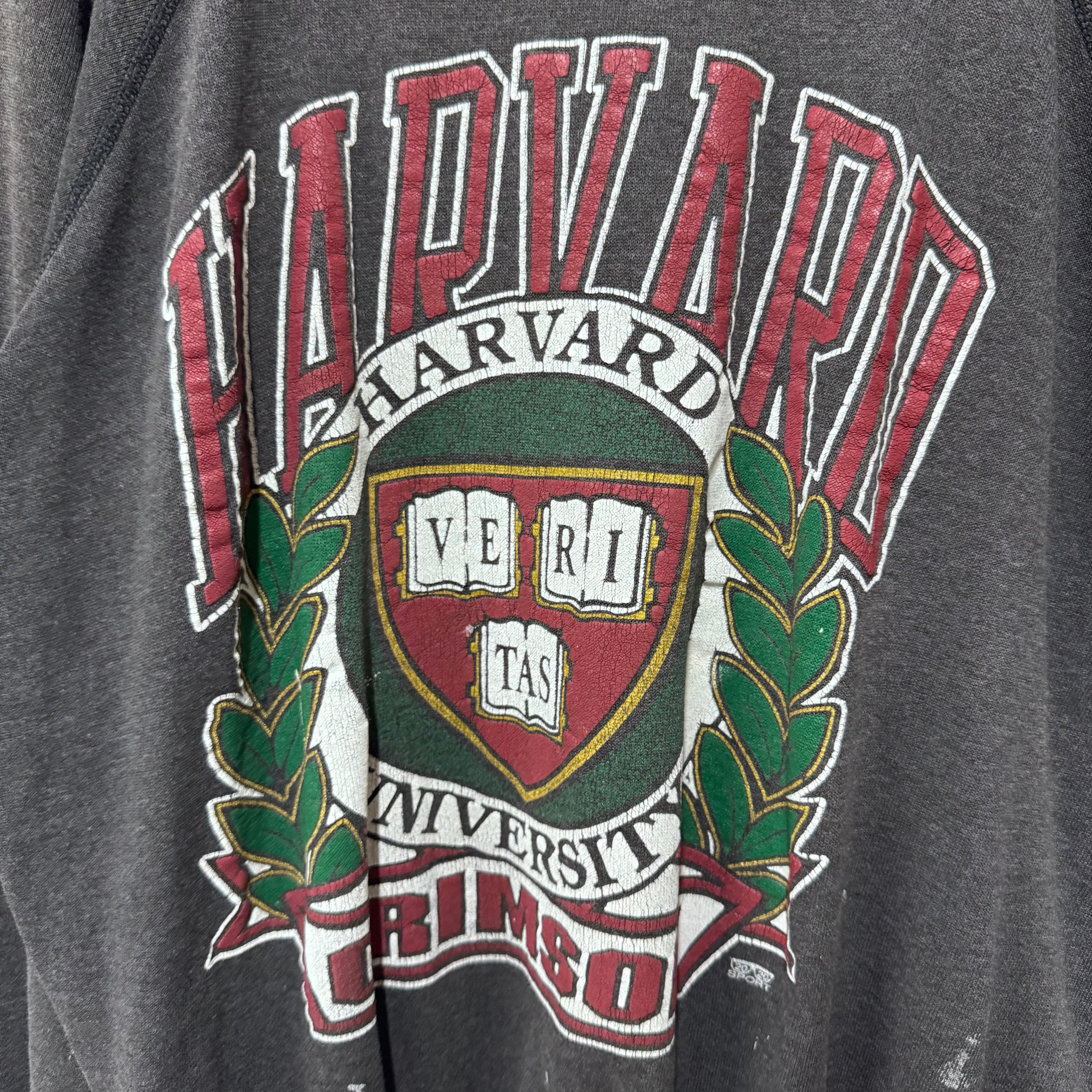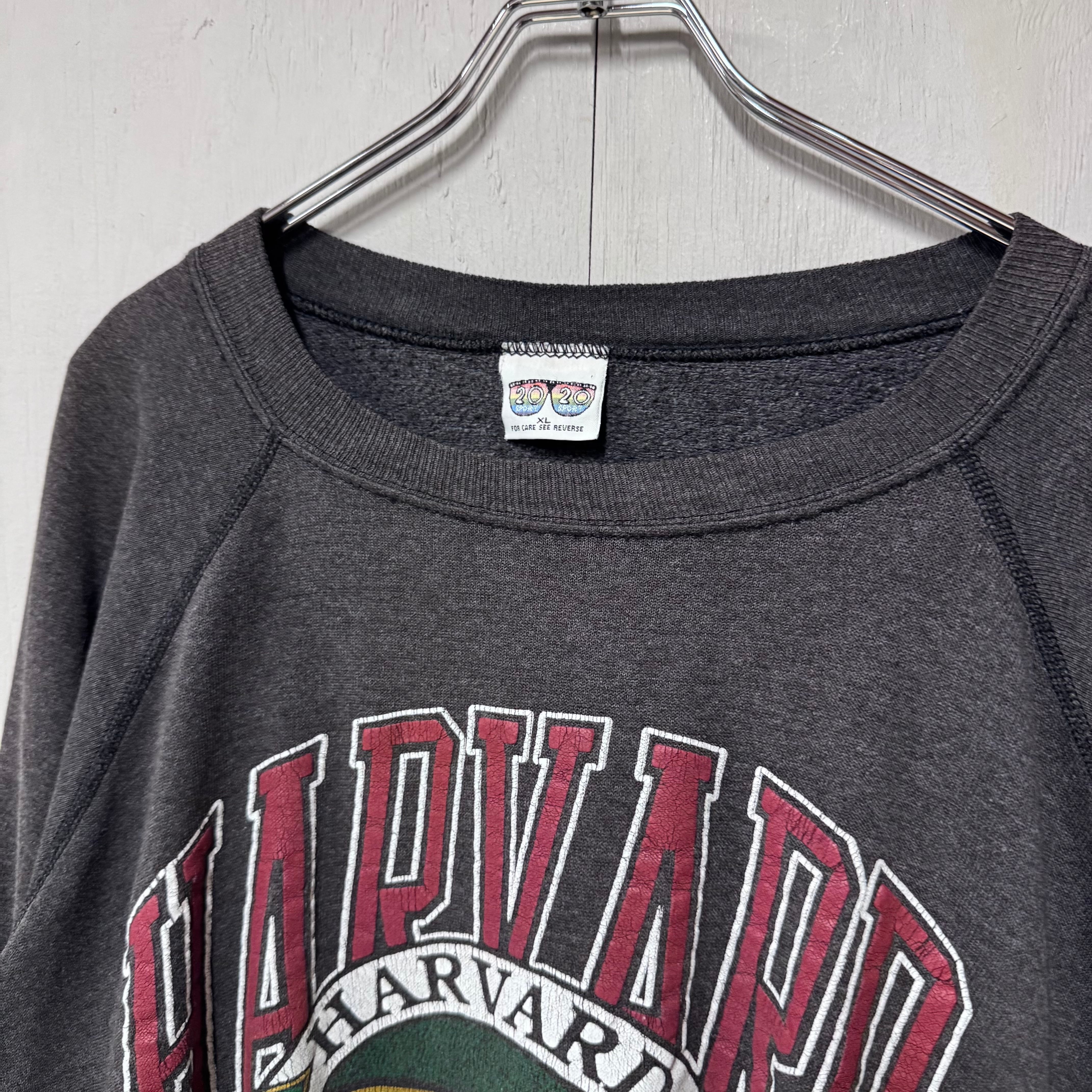 80s カレッジプリントラグランスウェット グレー Harvard XL 短丈