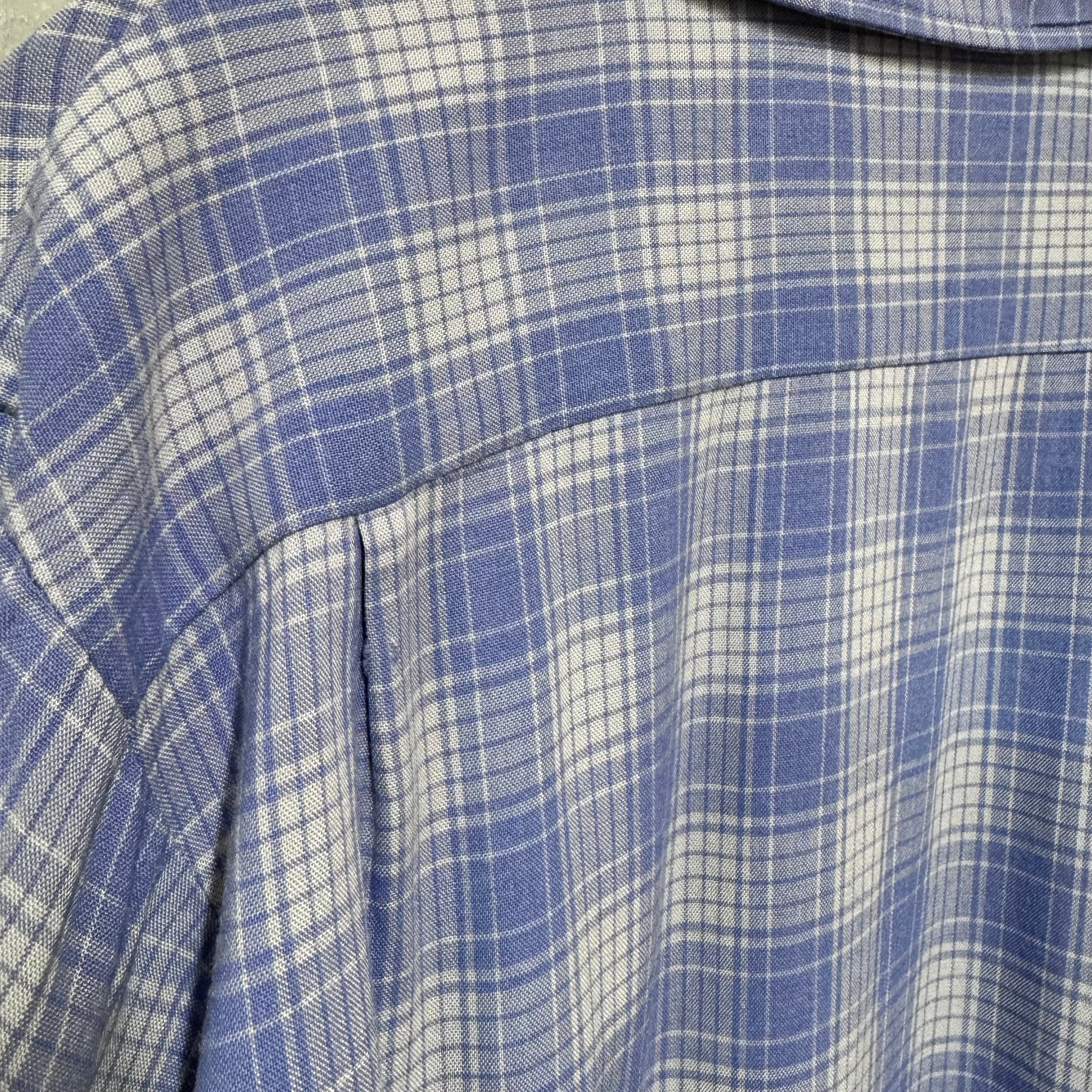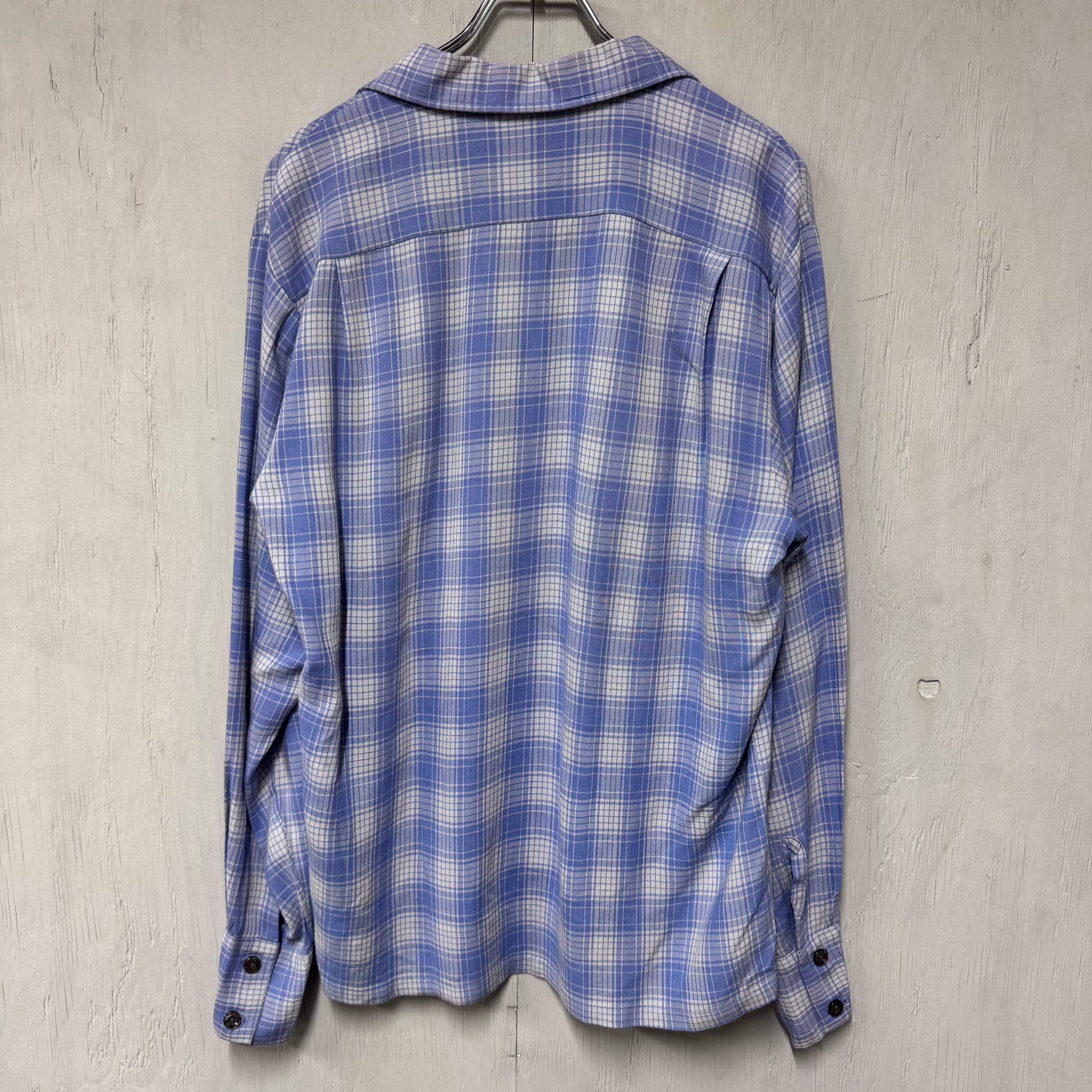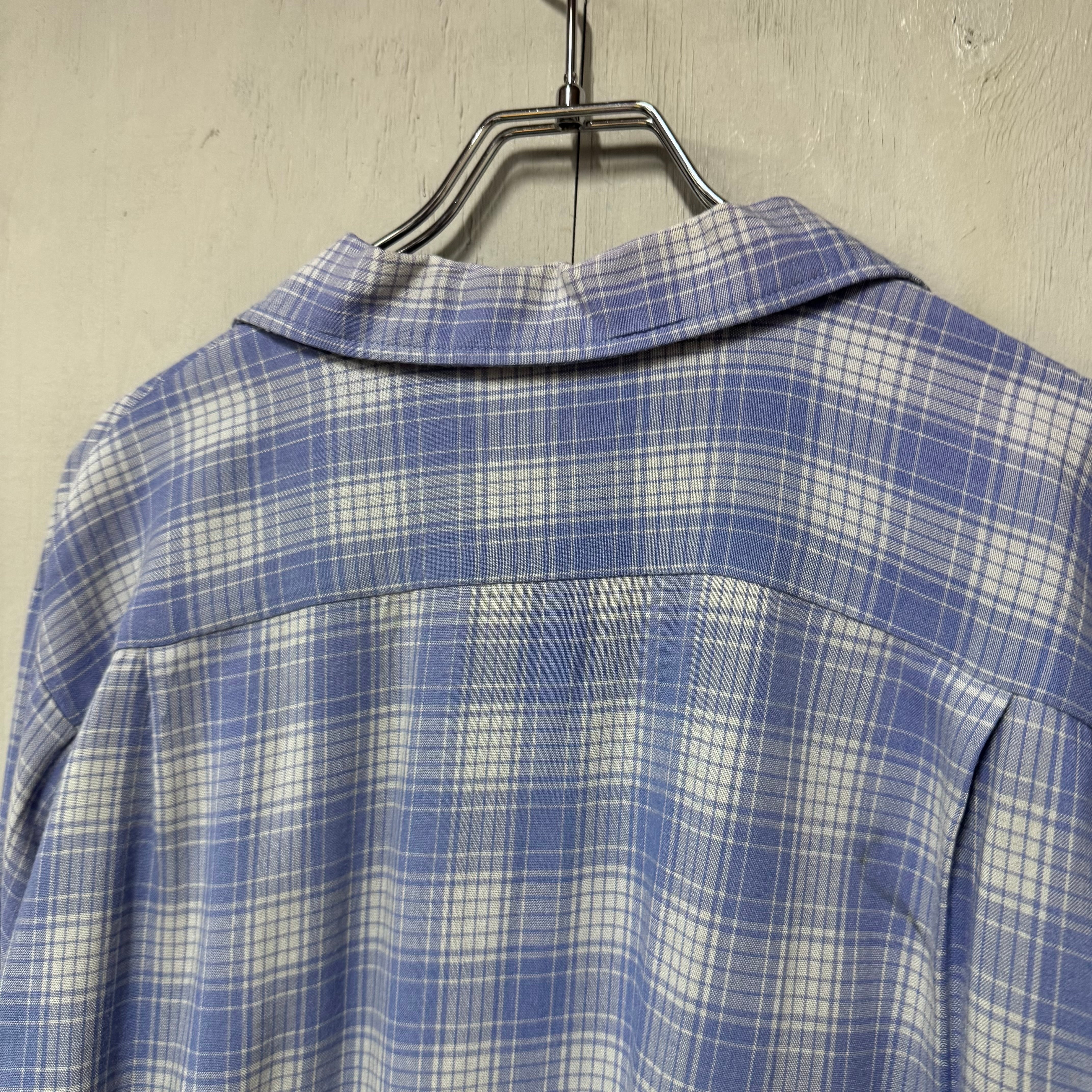 60s オンブレチェックループレーヨンシャツ ブルー M