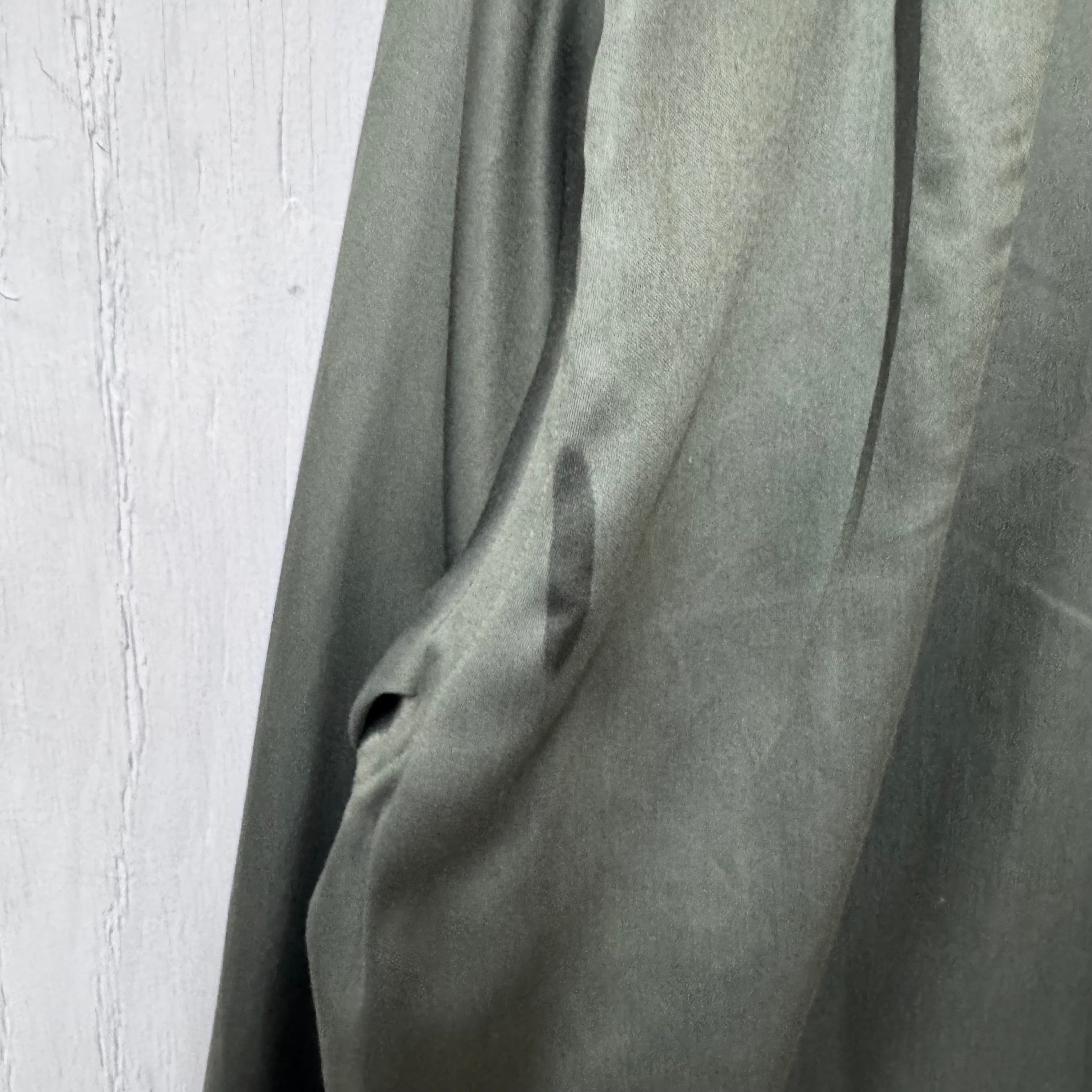 脇のステッチ飛び、背面にシミがあります。ヴィンテージ古着特有の使用感が見られます。
