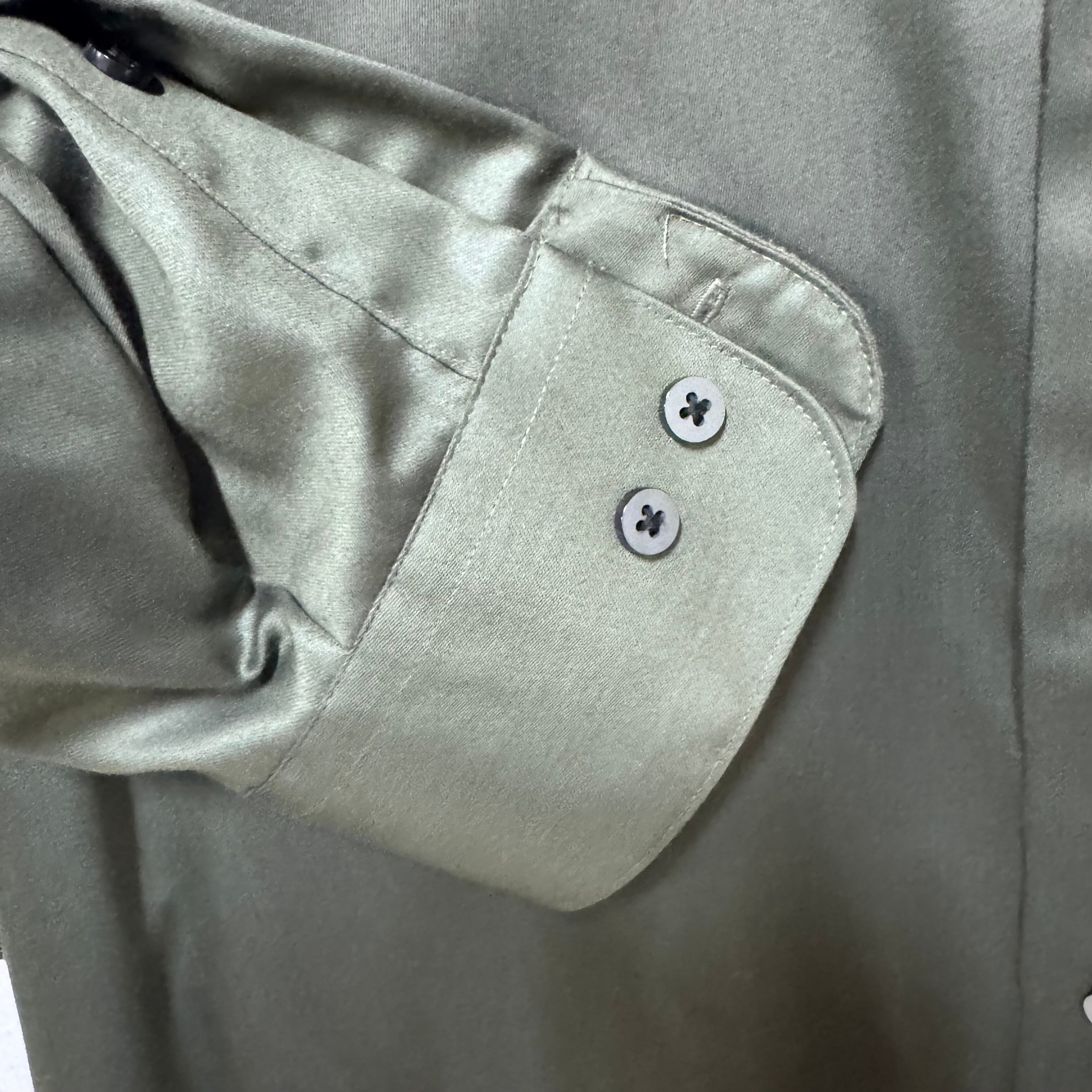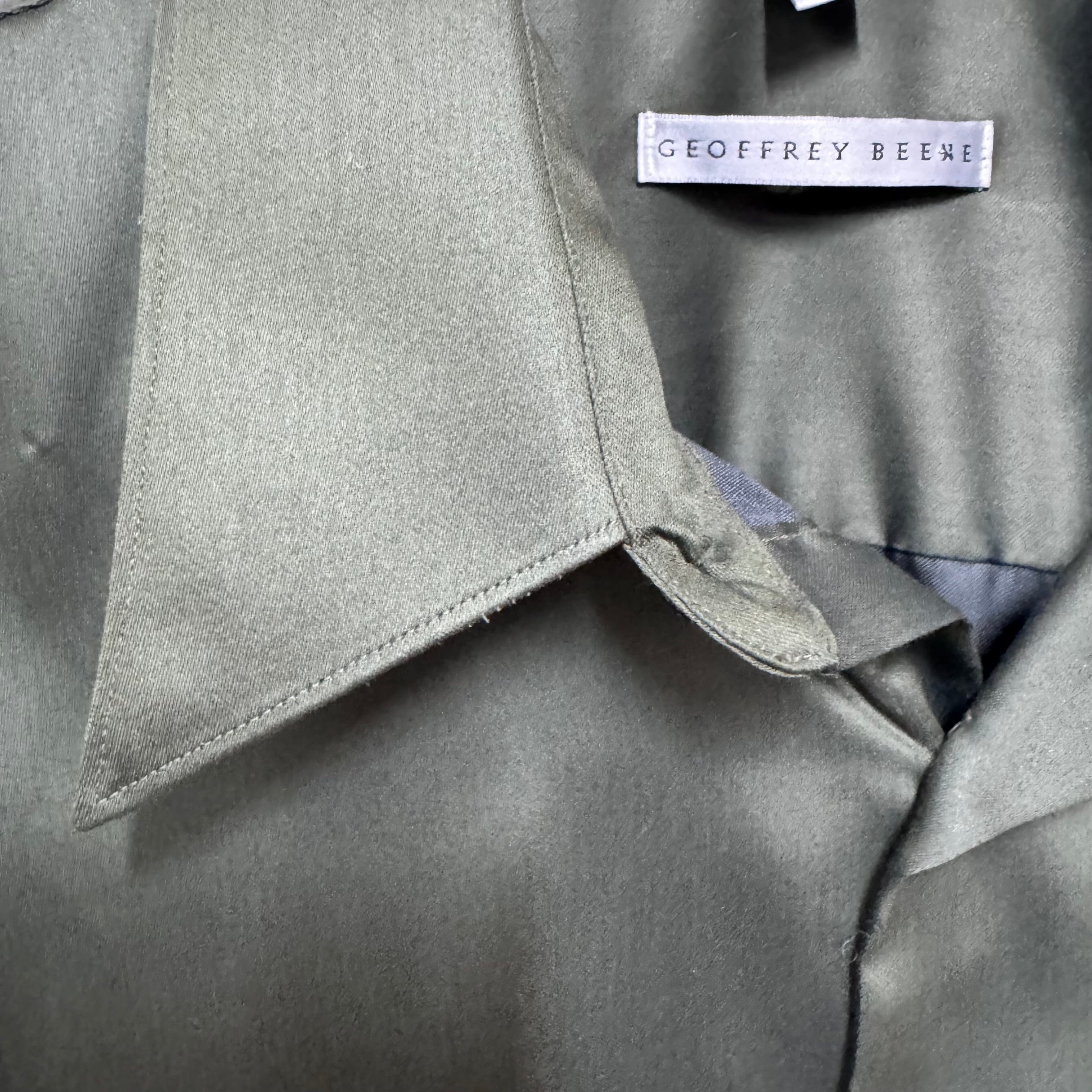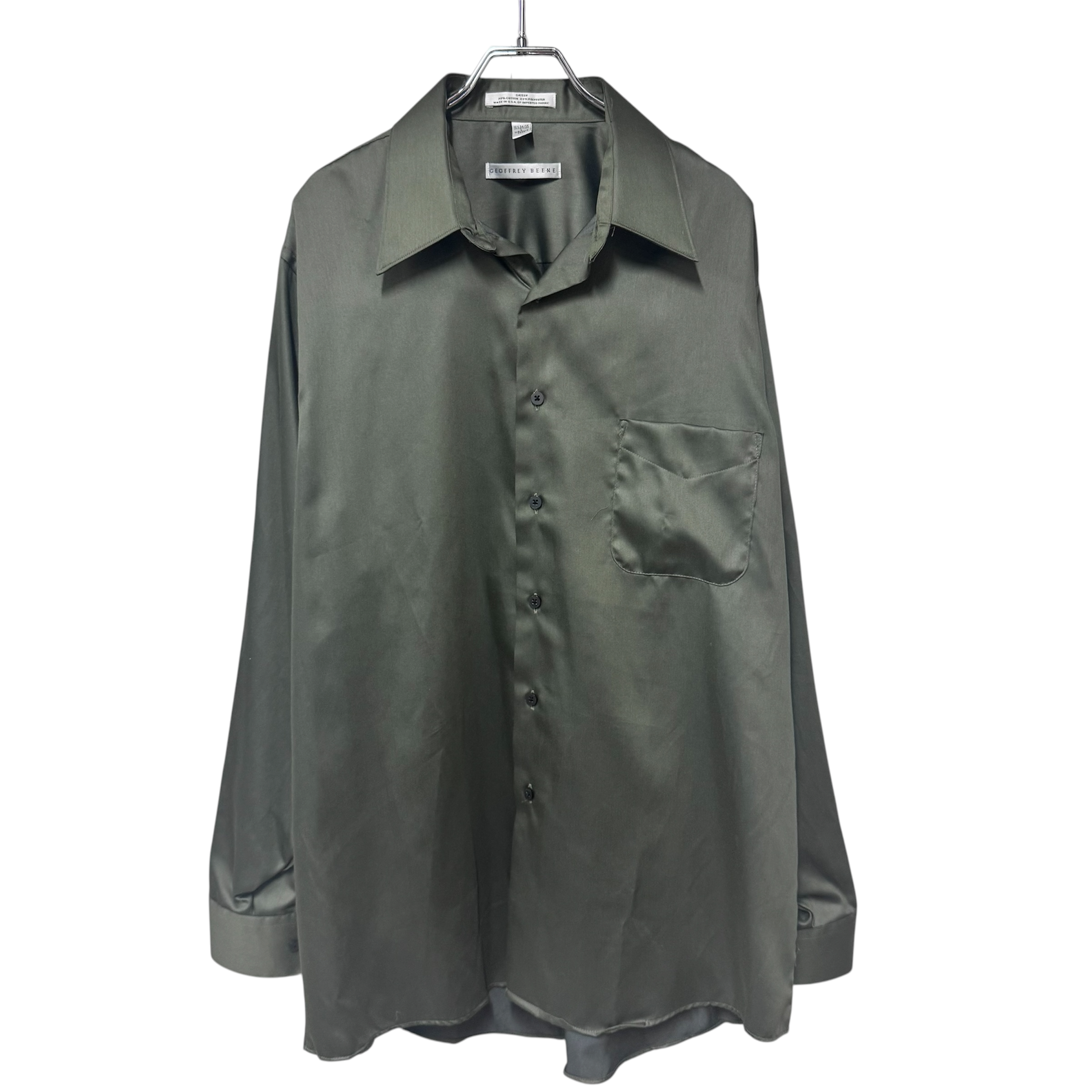 トロミ 光沢 Geoffrey Beene サテンシャツ カーキ L