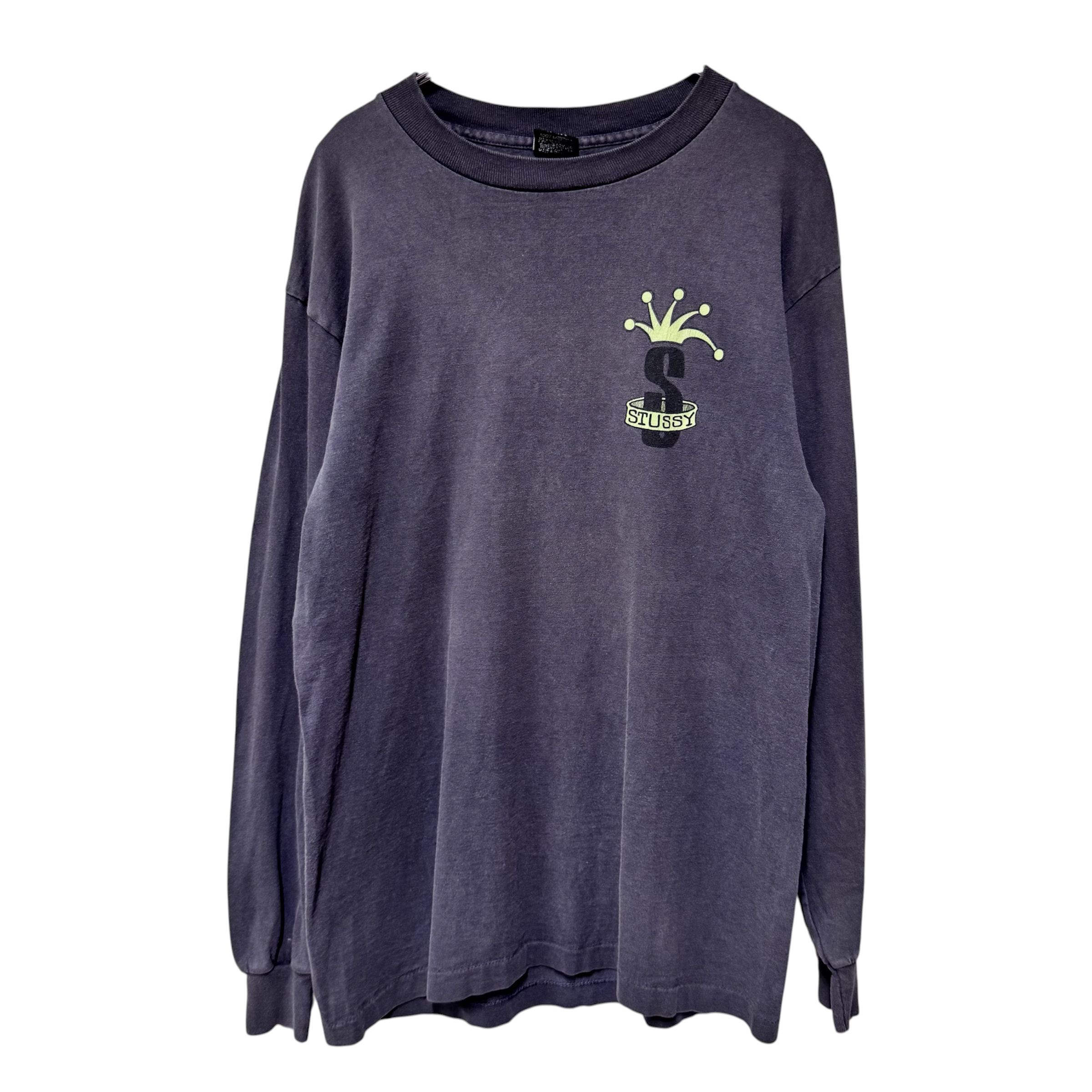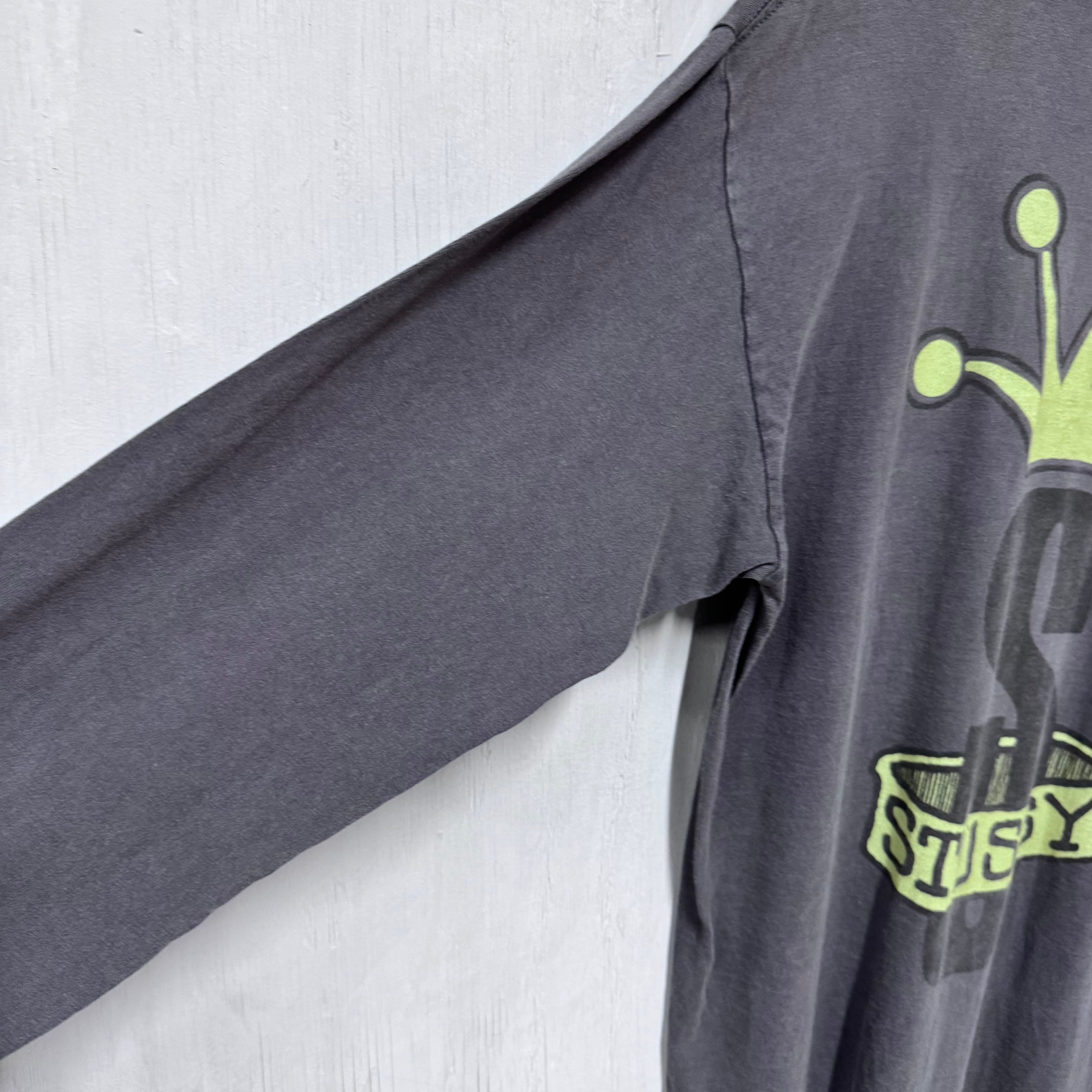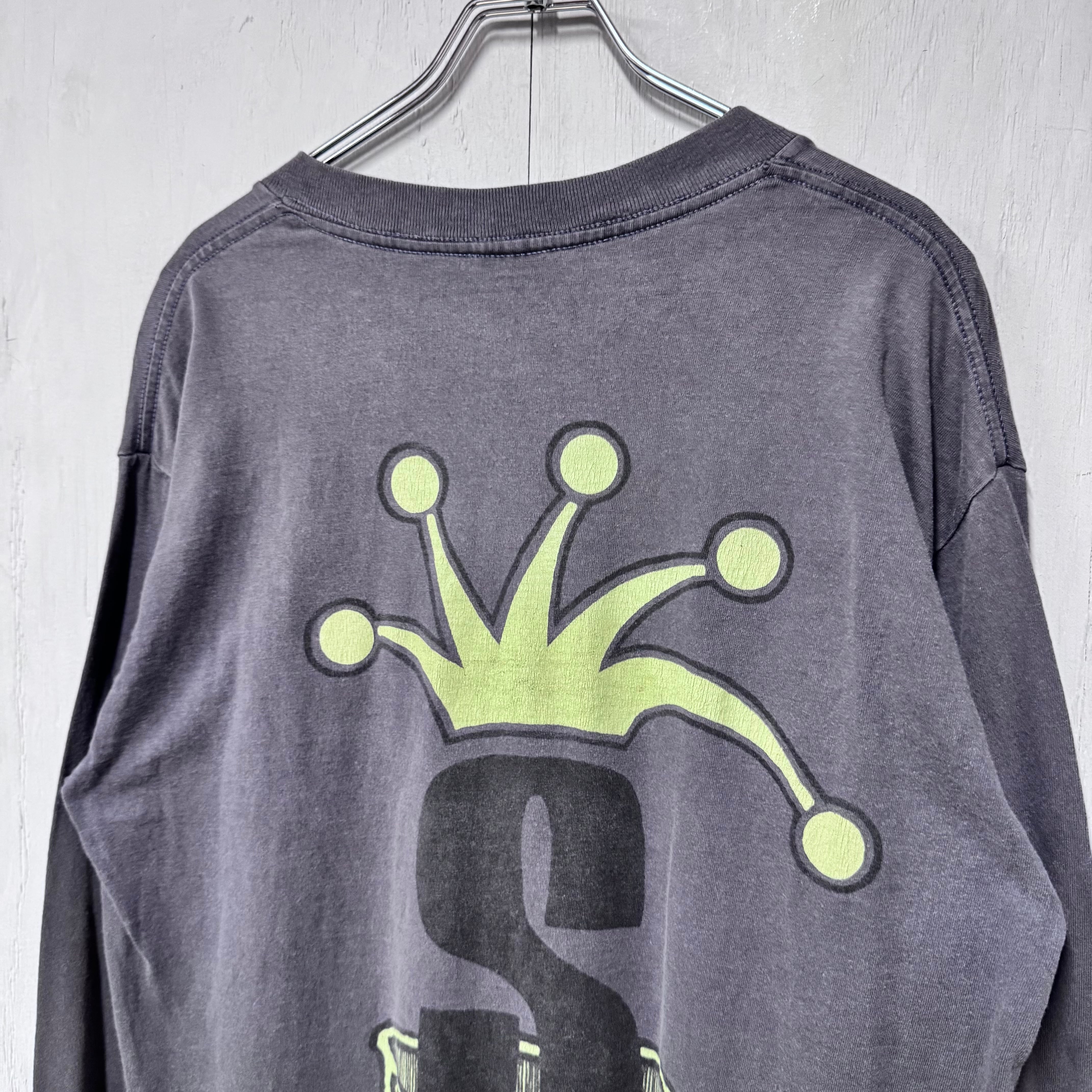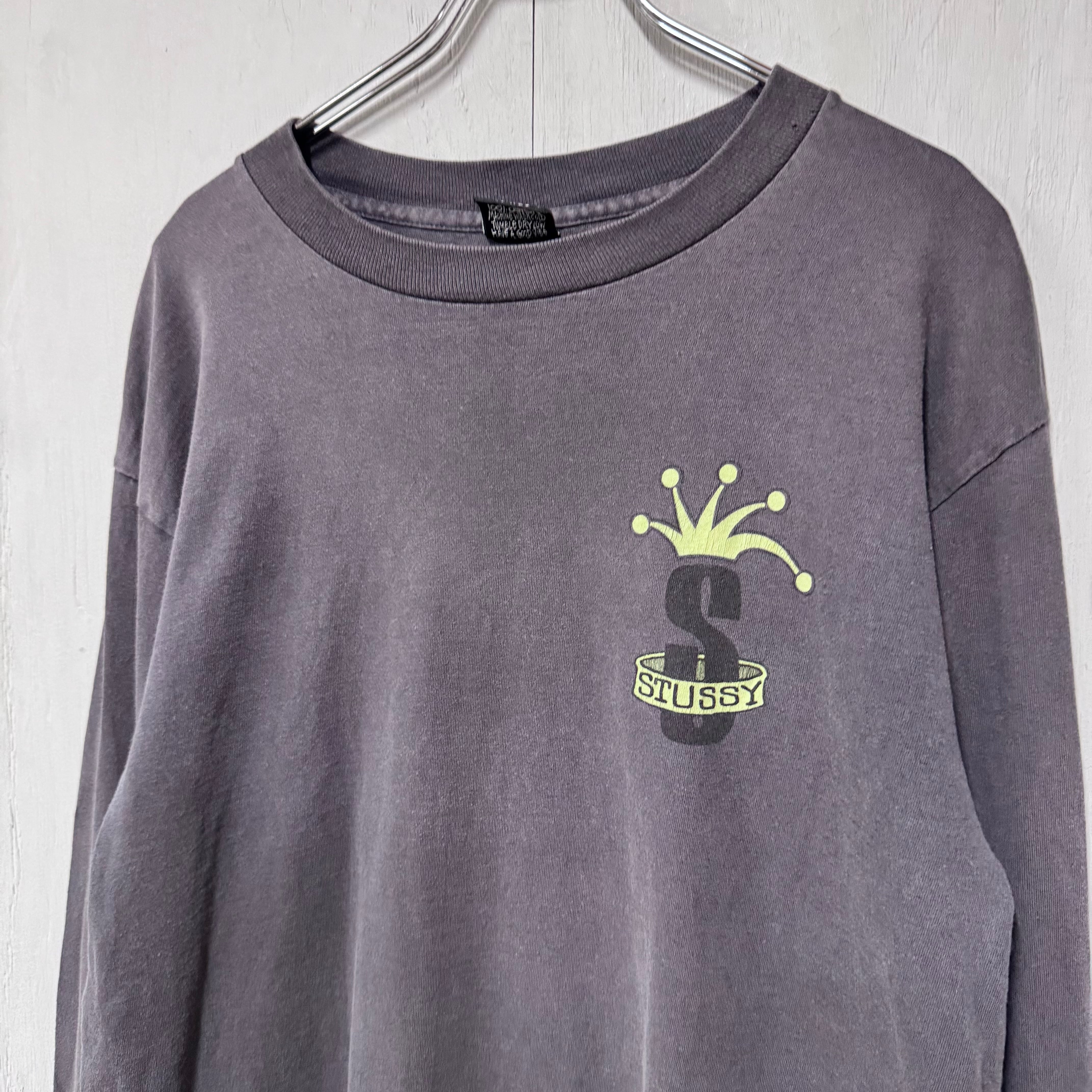 80s 黒タグ STUSSY クラウン 両面プリントロンT フェードブラック グレー L