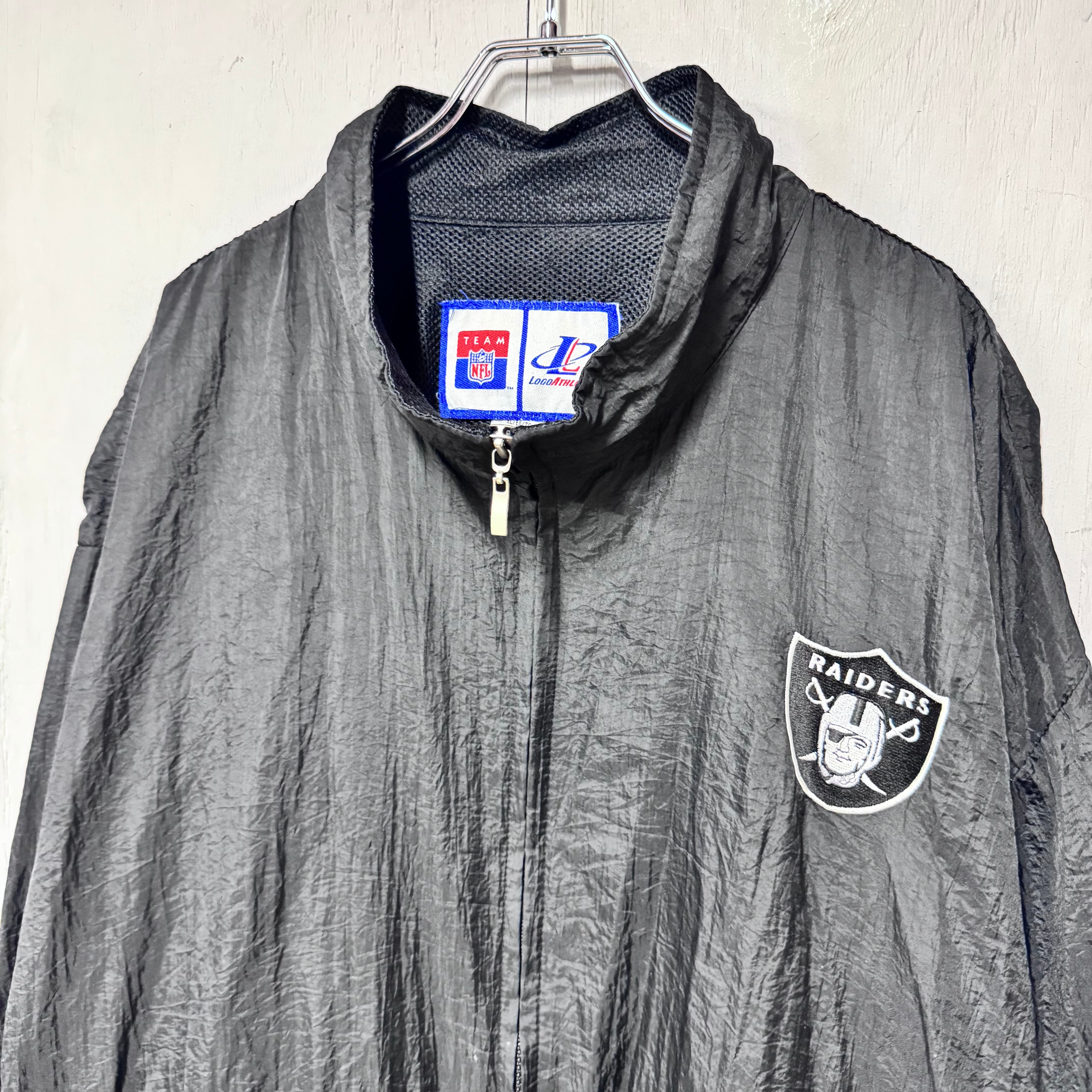 90s NFL RAIDERS ジップアップナイロンジャケット ブラック リフレクター XL
