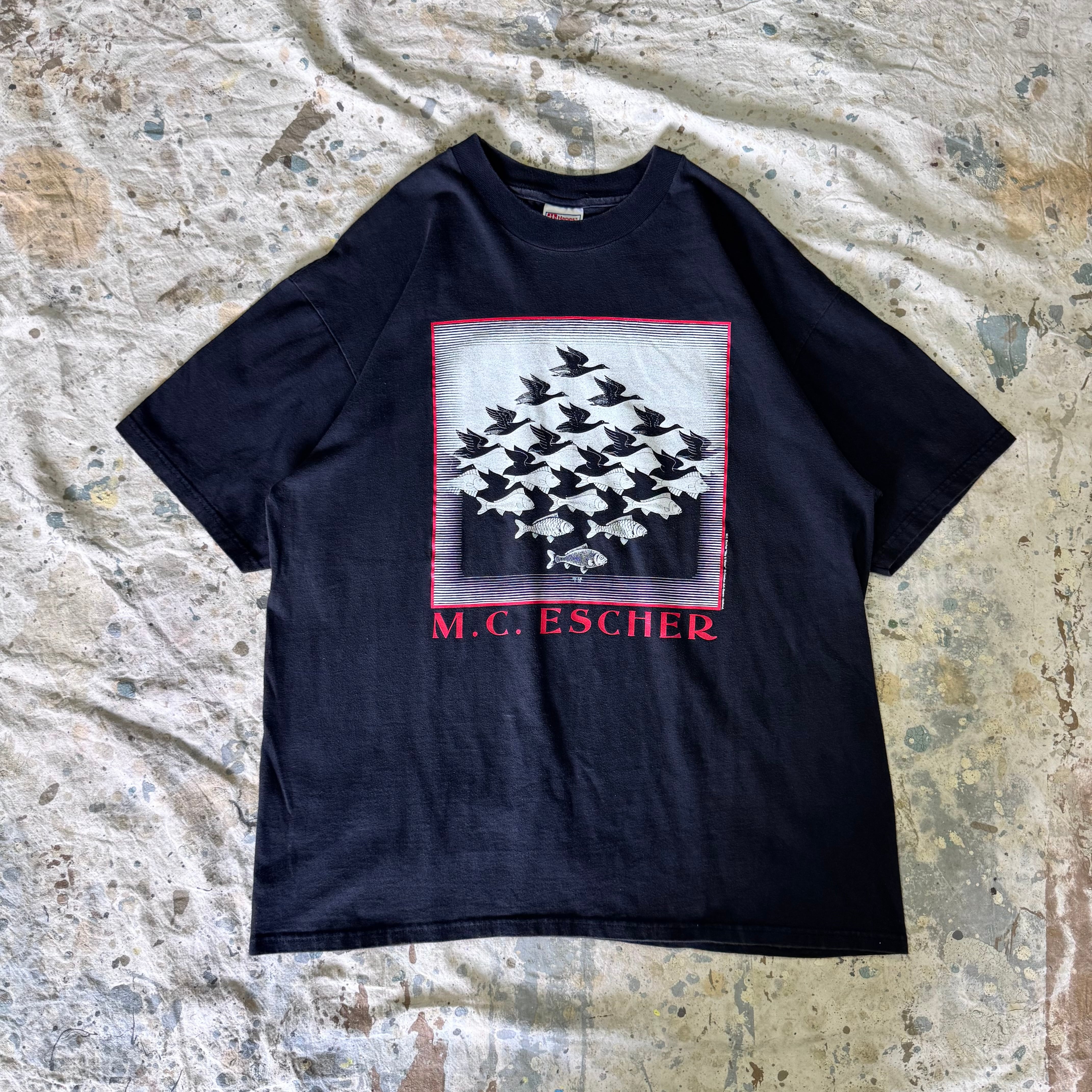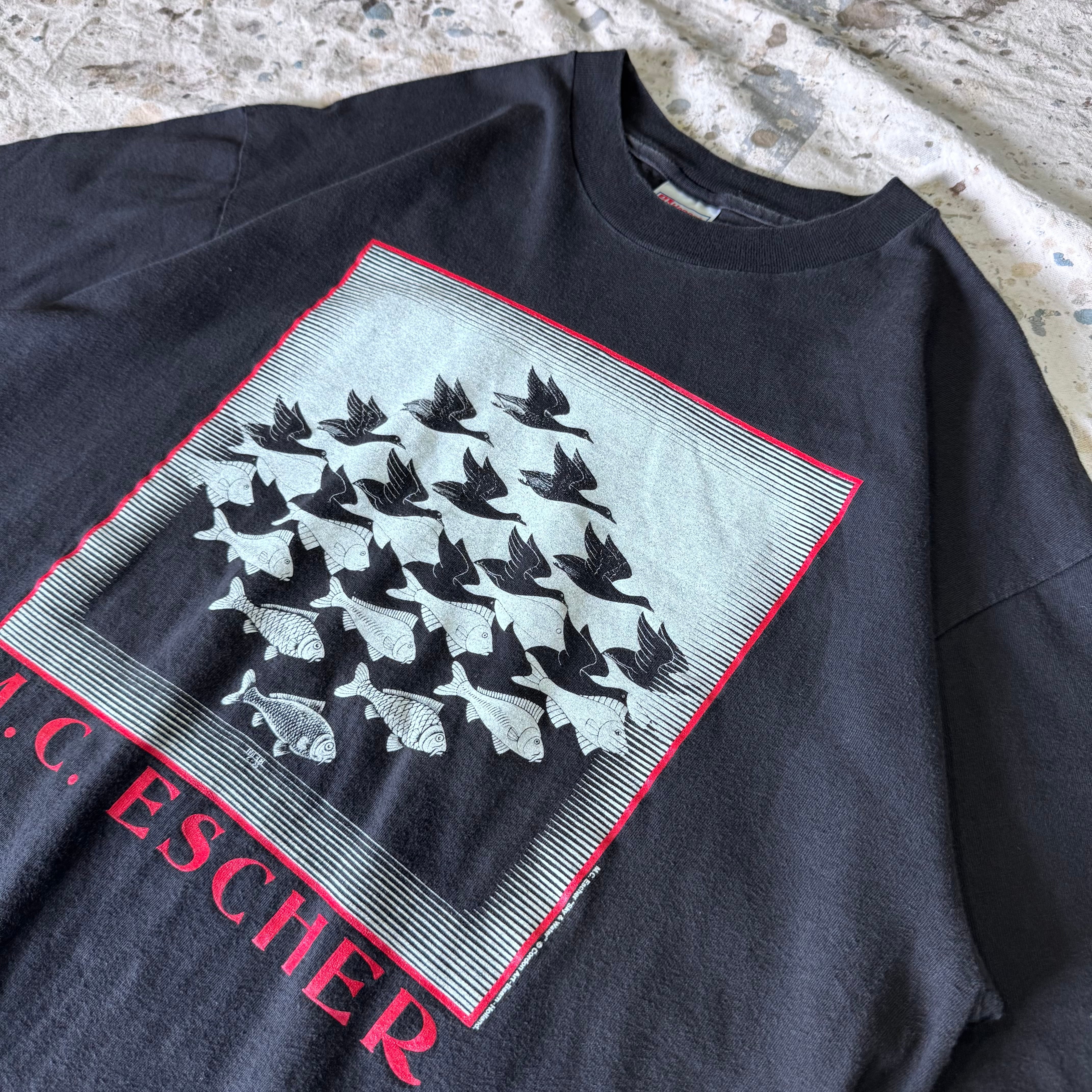 90s~ M.C.Escher Sky & Water Tシャツ ブラック アートT XL