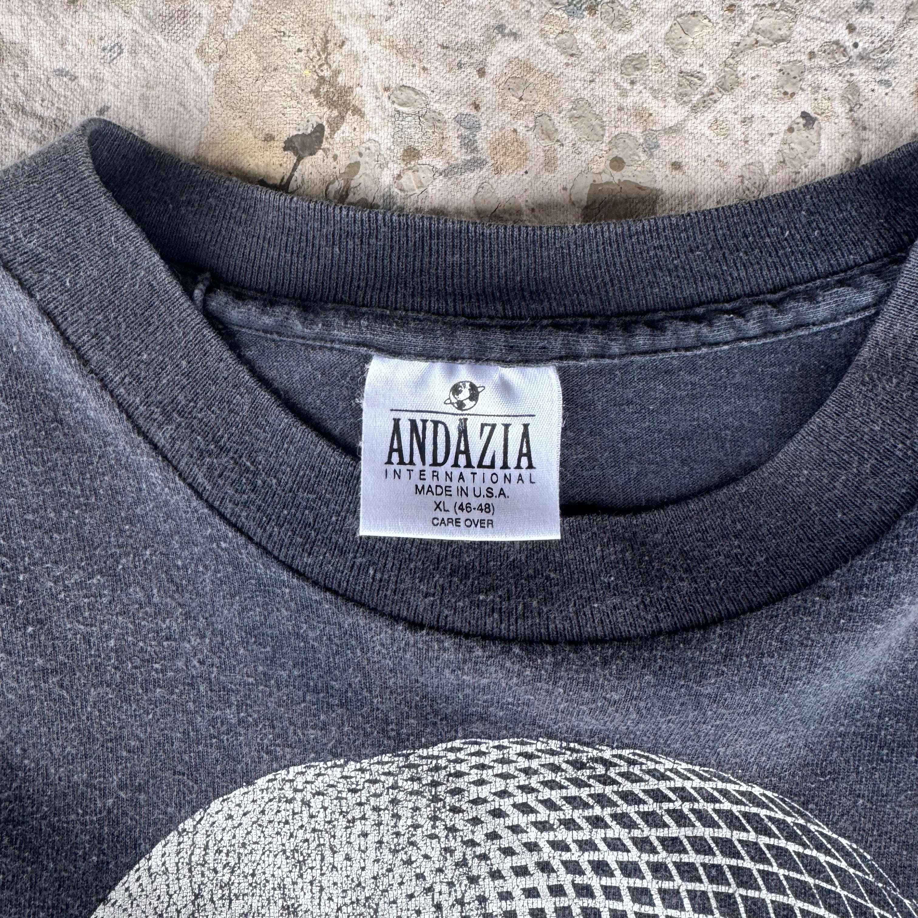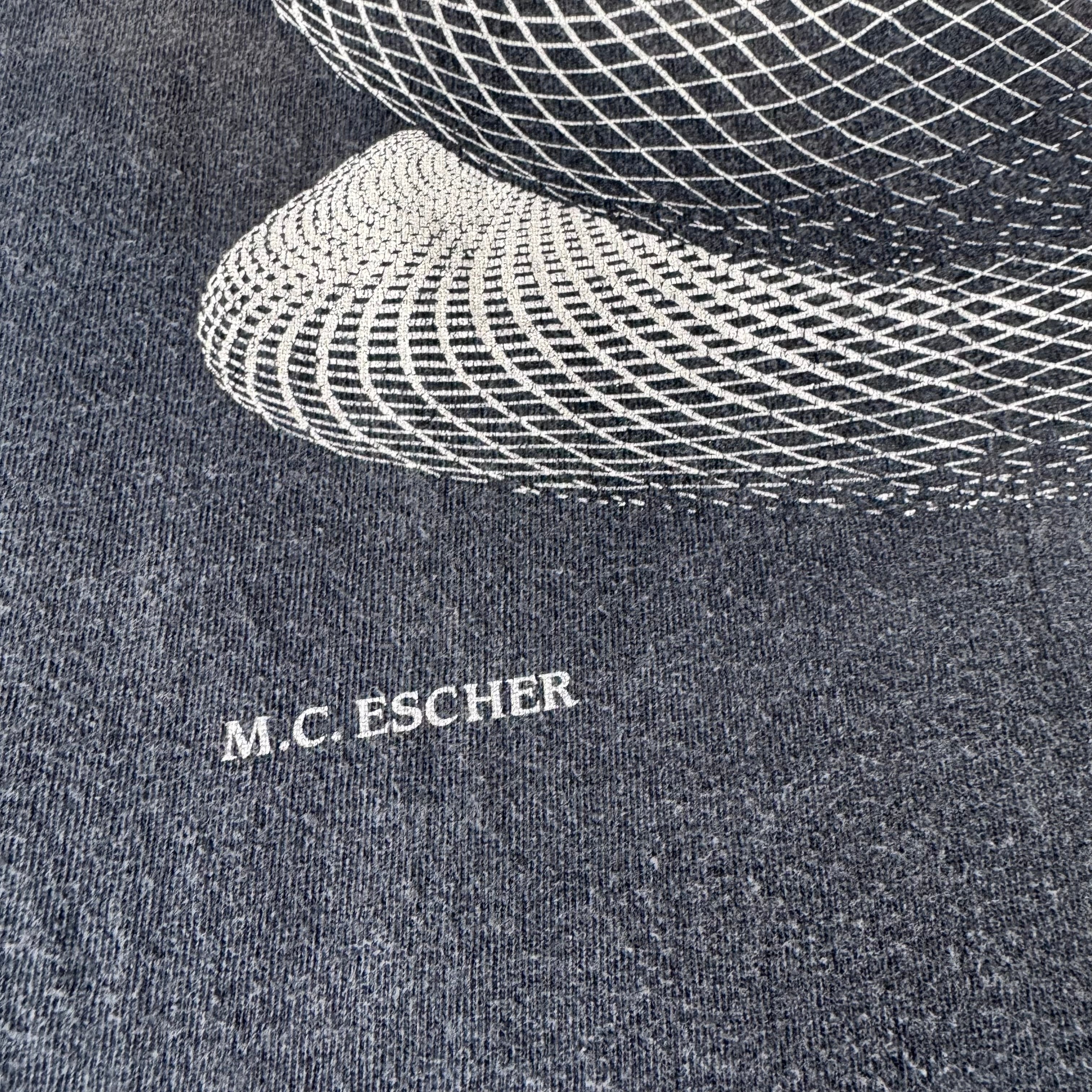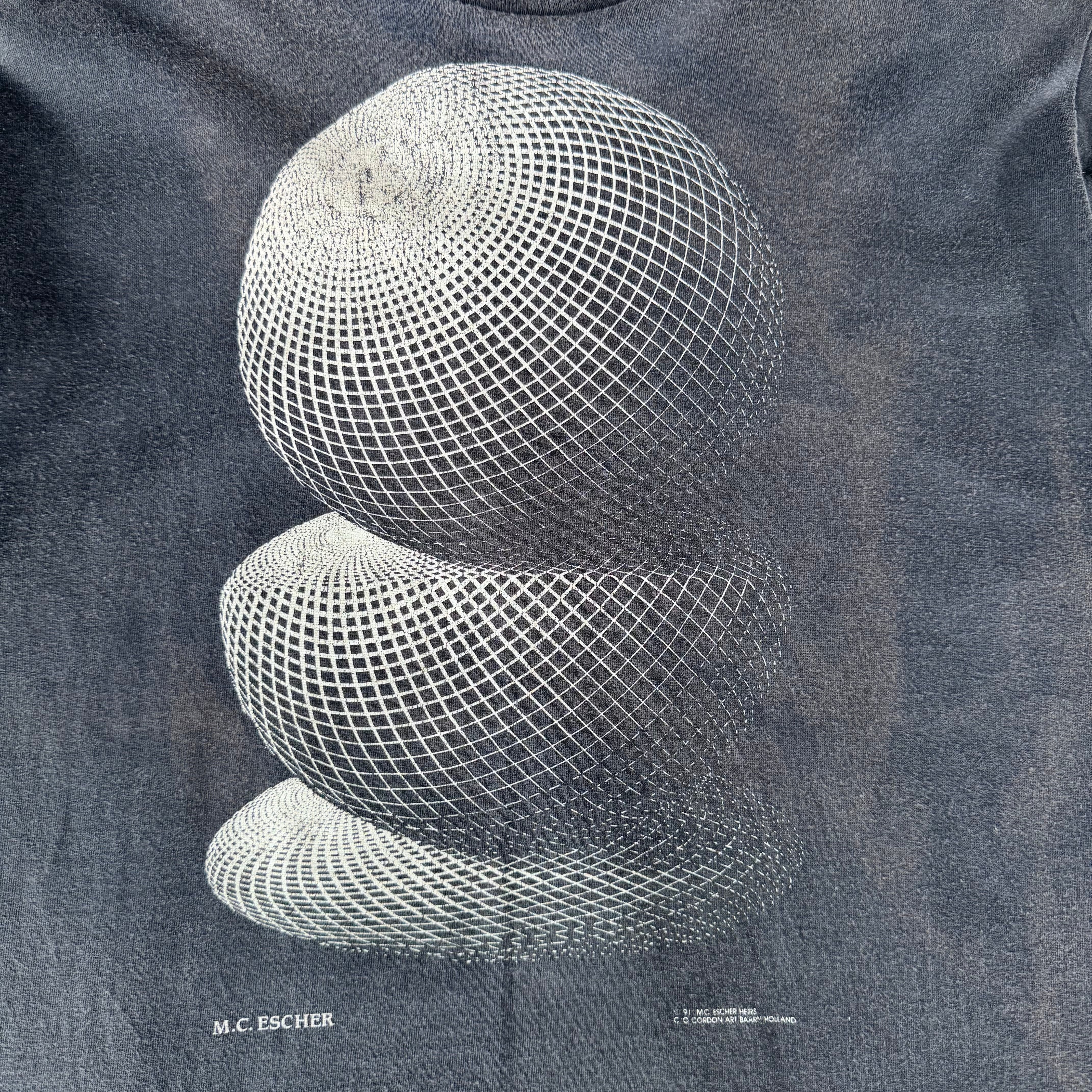 90s M.C.Escher 3つの球体 フェードブラック Tシャツ XL