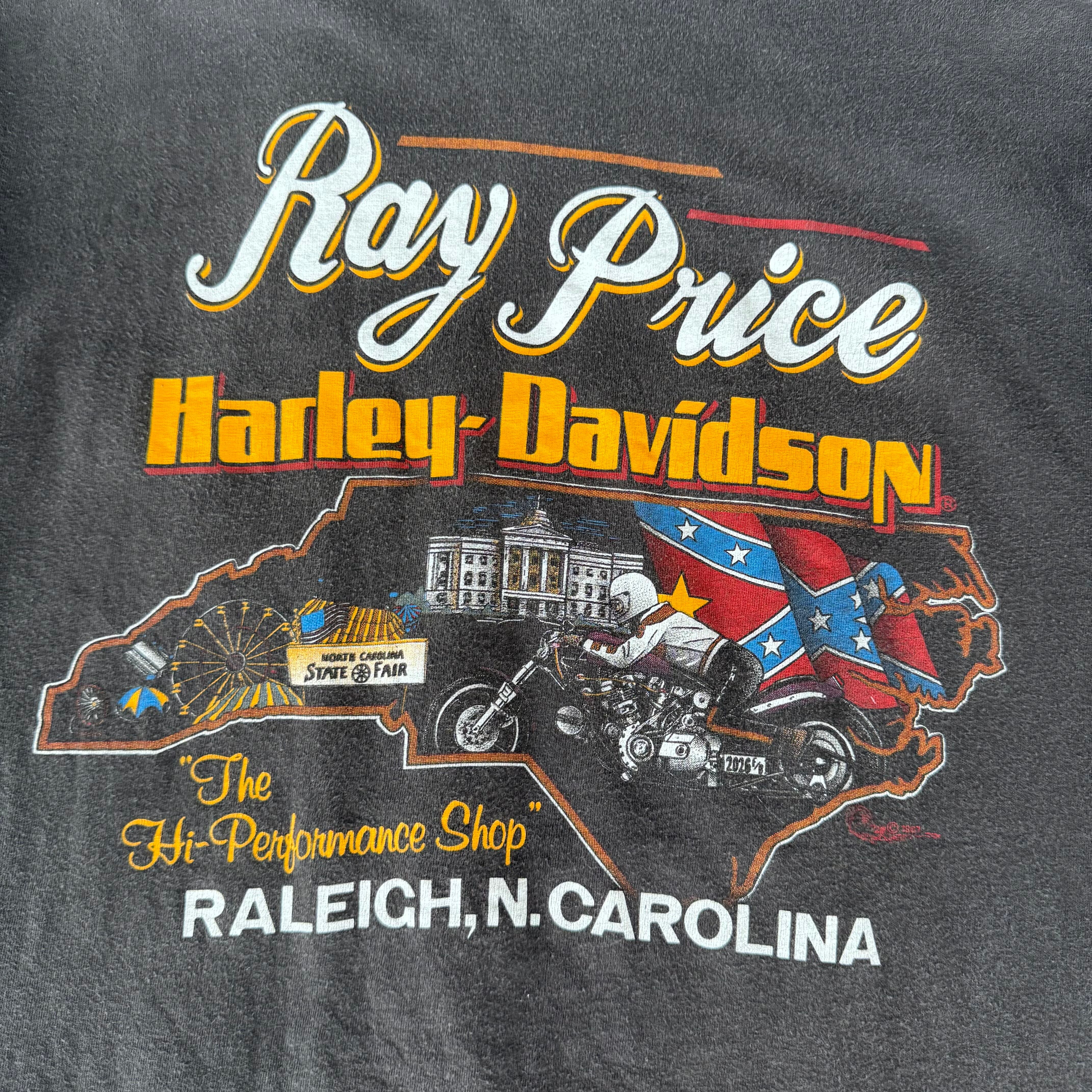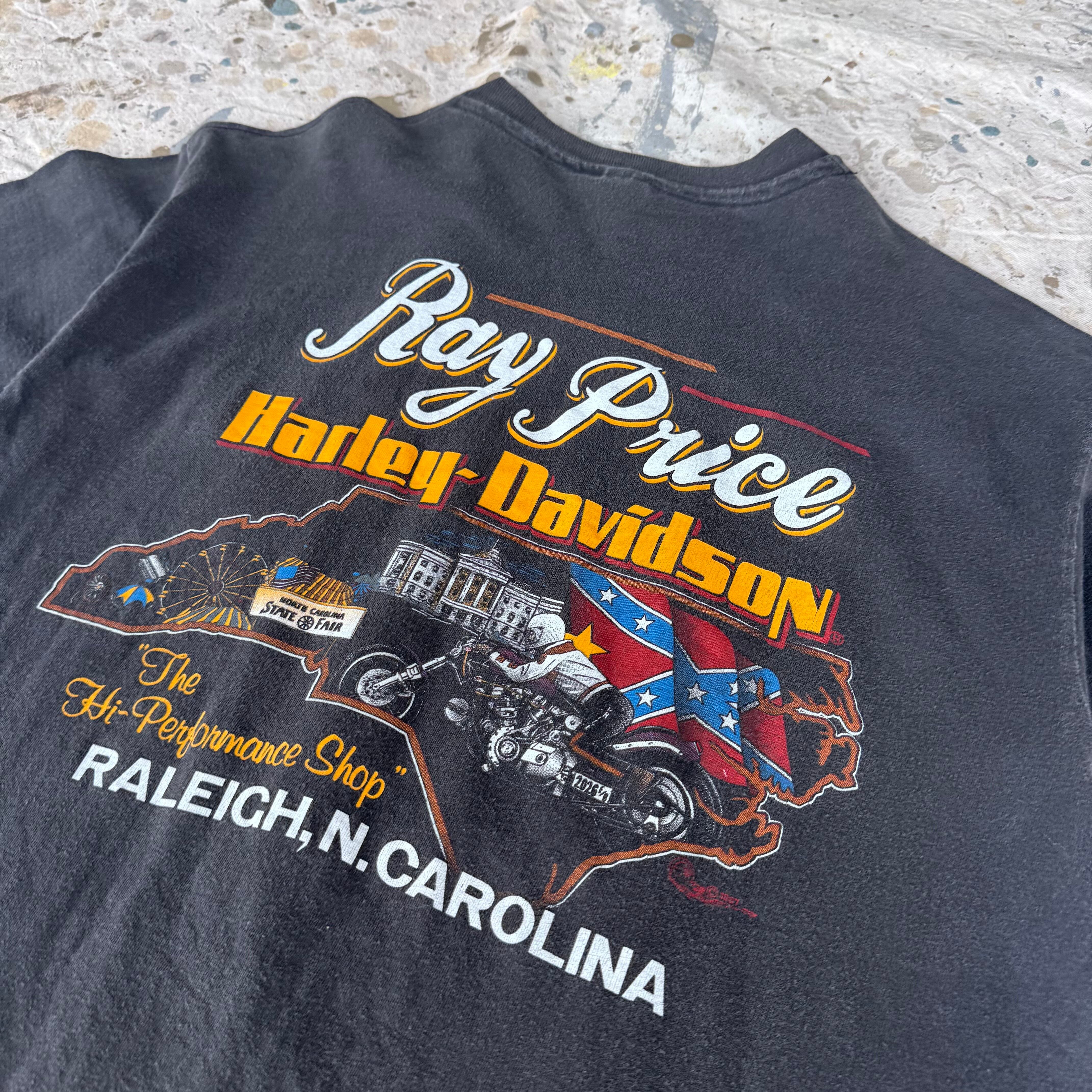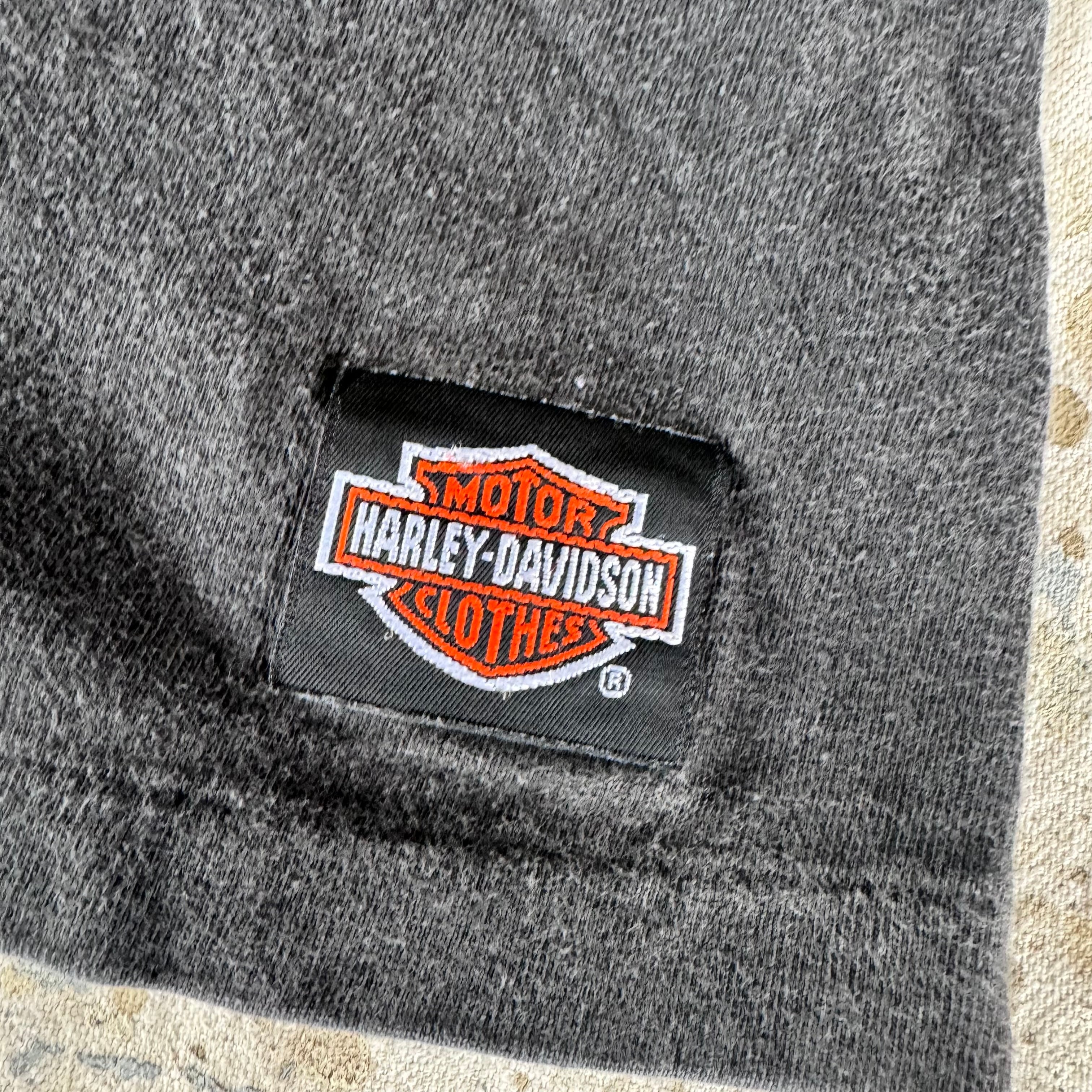 80s Harley Davidson ビンテージTシャツ 両面プリント フェードブラック XL