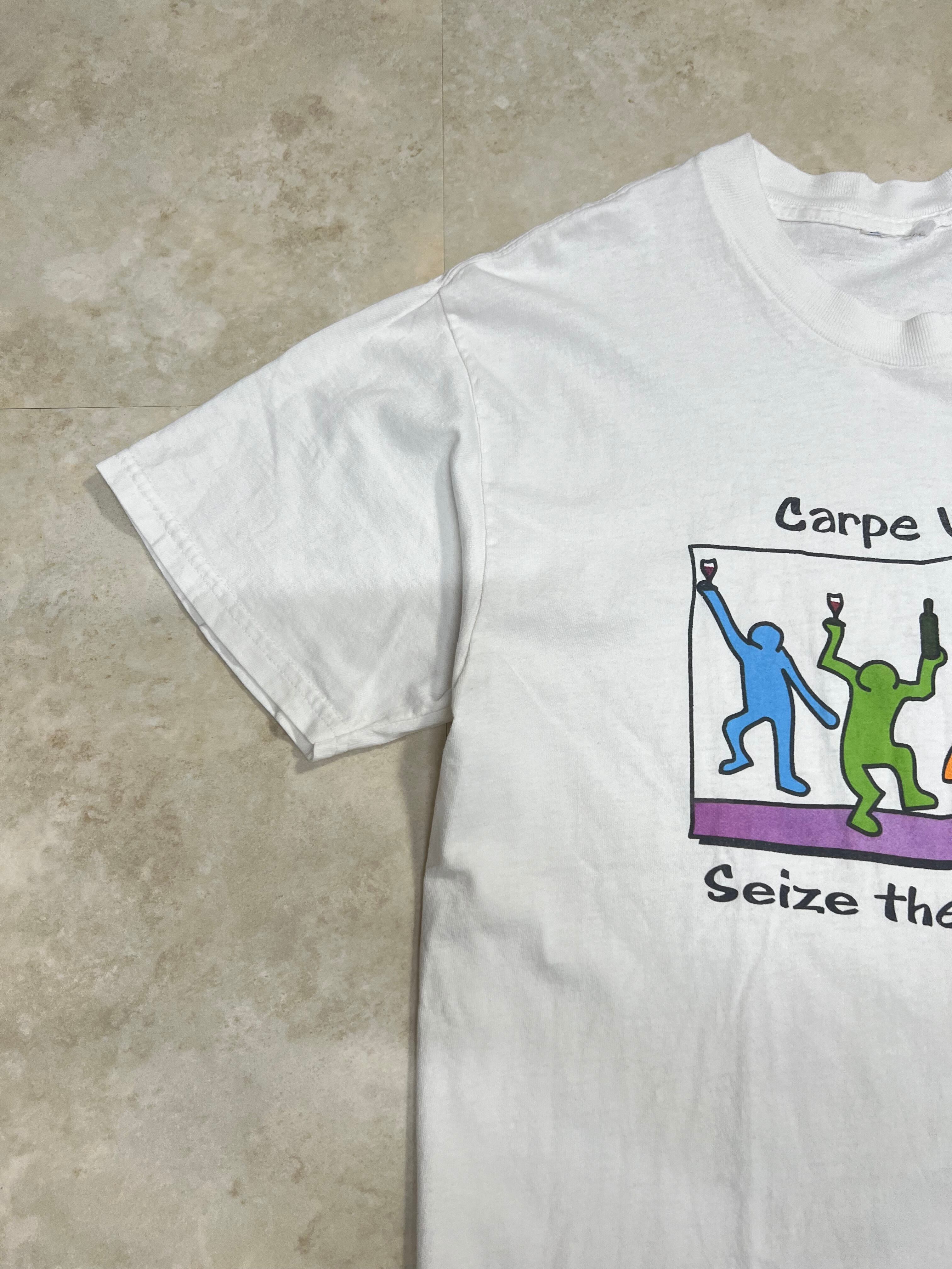 90s Carpe Vinum Joke パロディープリントTシャツ