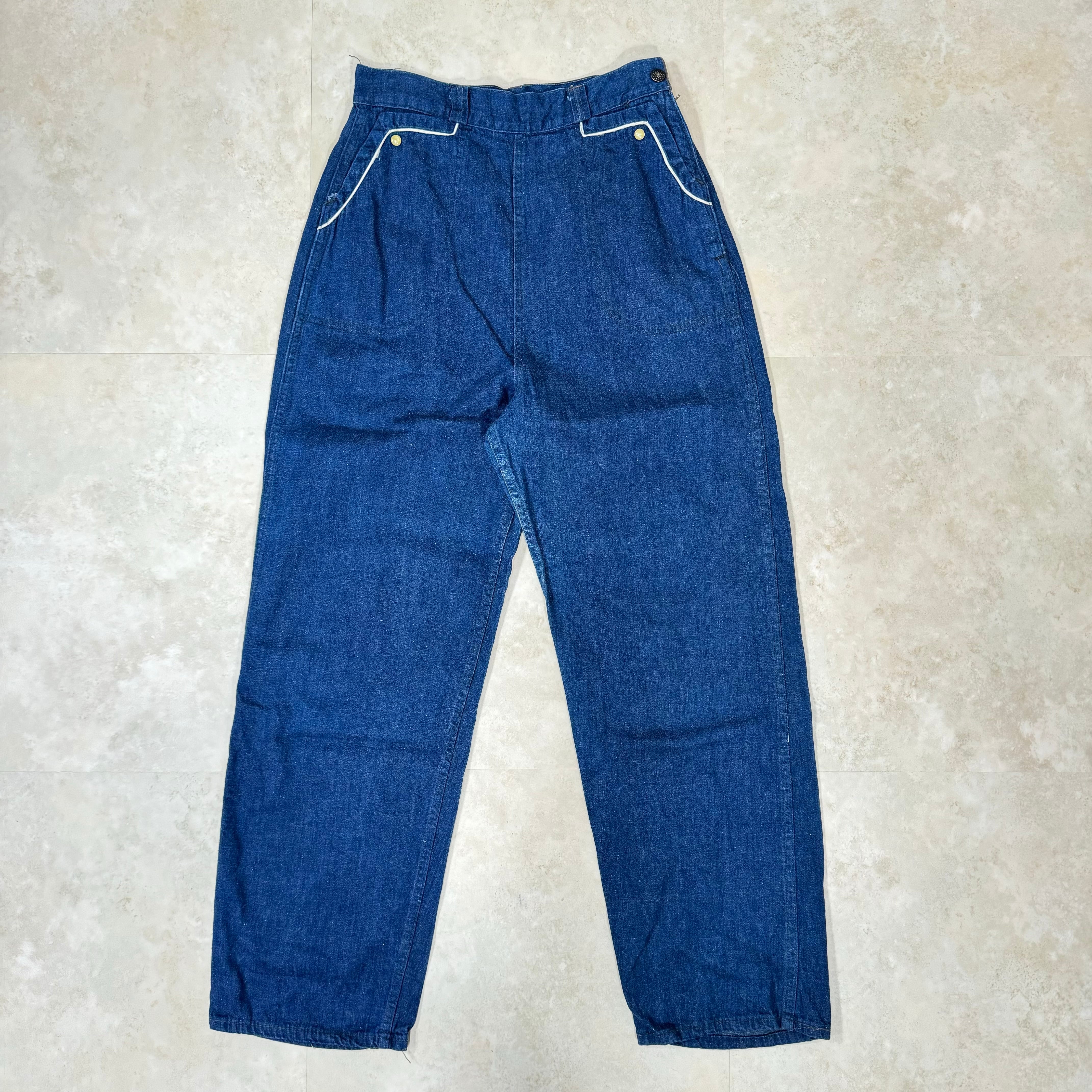40s ヴィンテージ WALDES J字ジッパー ランチパンツ 濃紺 S相当