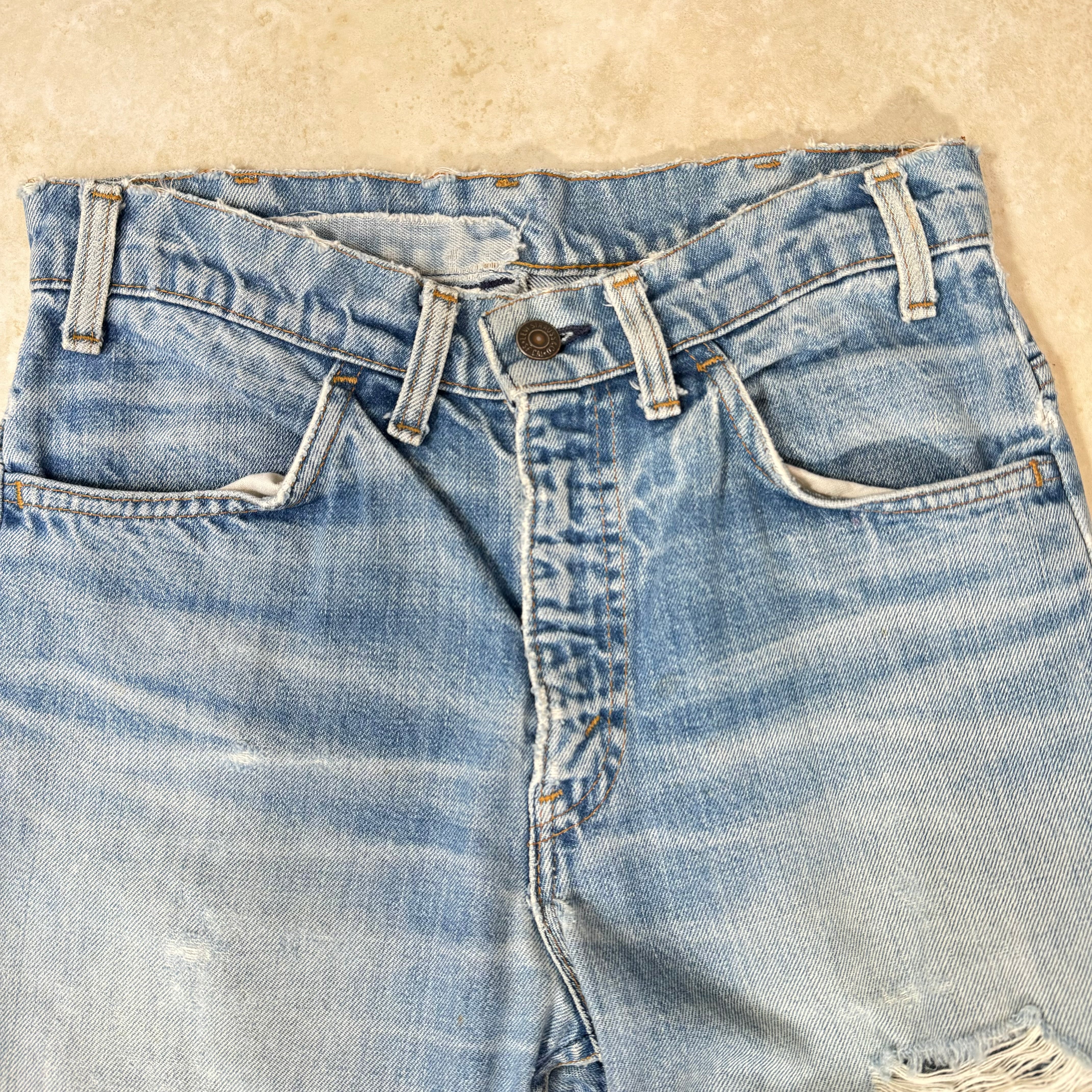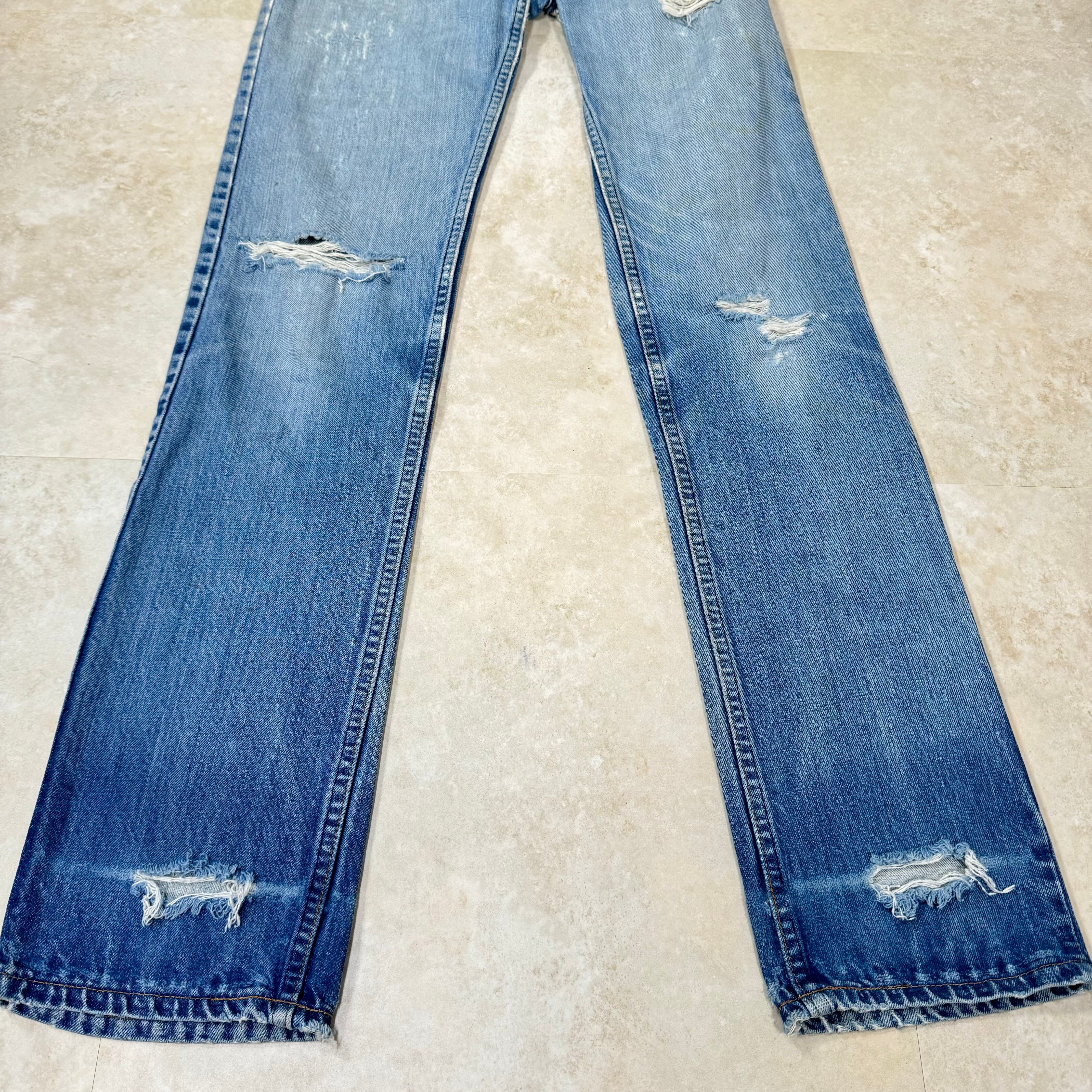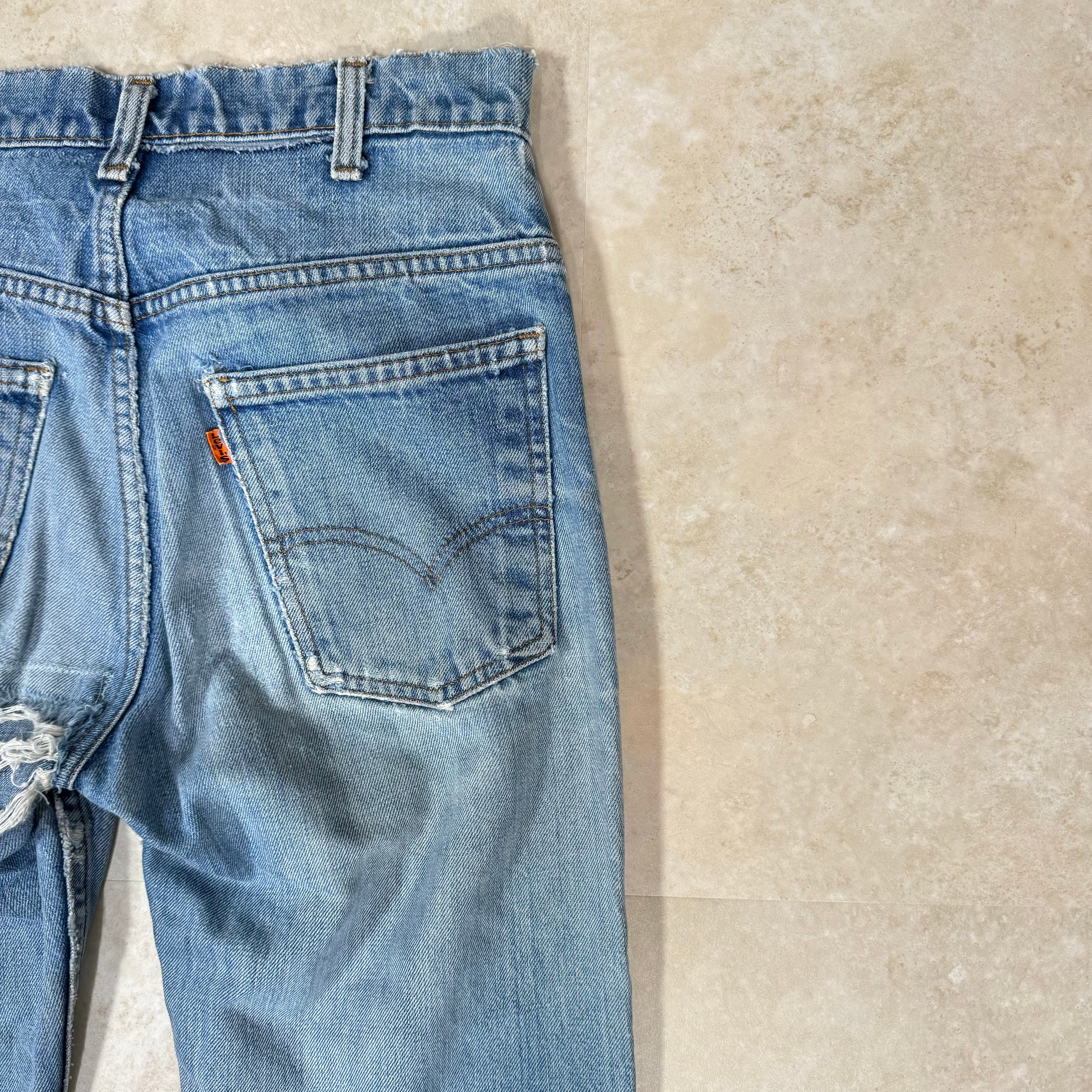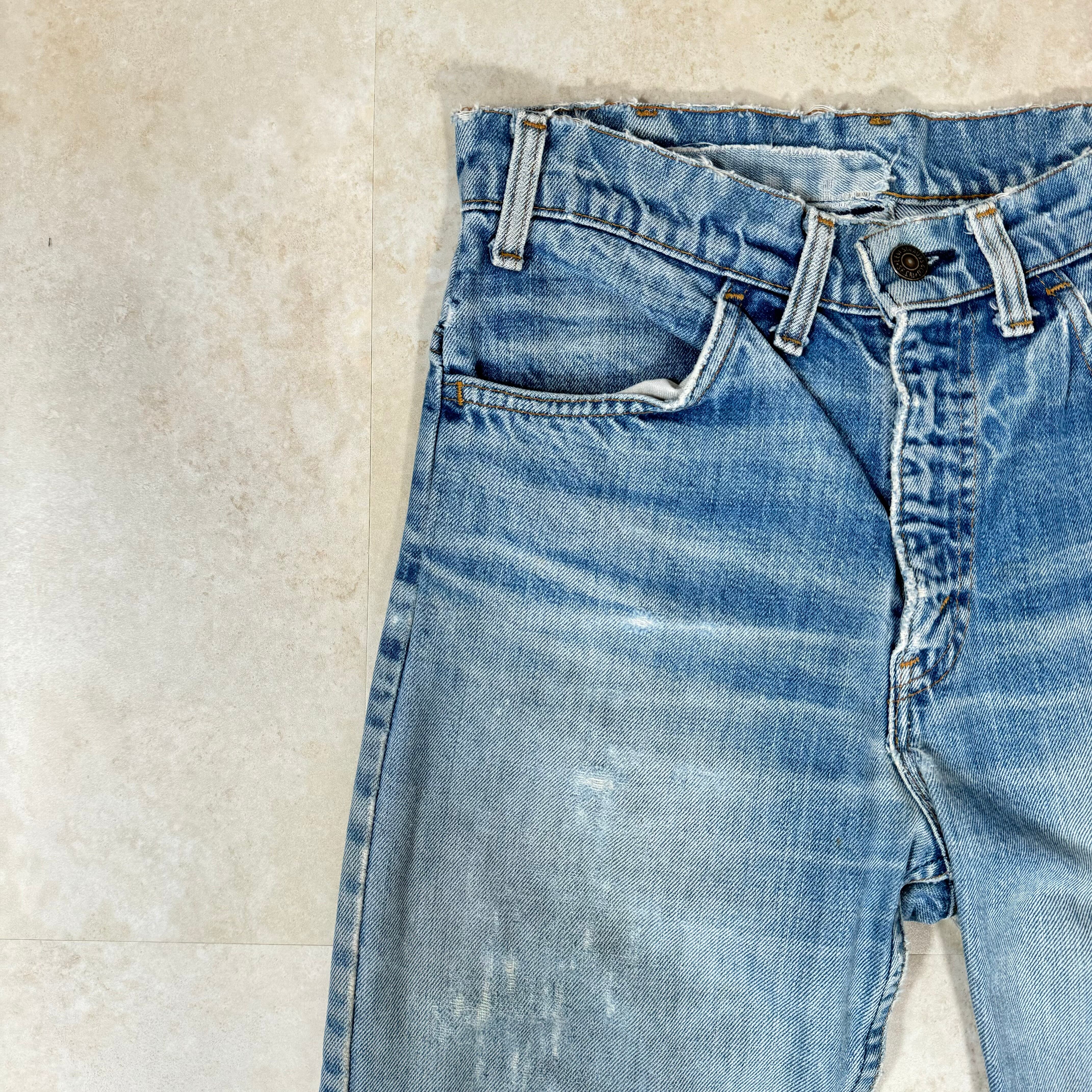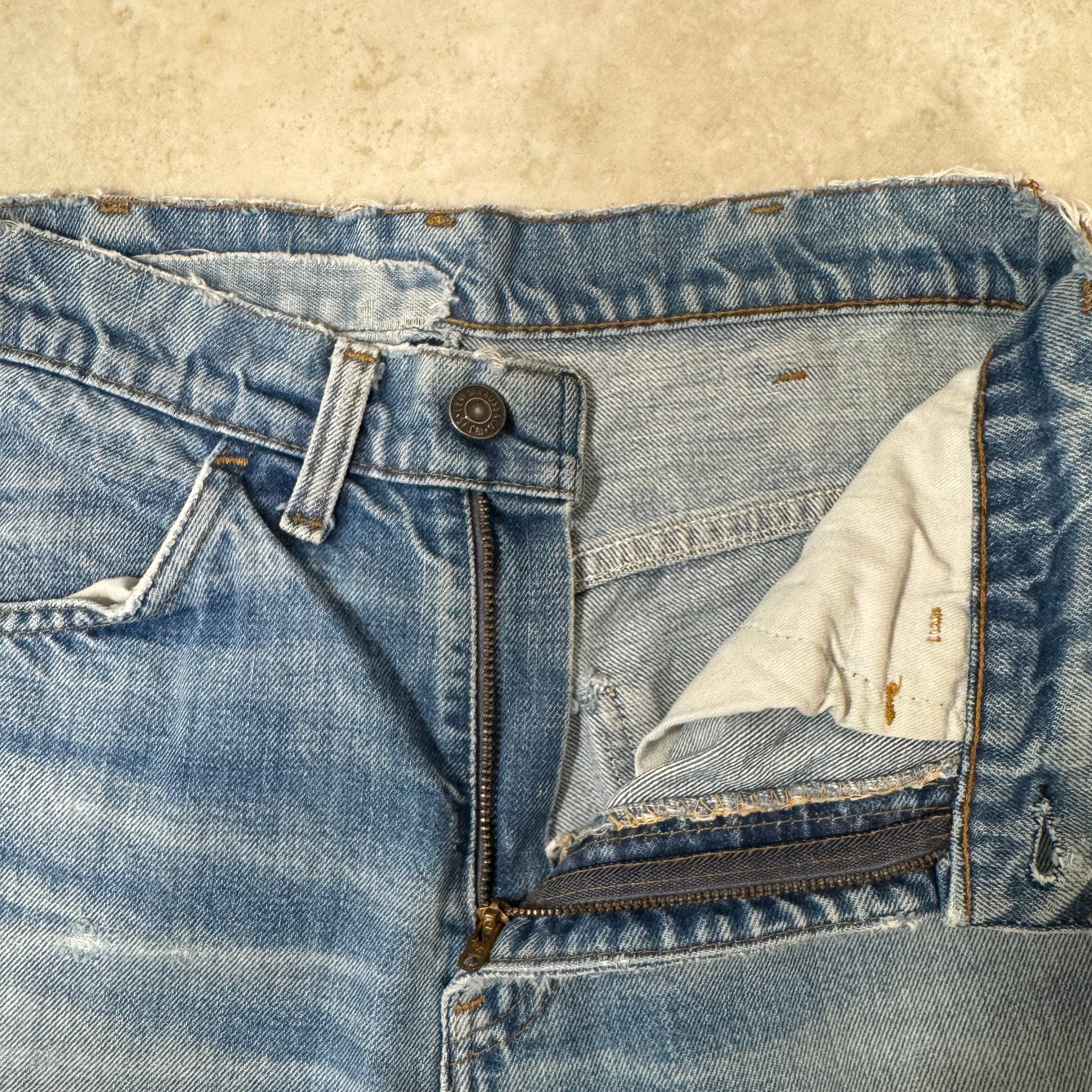 70s リーバイス 42TALONジッパー ダメージ リペア ライトブルー