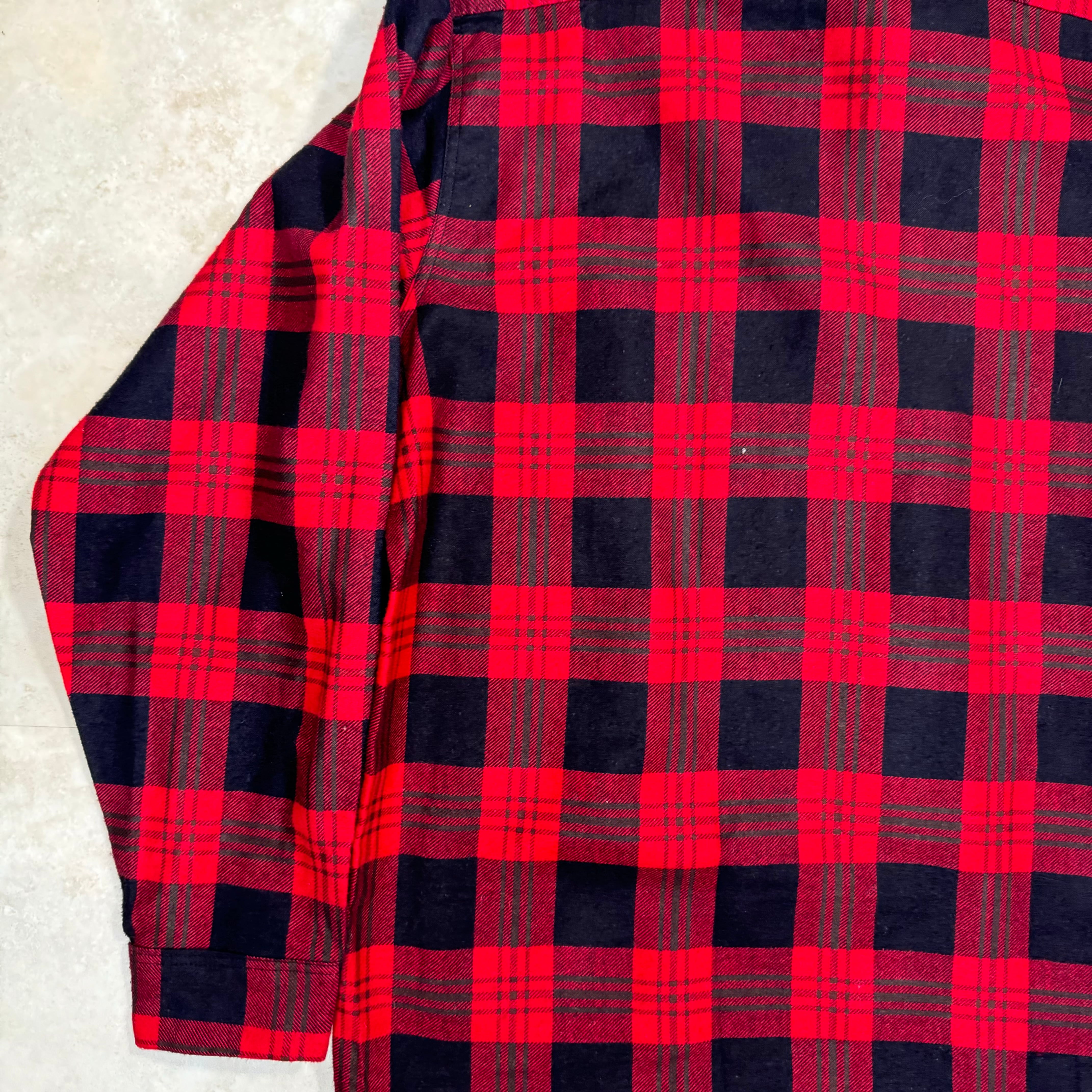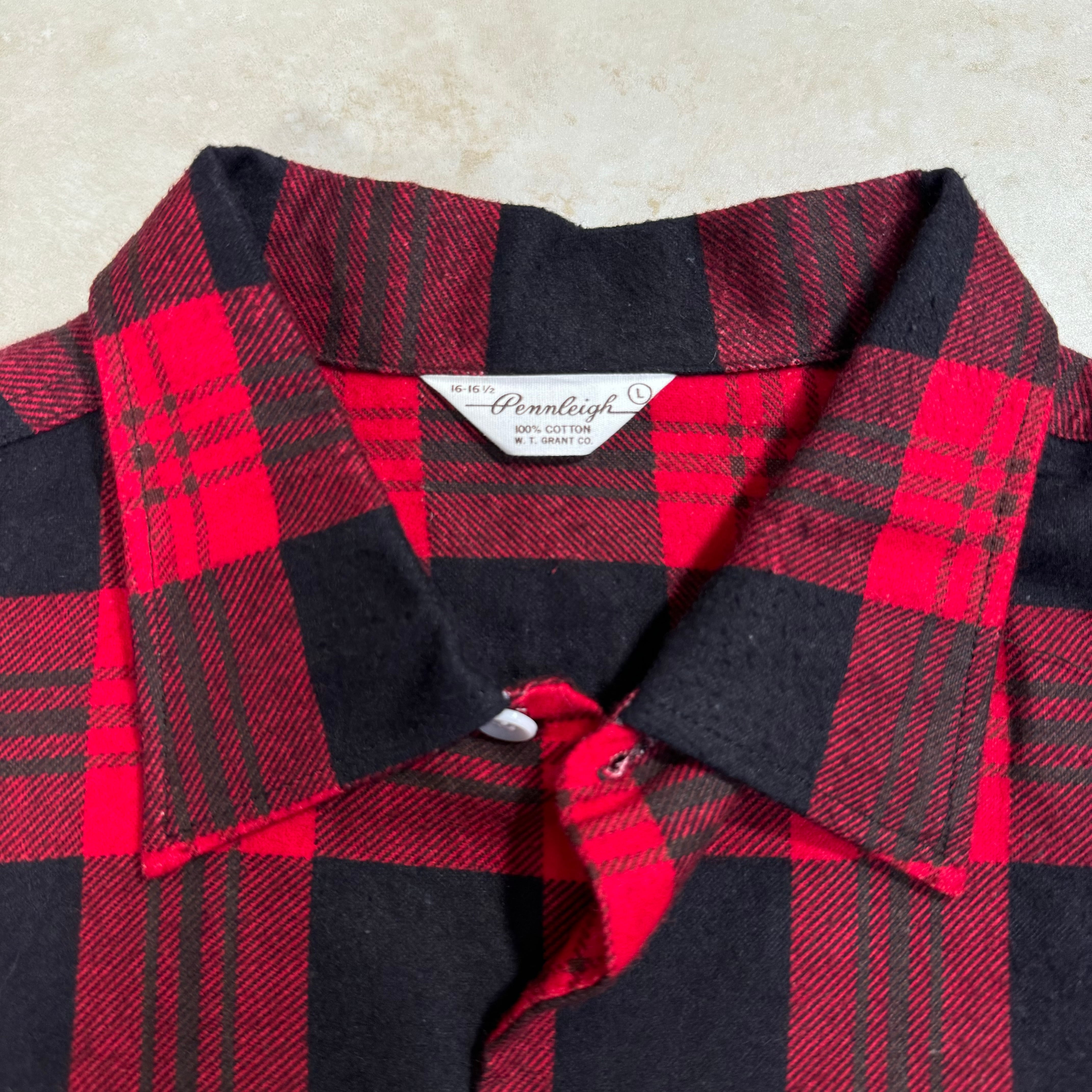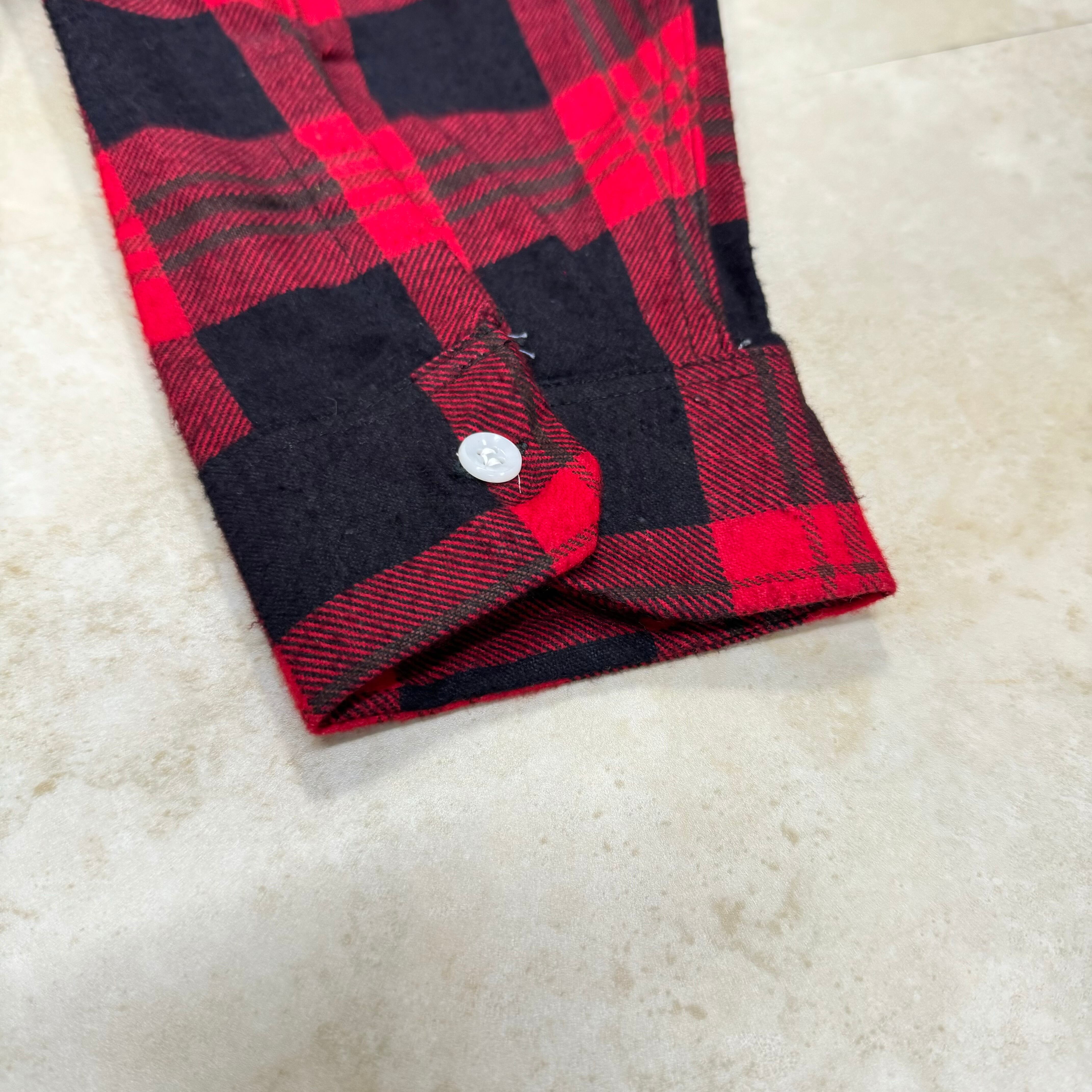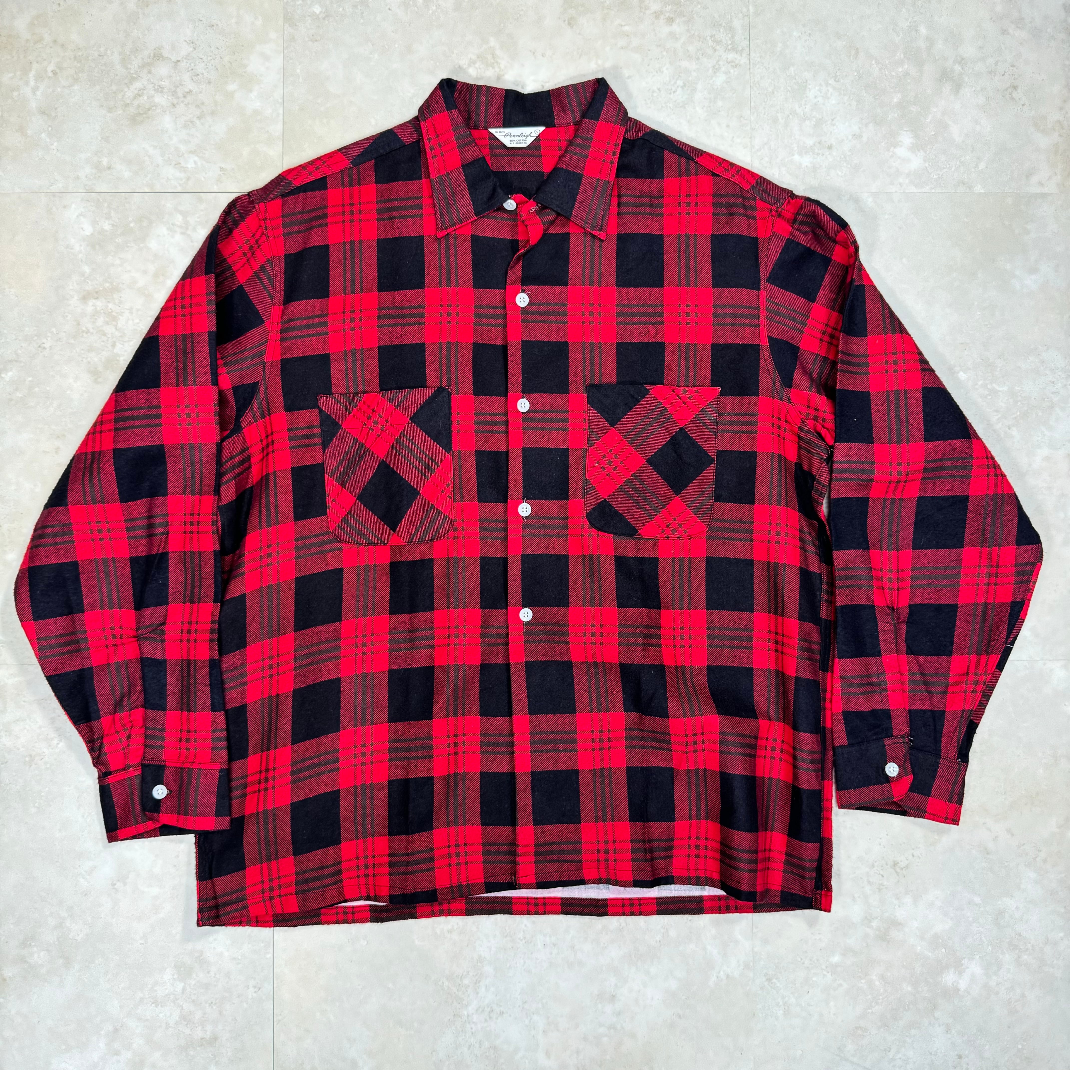 60s Pennleigh ヴィンテージ プリントネルシャツ 赤×黒 L
